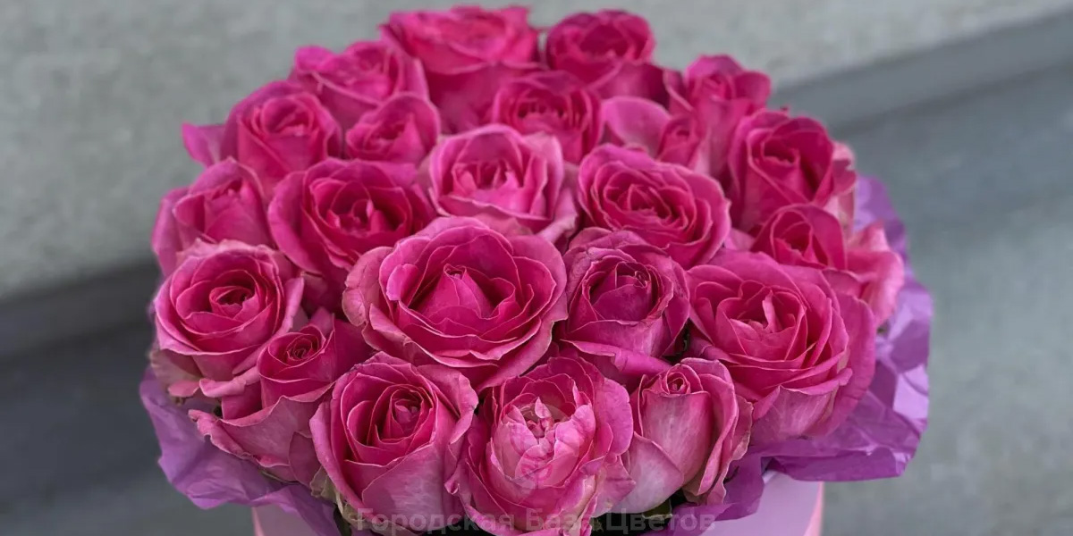 Это одна из самых шикарных и лаконичных композиций. В состав элегантного букета входят розы в количестве от 25 бутонов. Они роскошно и величественно возвышаются над коробкой в форме куба. Ее цвет может любым, но популярностью пользуются коробки красного и черного цветов.