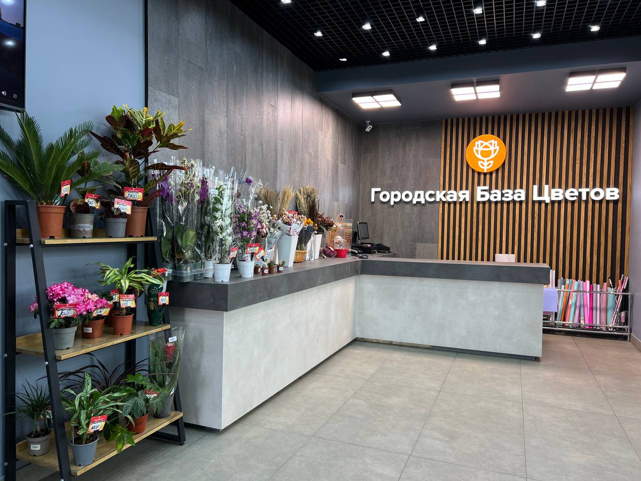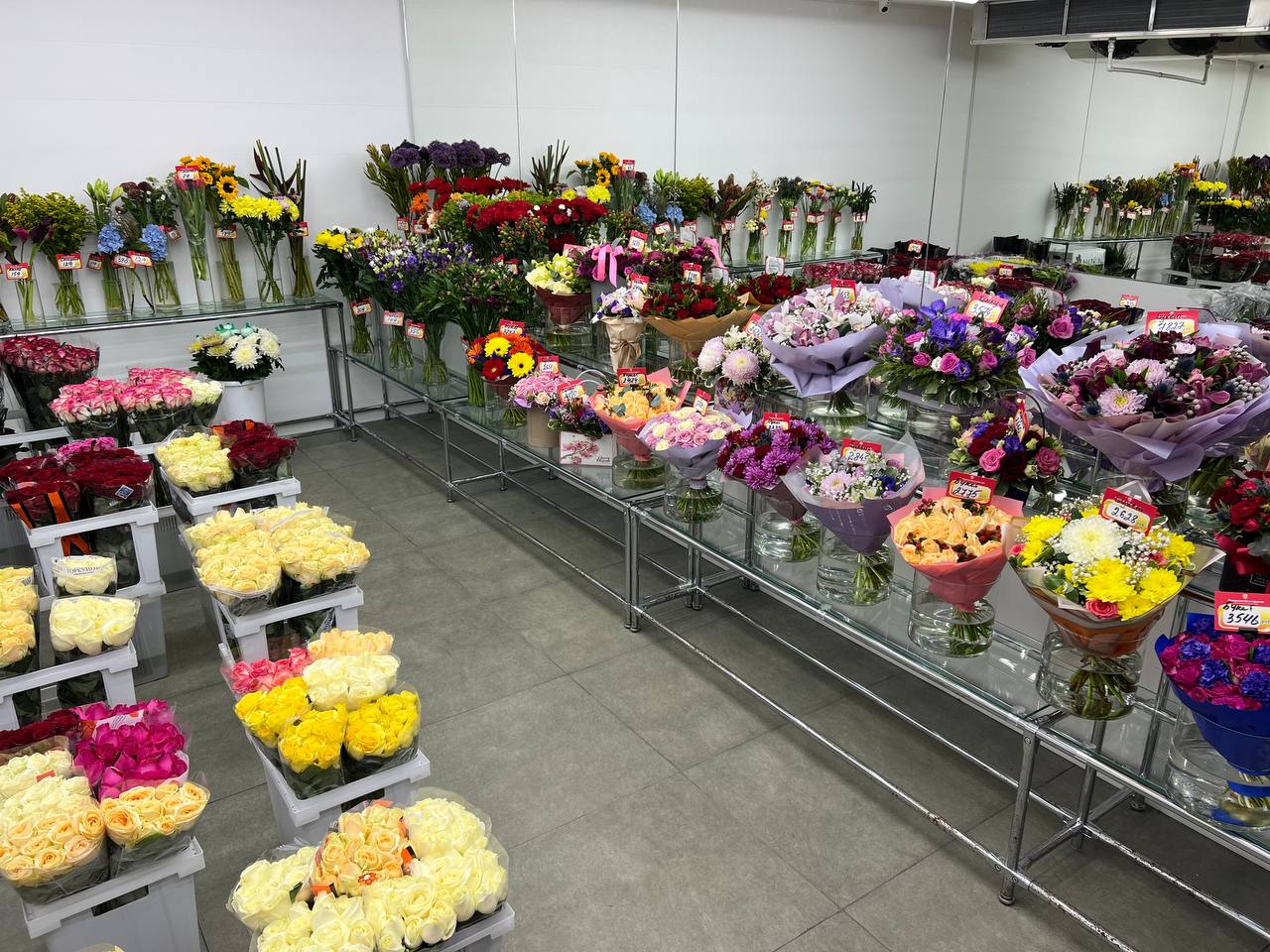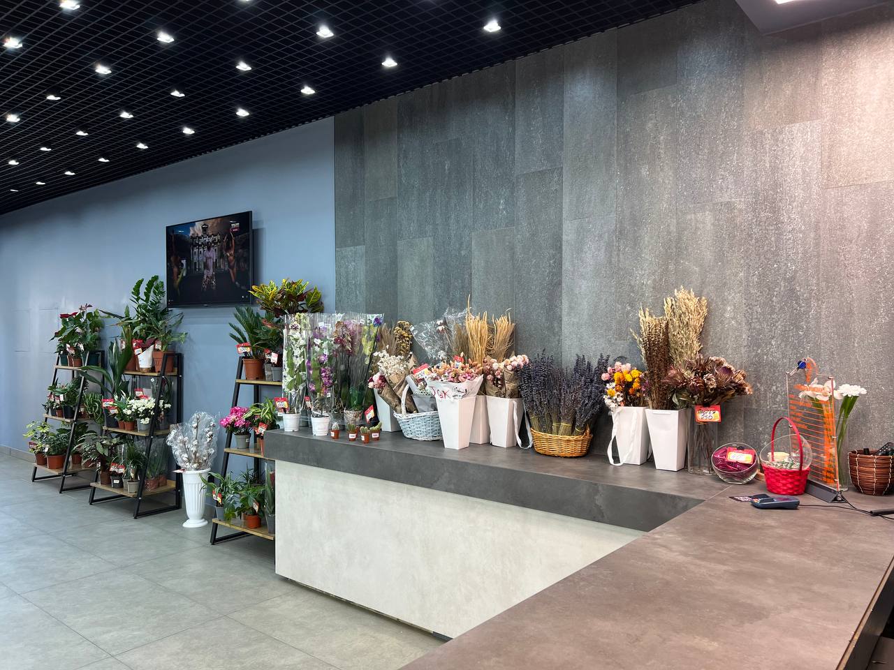 - Большой выбор букетов и растений.
