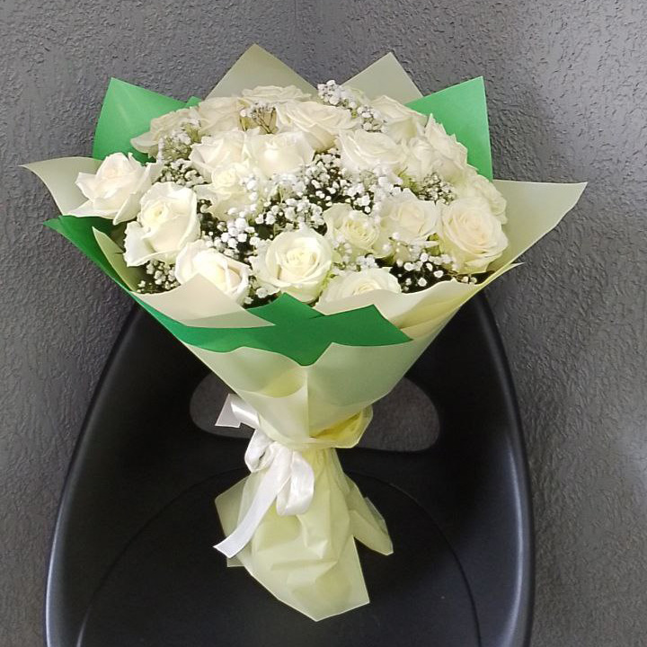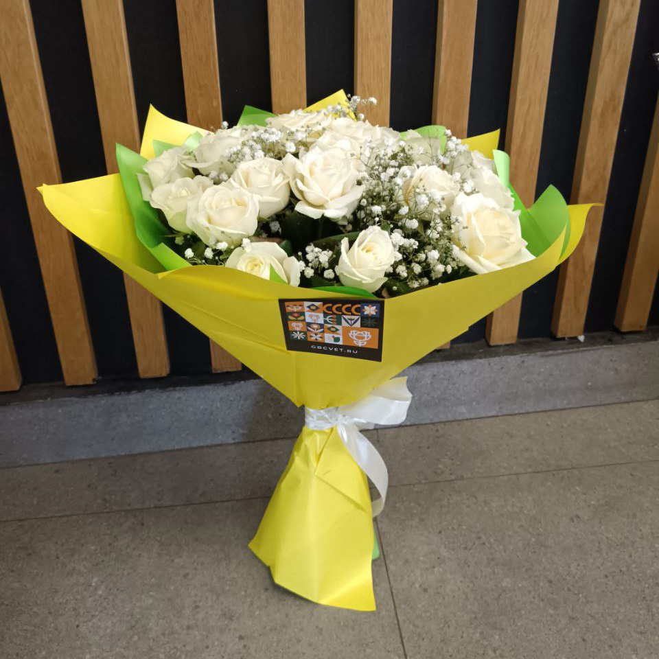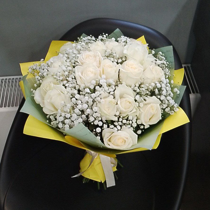 21 белая роза и гипсофила