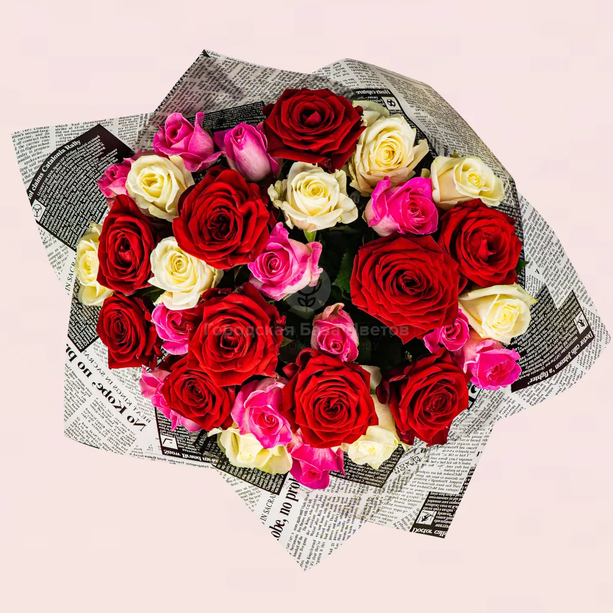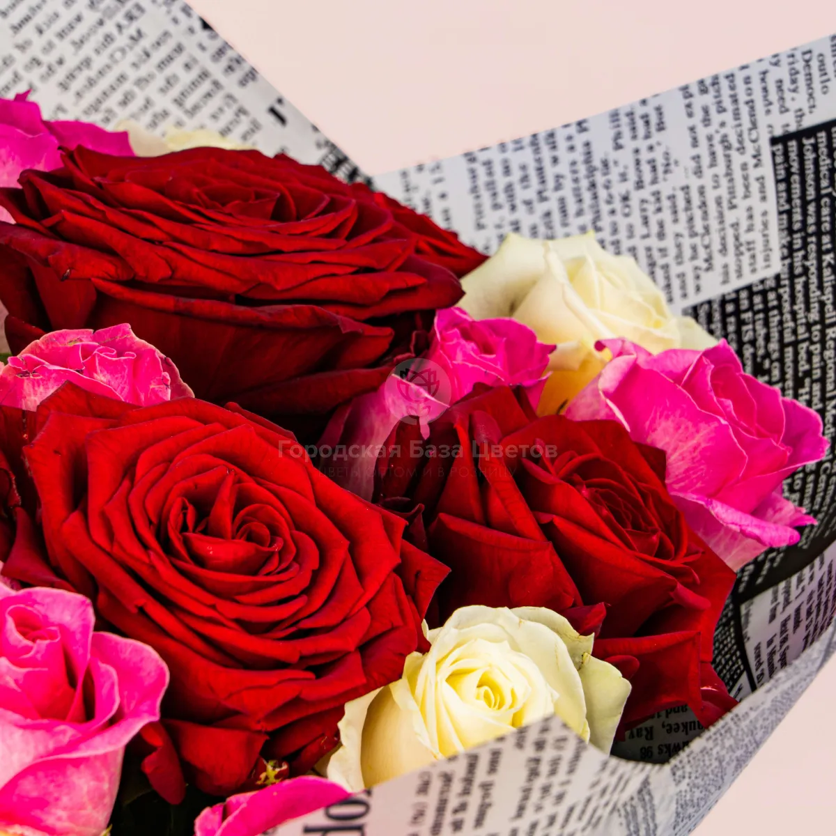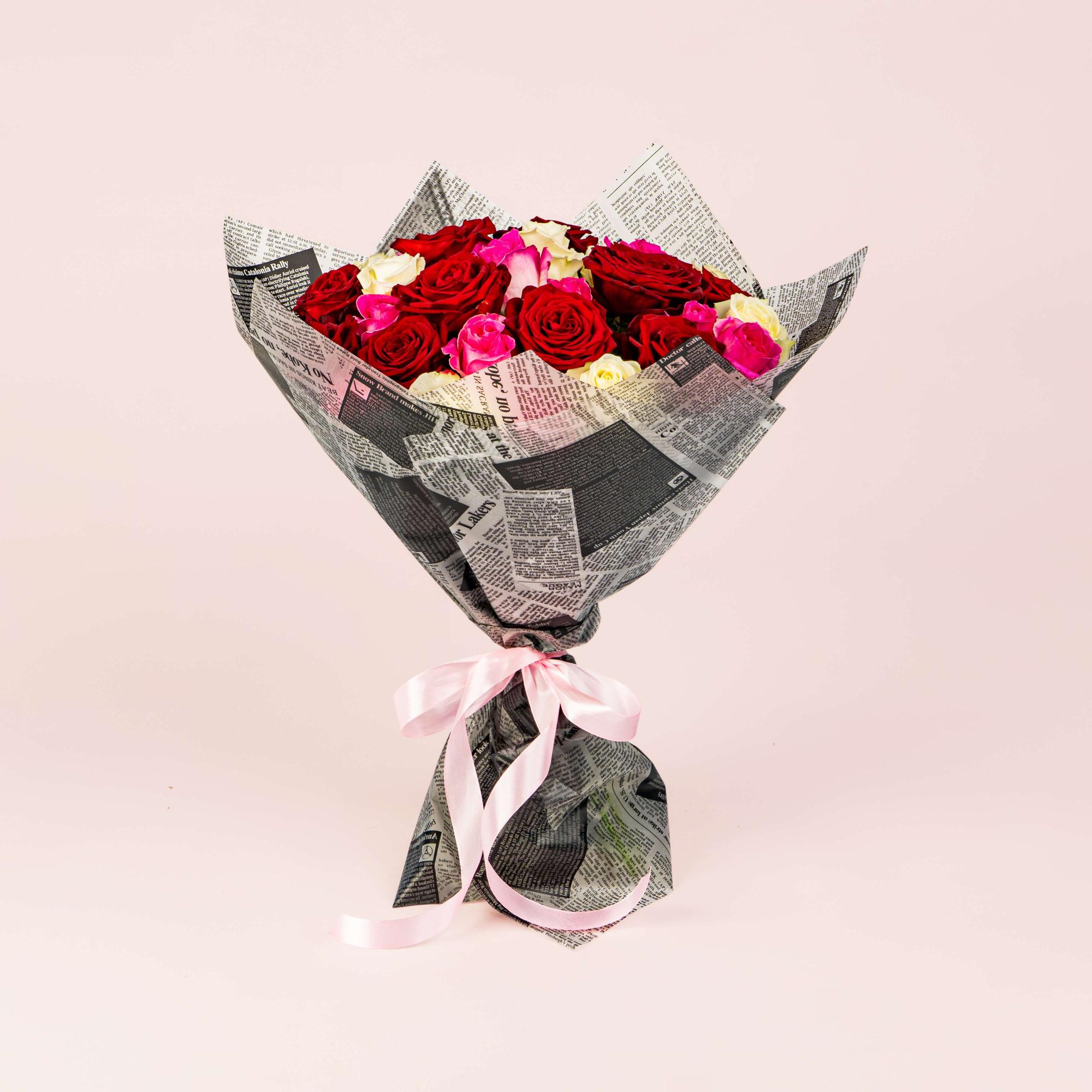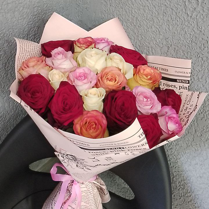 21 роза микс (60 см )