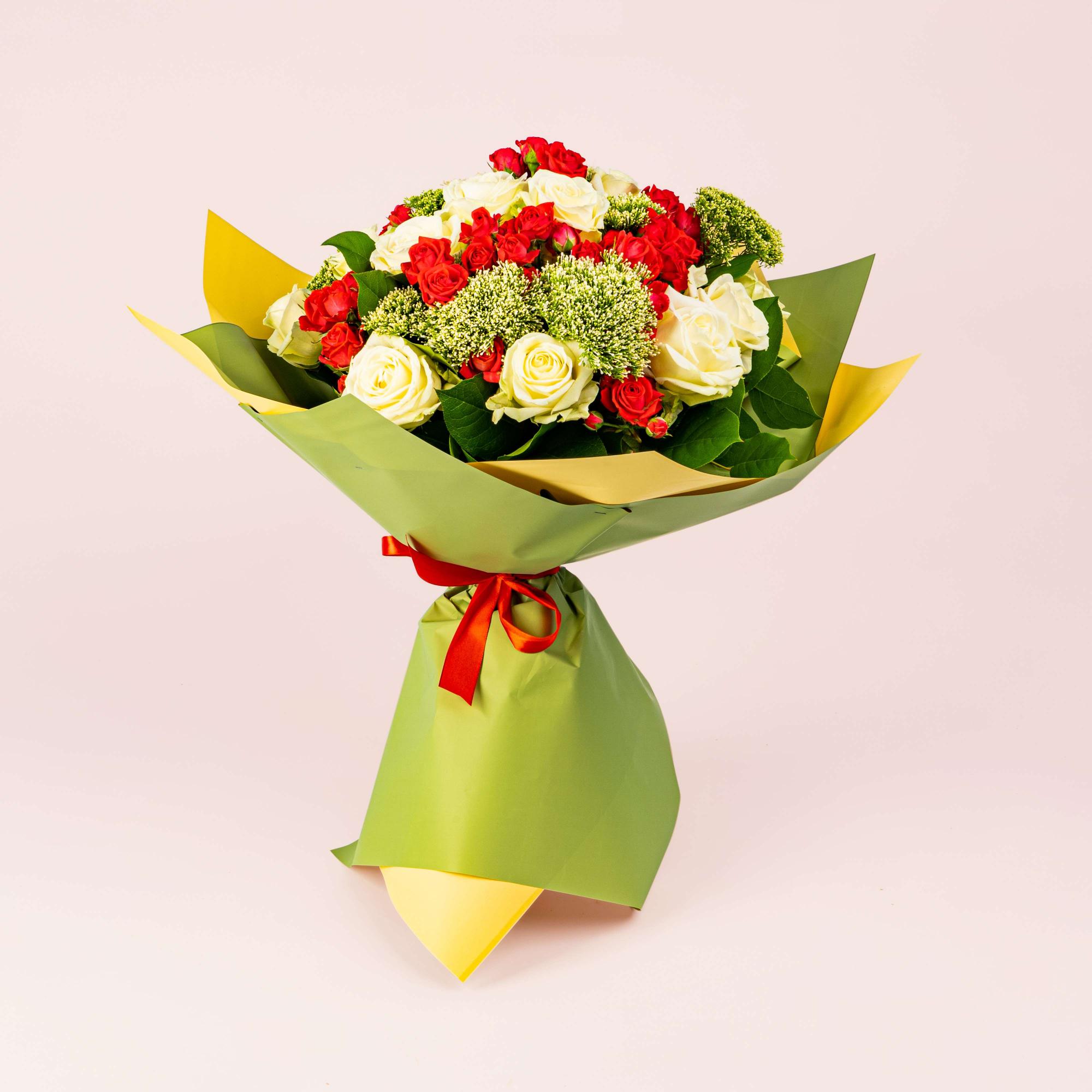 Наша компания заботится о ваших эмоциях и оставляет за собой право незначительно изменить состав и оттенок букета в пользу самого свежего цветка в нашем холодильнике