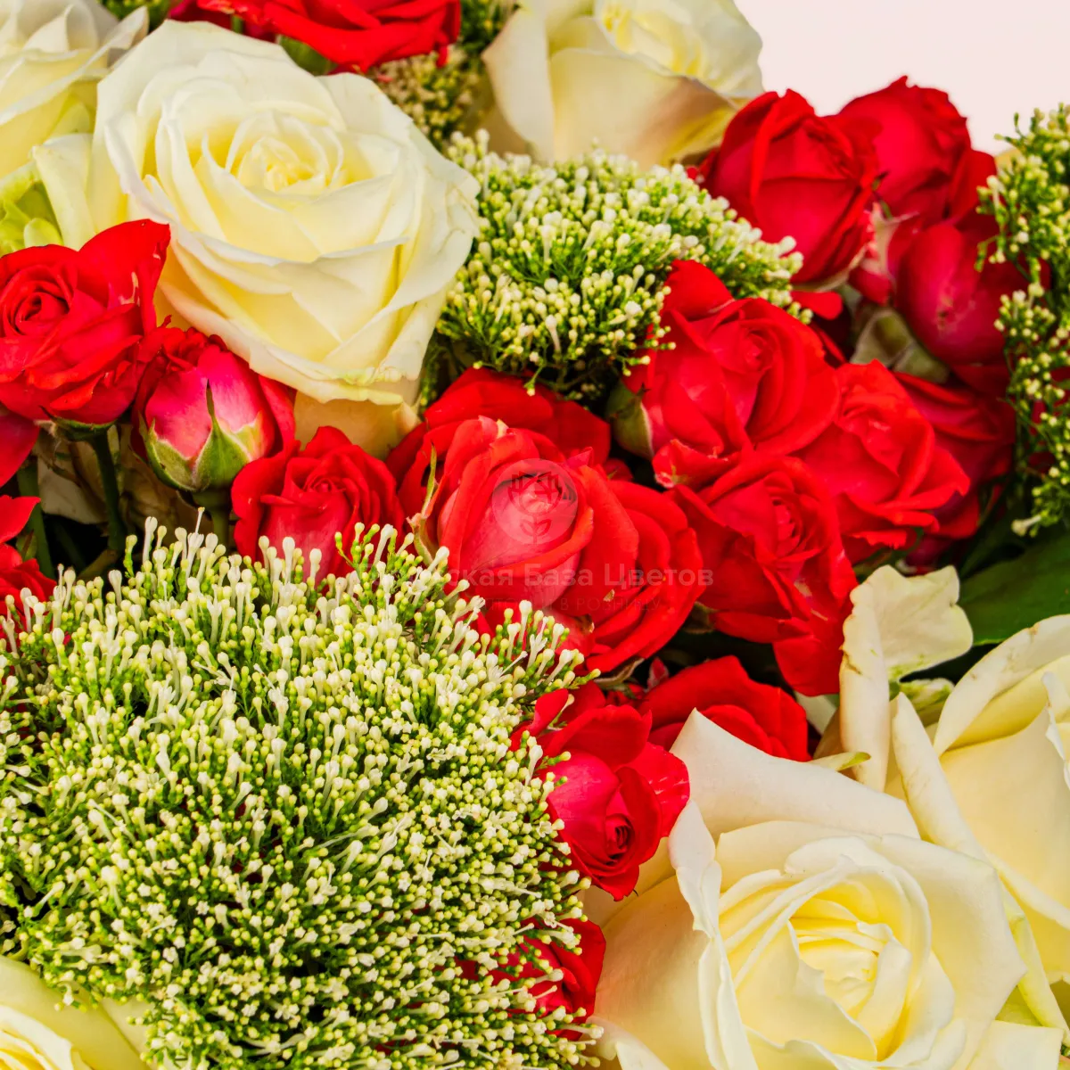 23 белых и красных роз микс большой