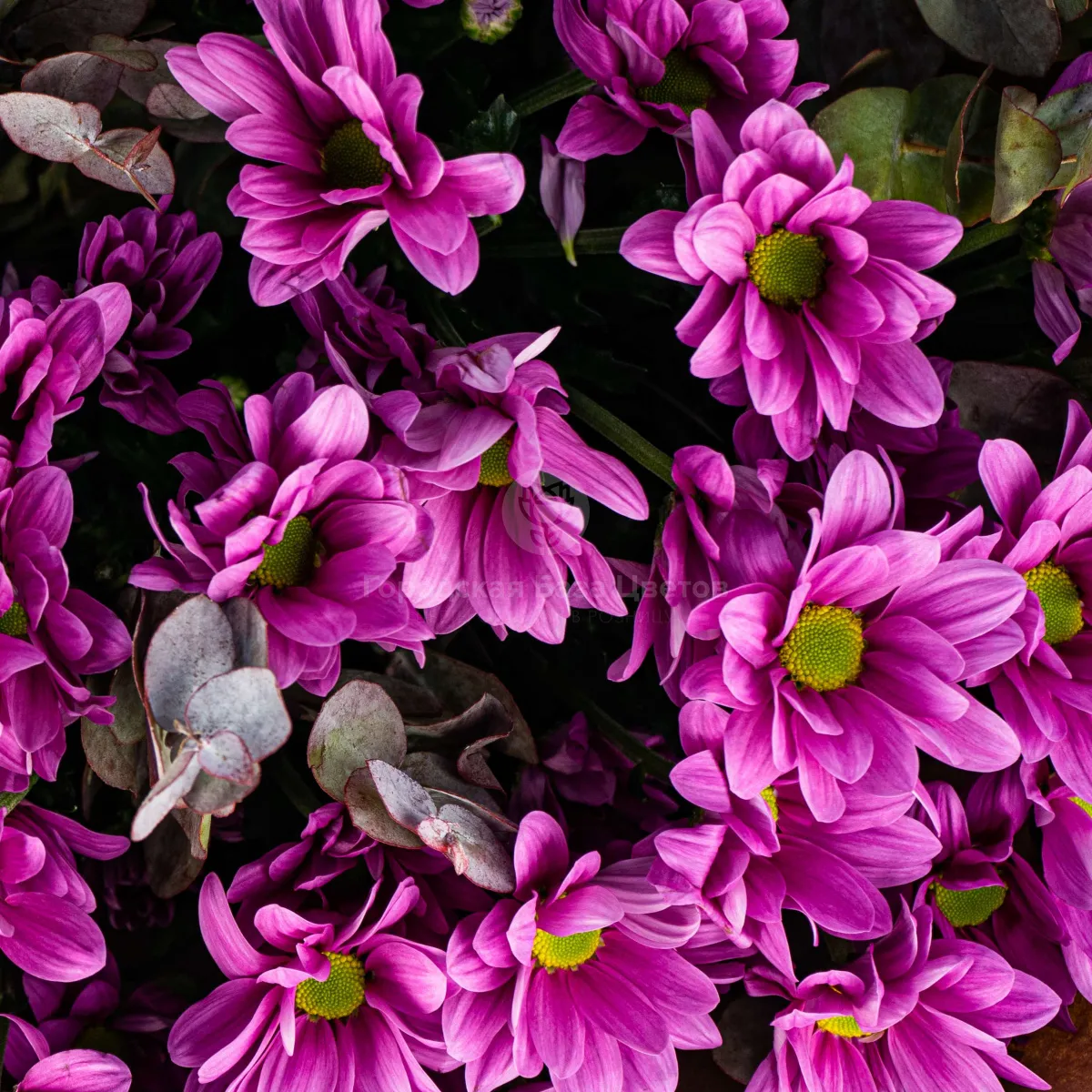 25 фиолетовых хризантем
