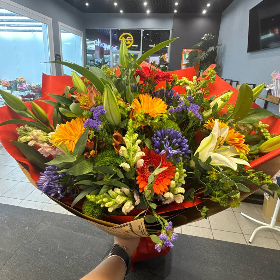 Большой букет из альстромерий, антиринум и буплерум