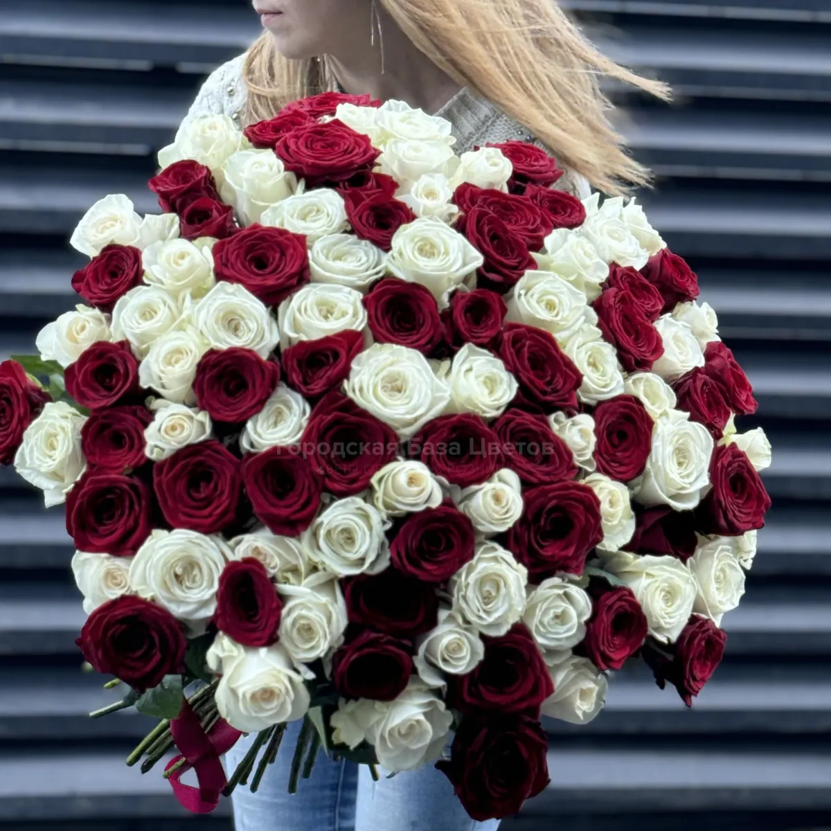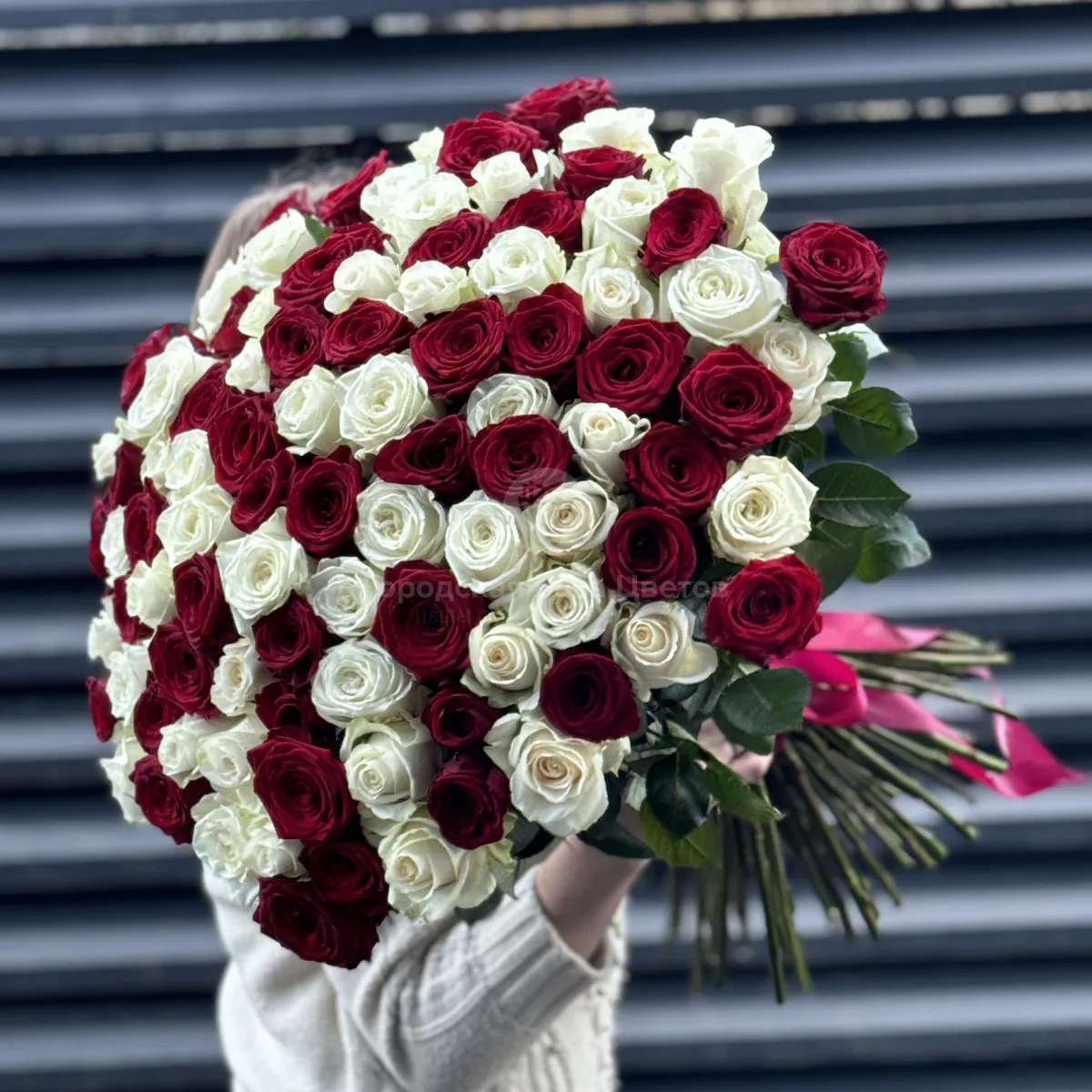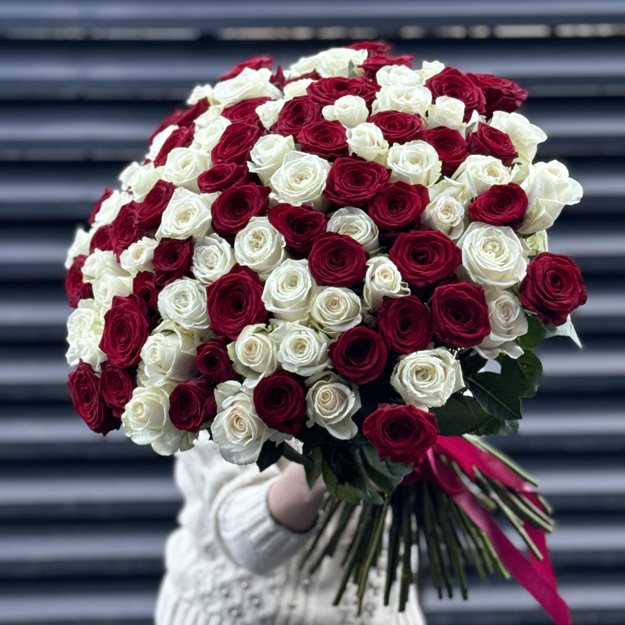 Букет 101 красно-белый микс роз эквадор (70см)