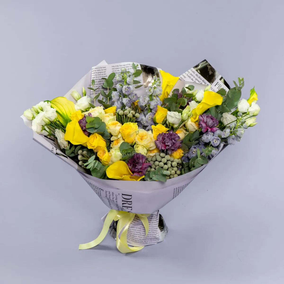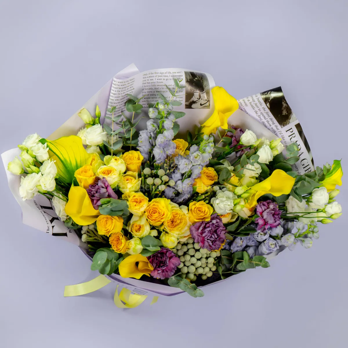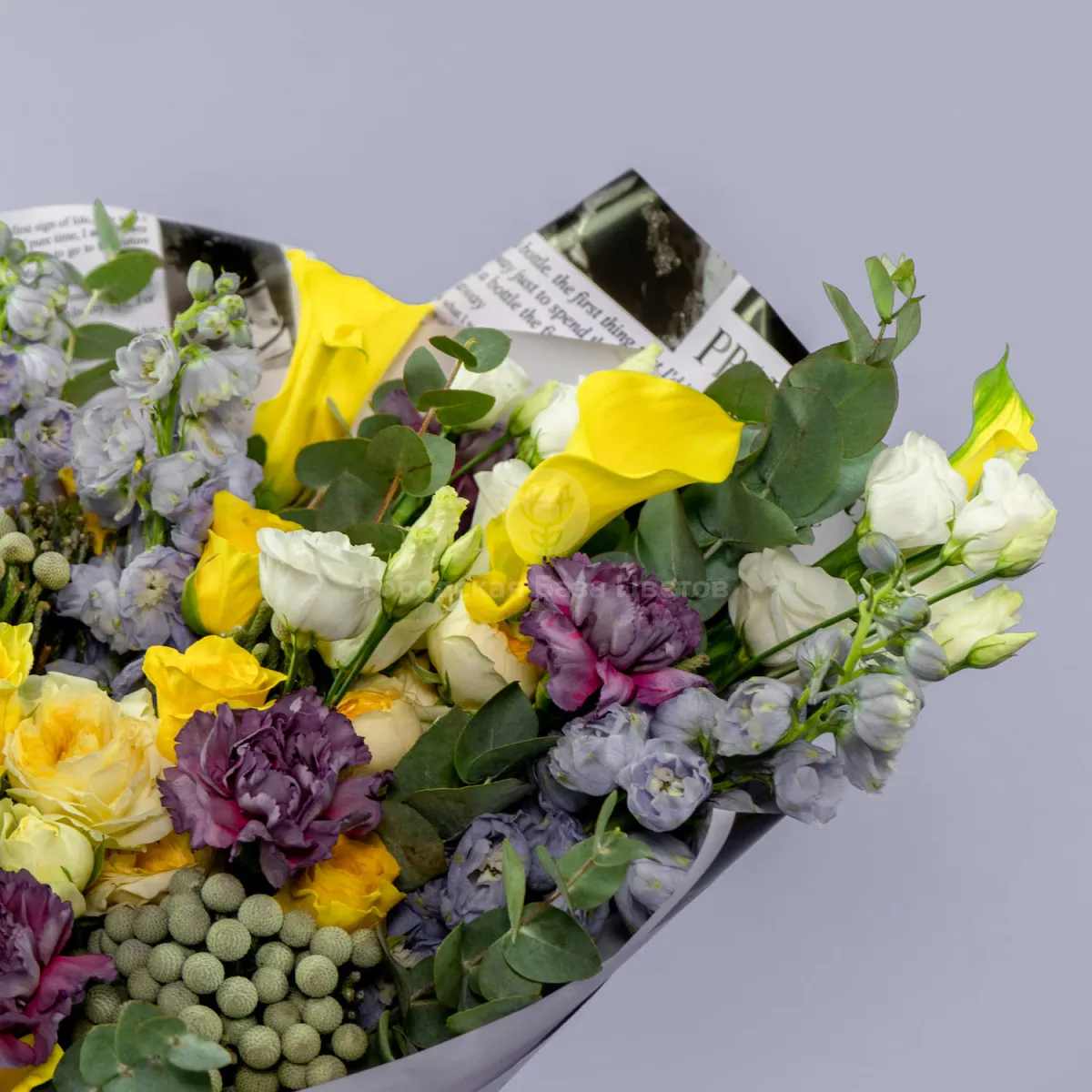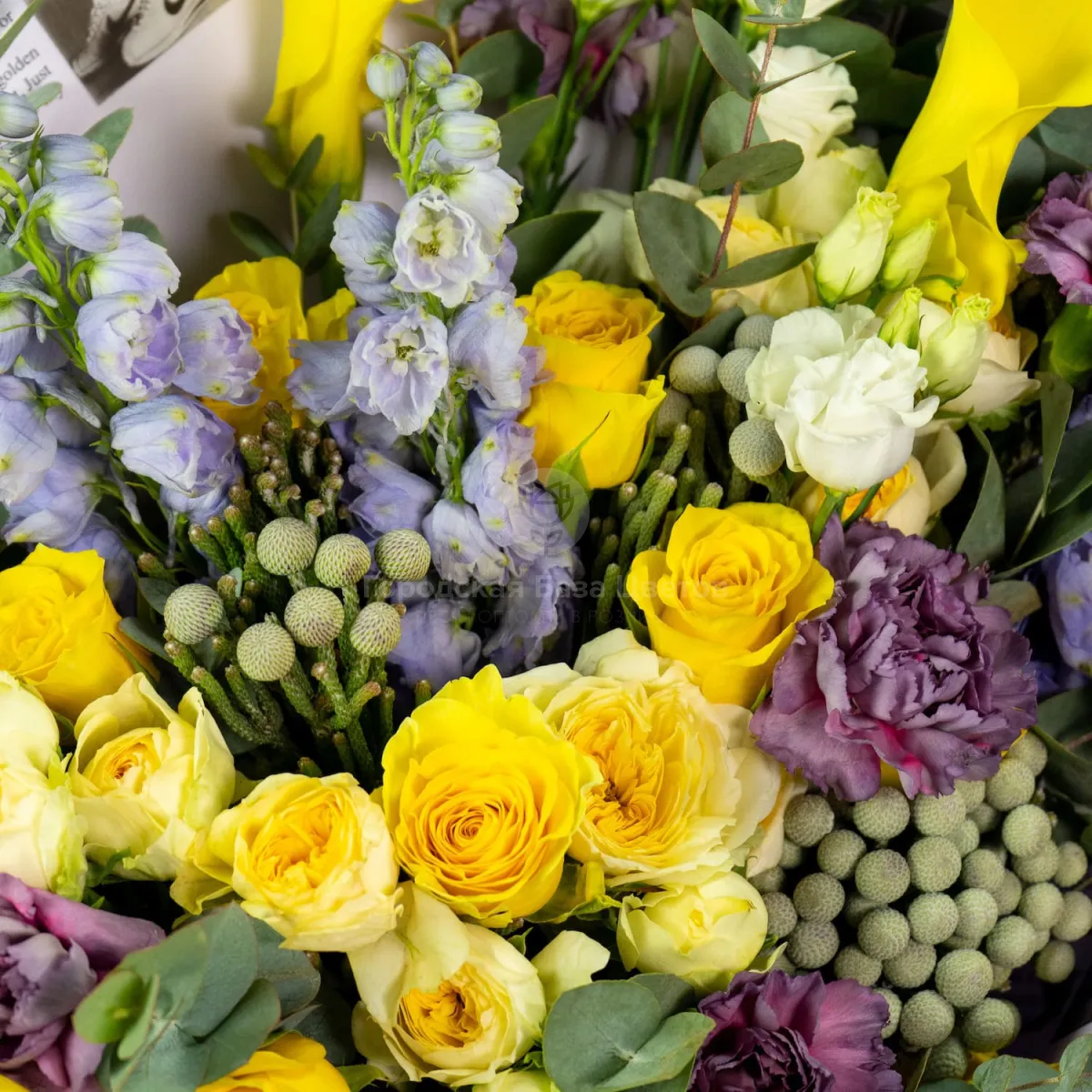 Букет из роз микс, гвоздик и калл