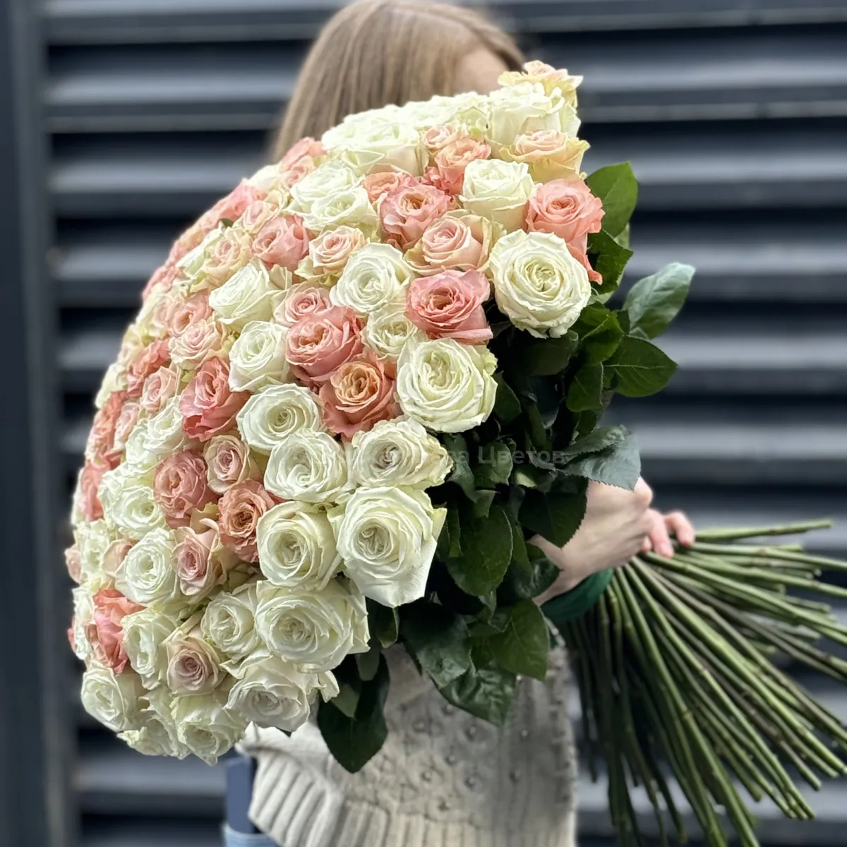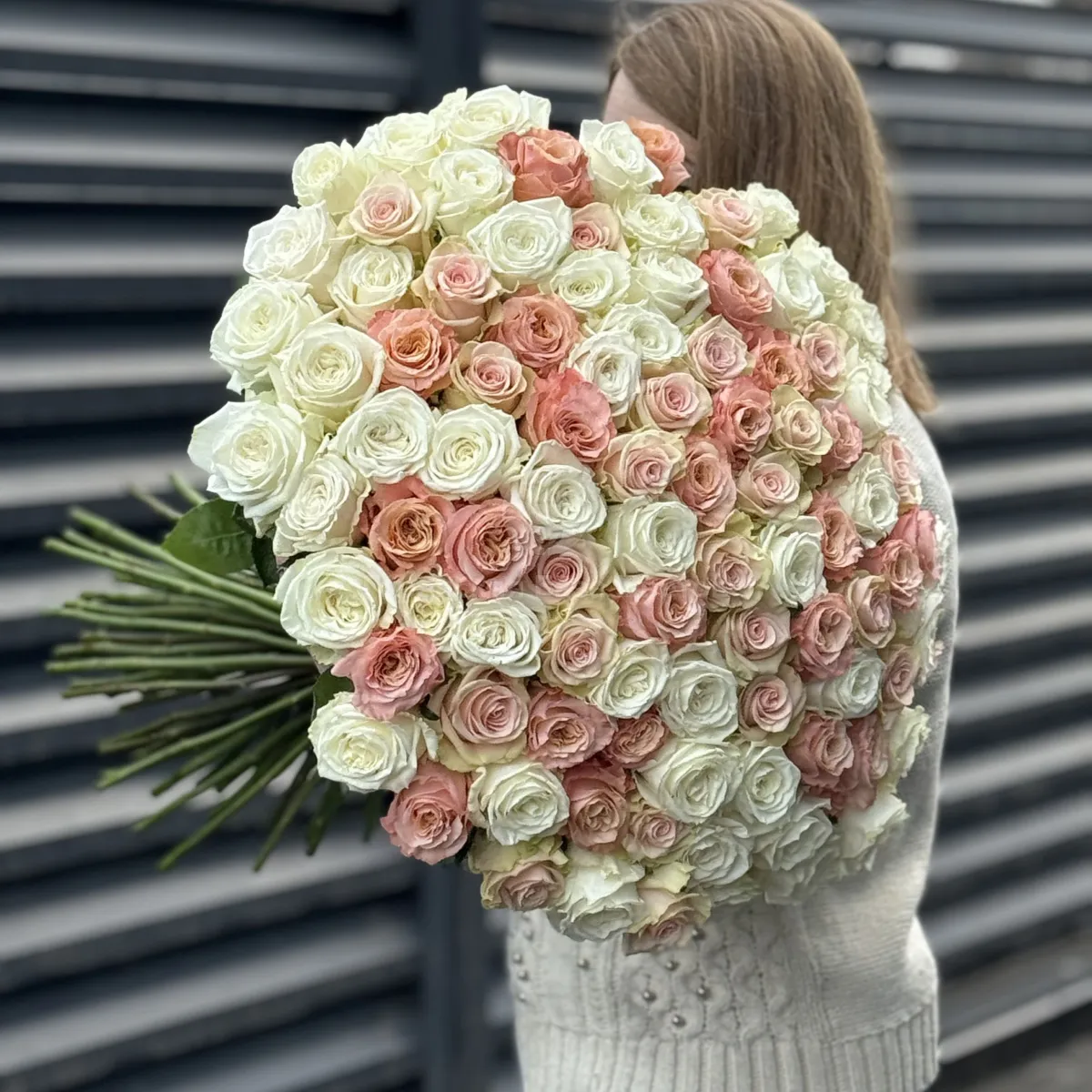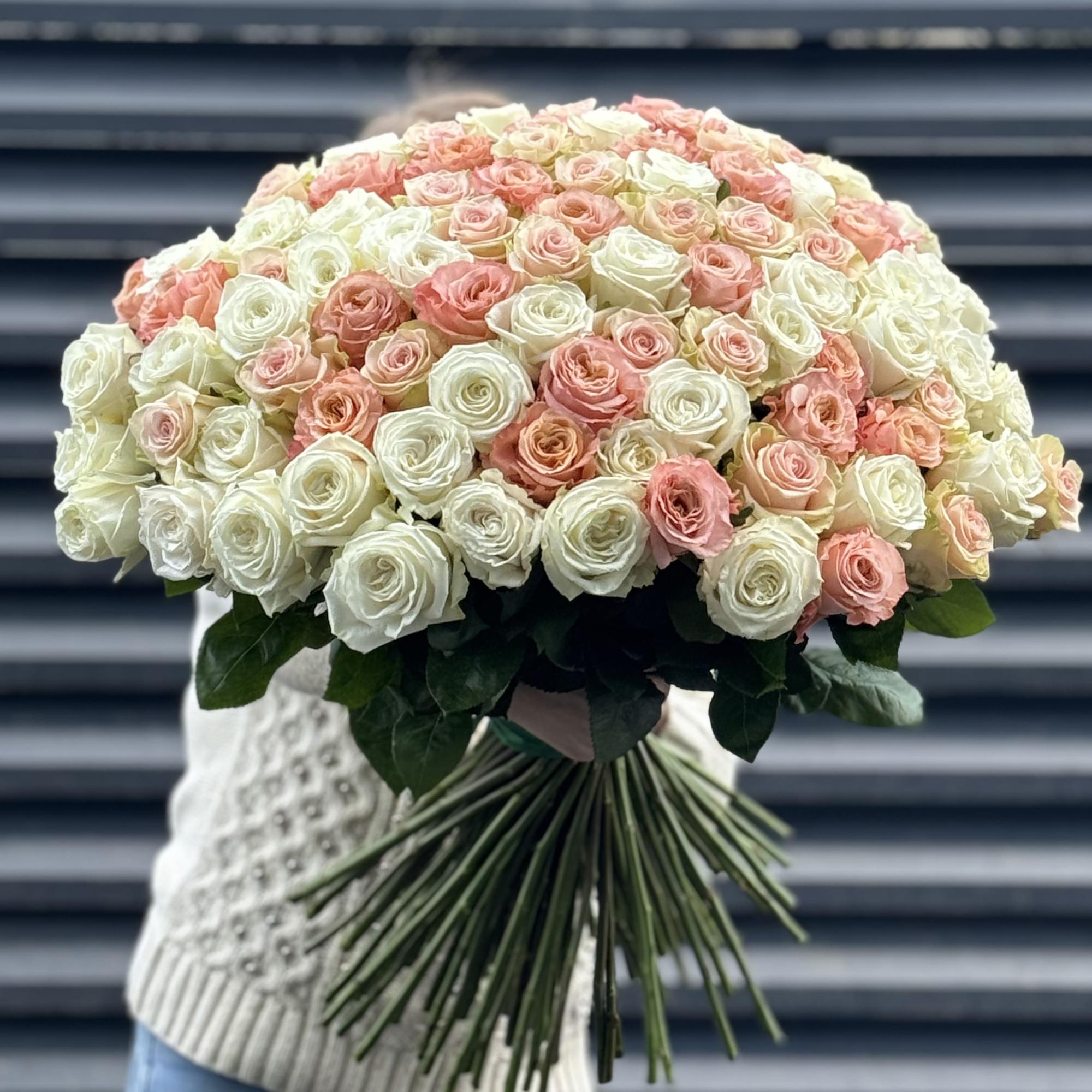 Букет 201 бело-персиковый микс роз эквадор (70см)
