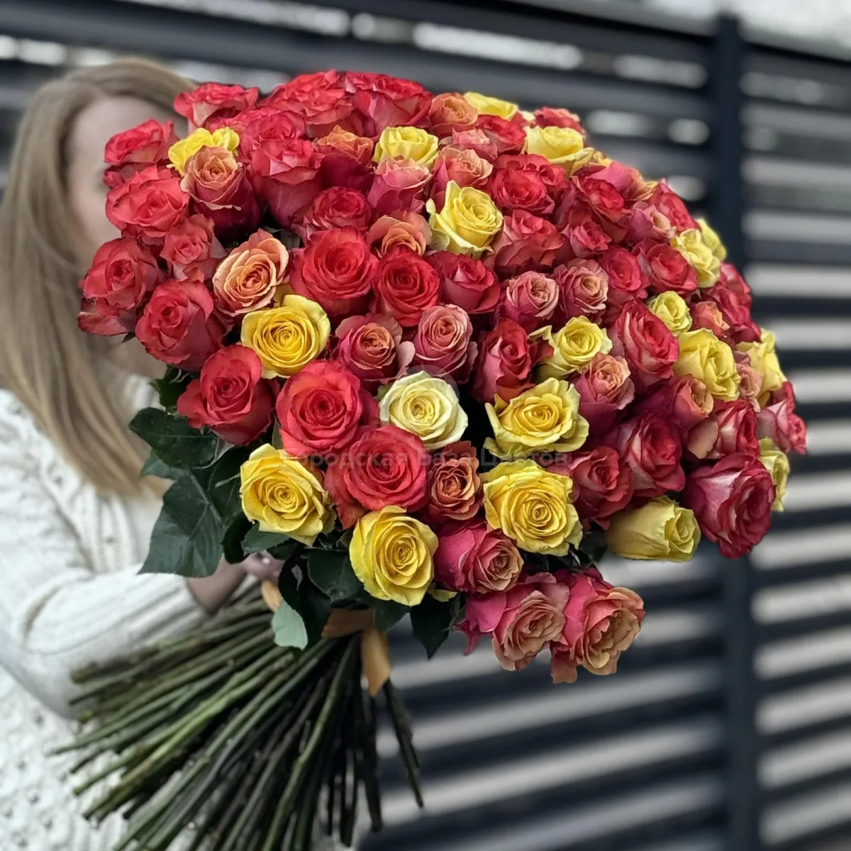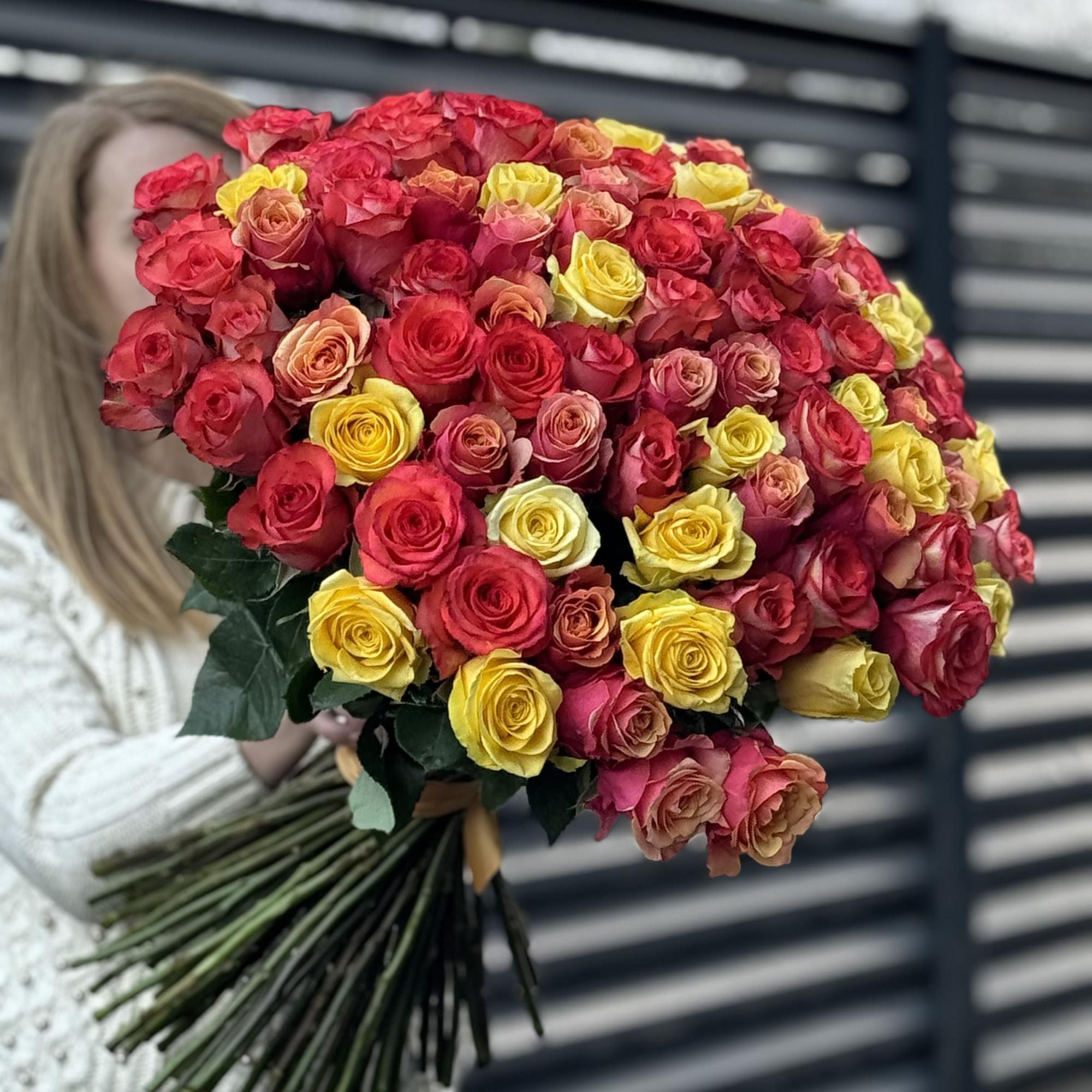 Букет 201 красно-желтый микс роз эквадор (70см)