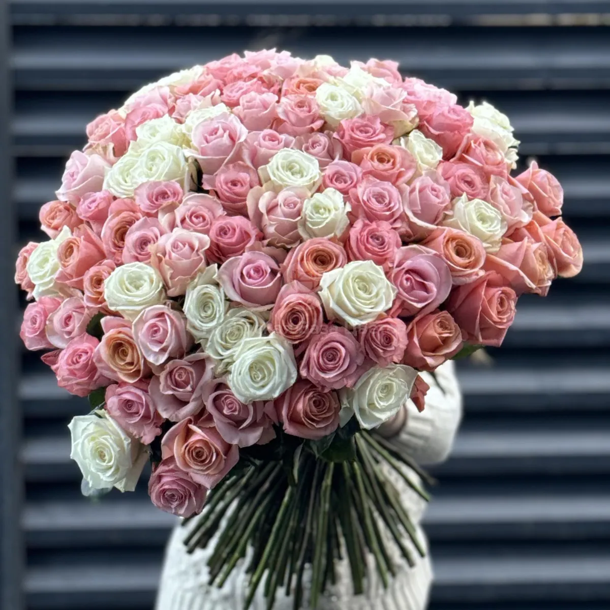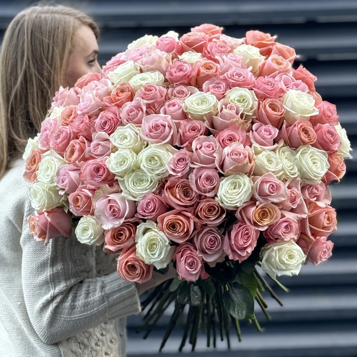 Букет 201 пепельно-розовый микс роз эквадор (70см)