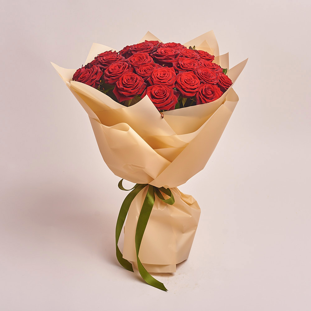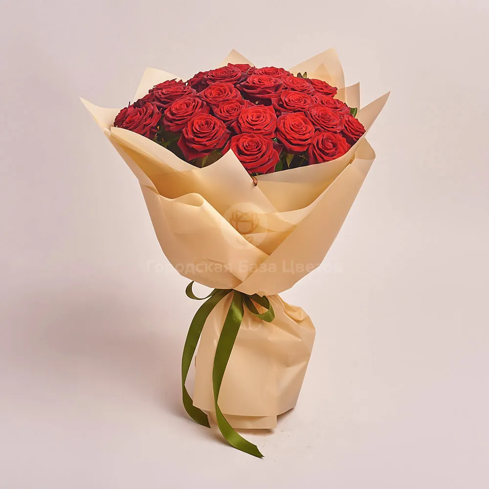 Букет из 25 бордовых роз (60 см)