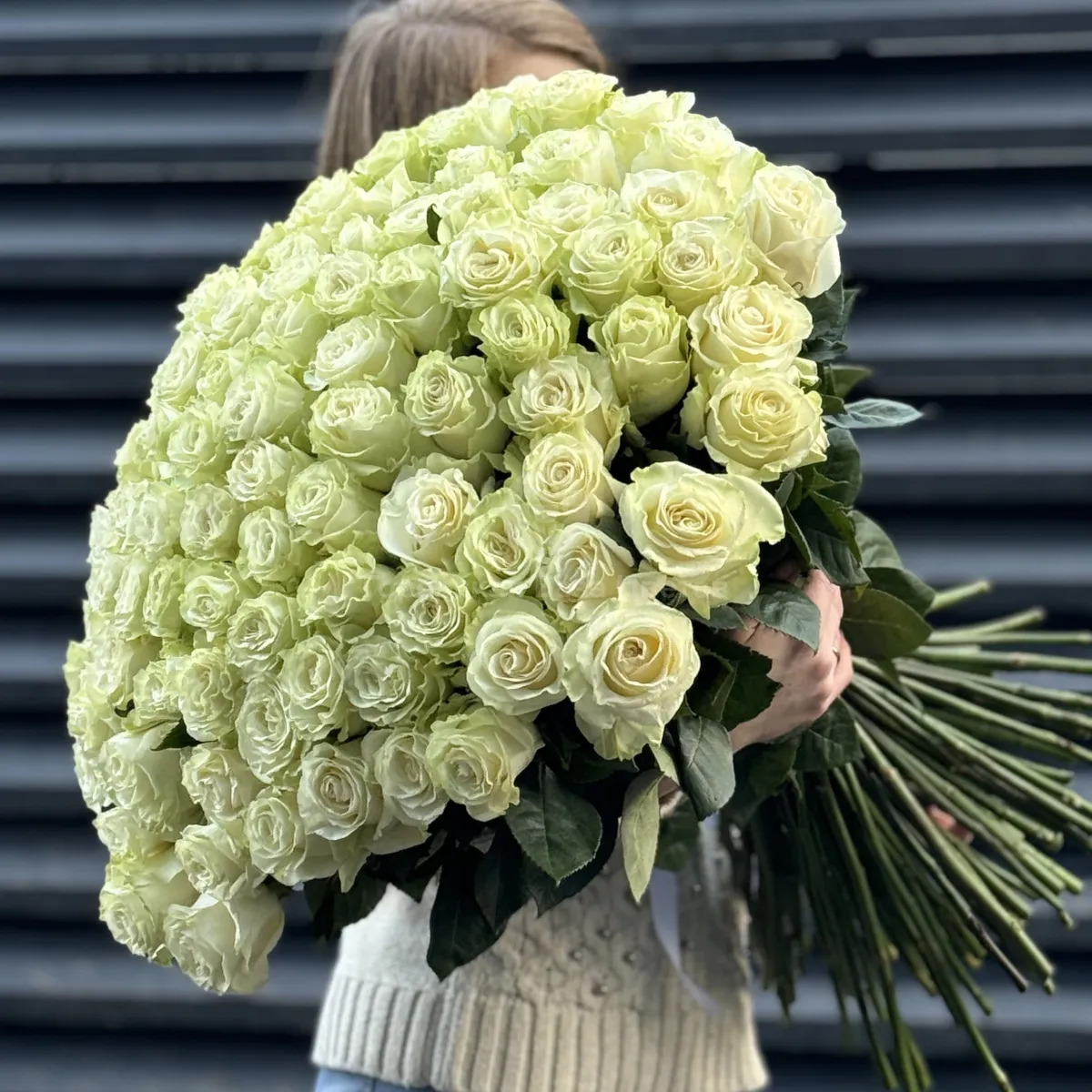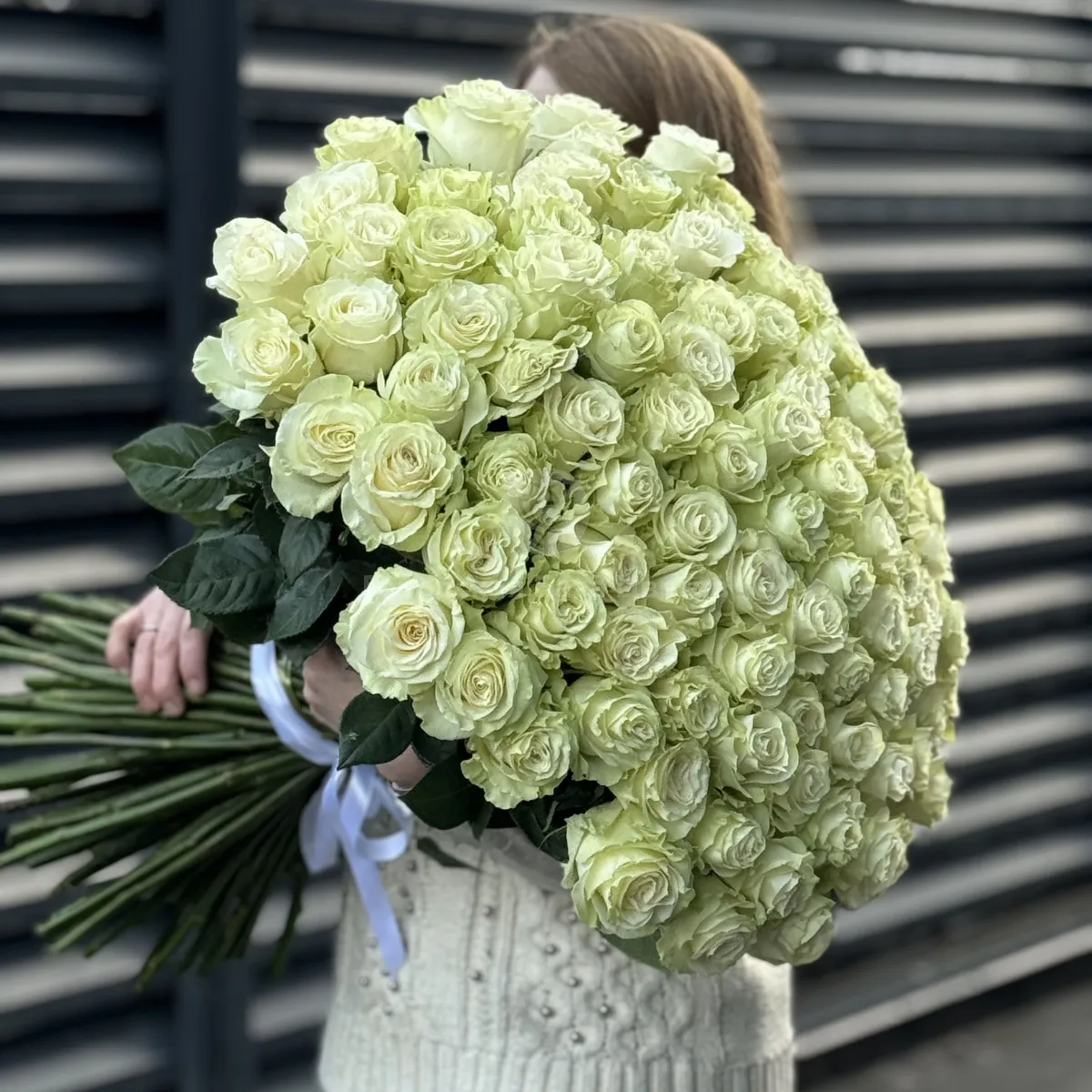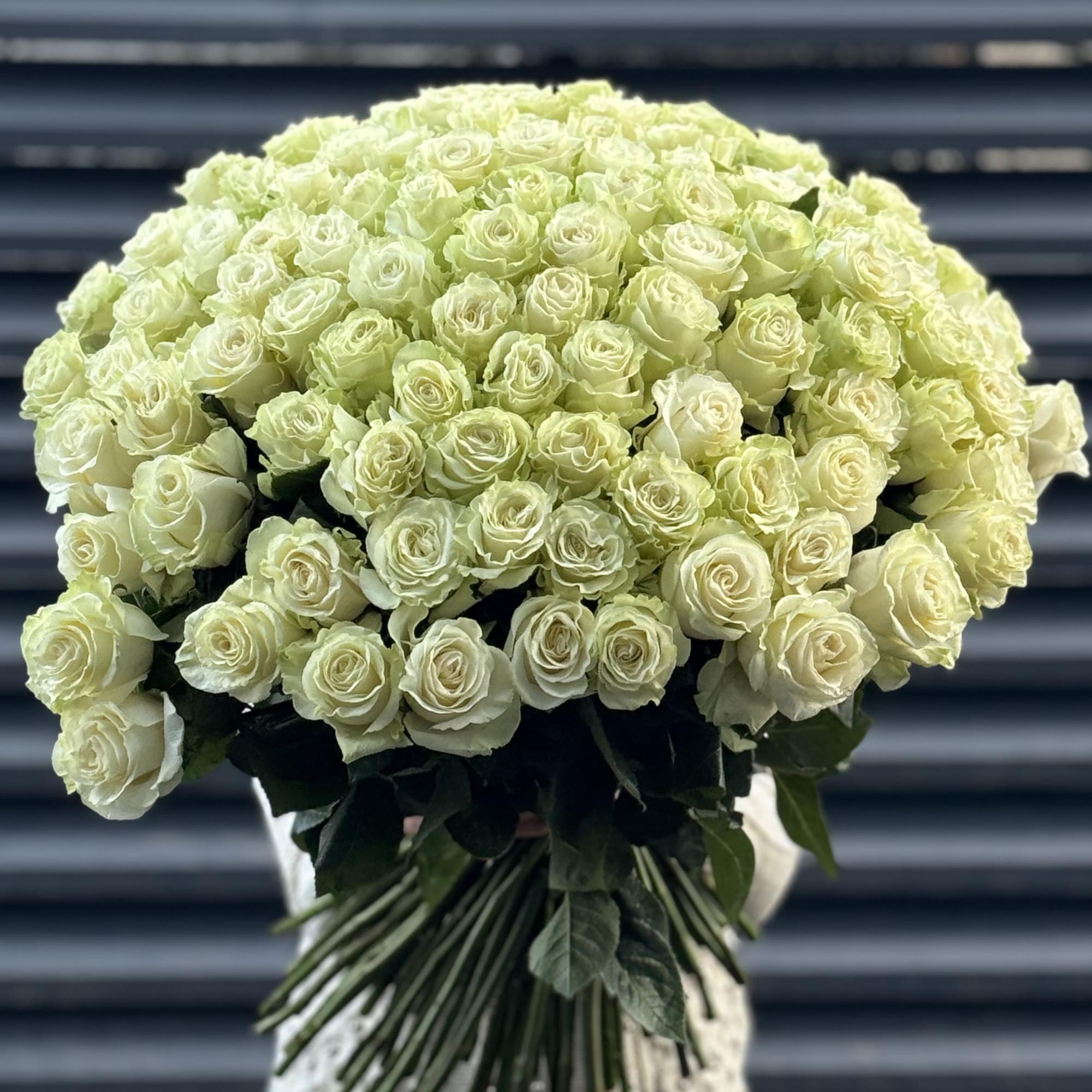 Букет 251 бело-зеленая роза эквадор (70см)