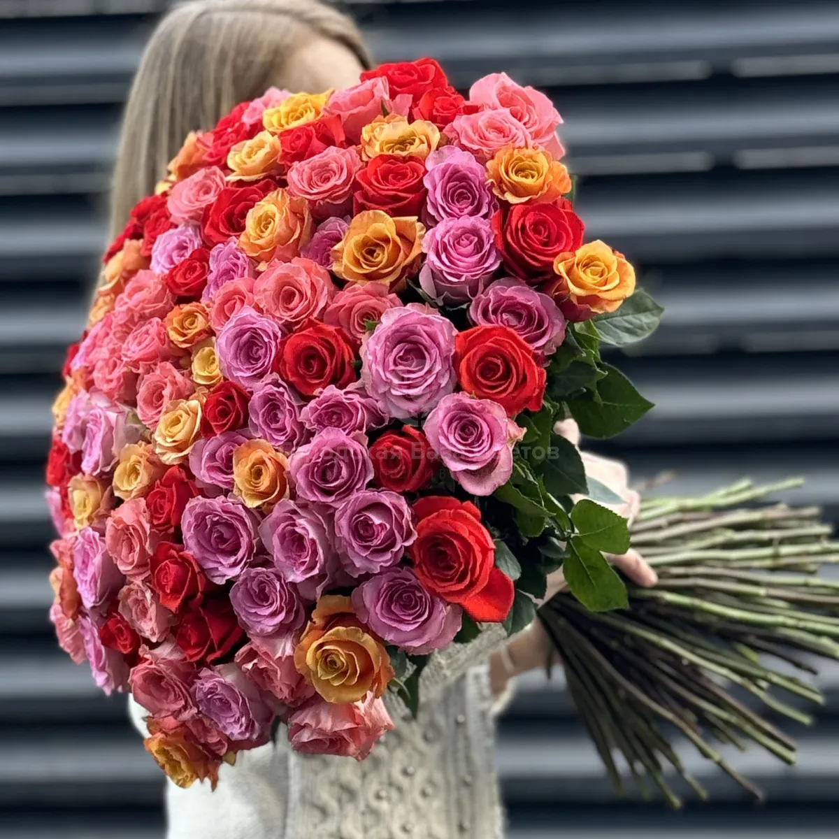 Букет 251 яркий микс роз эквадор (70см)