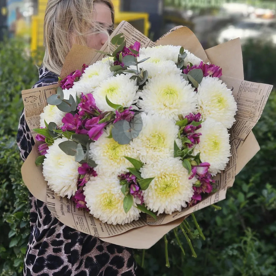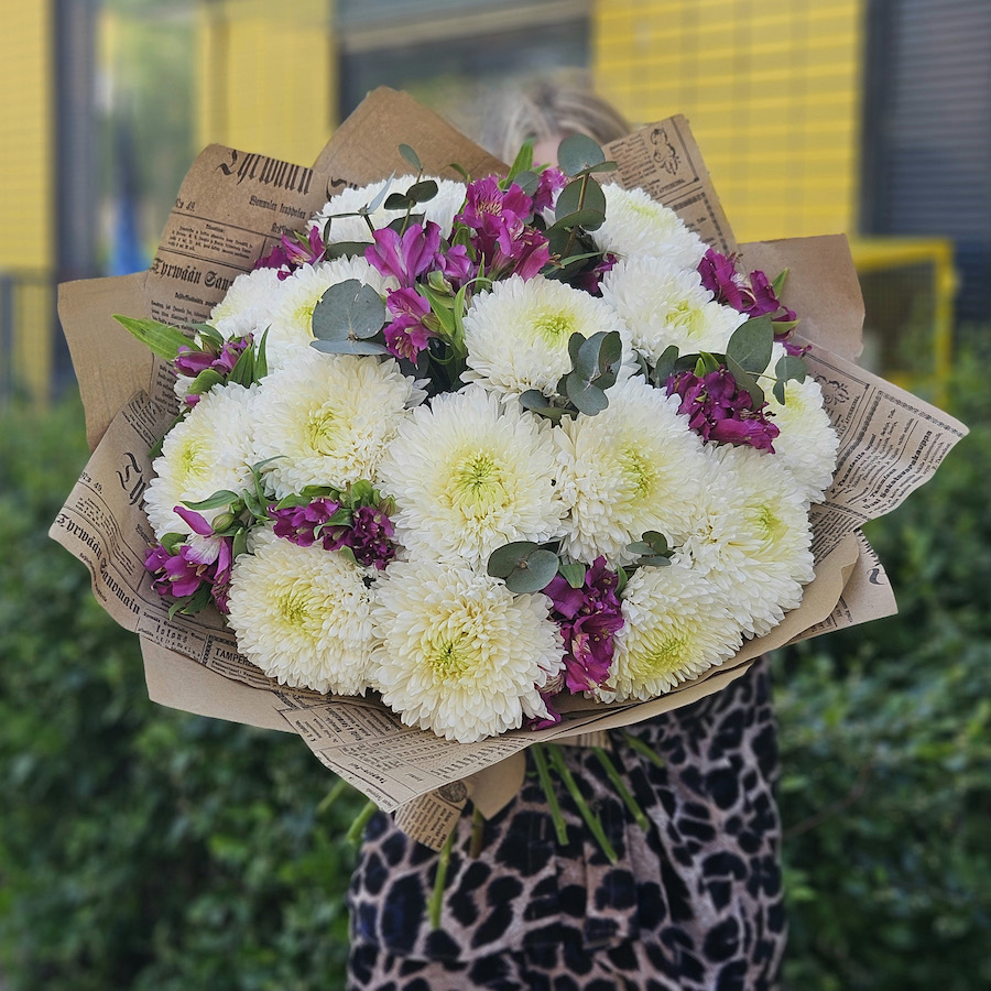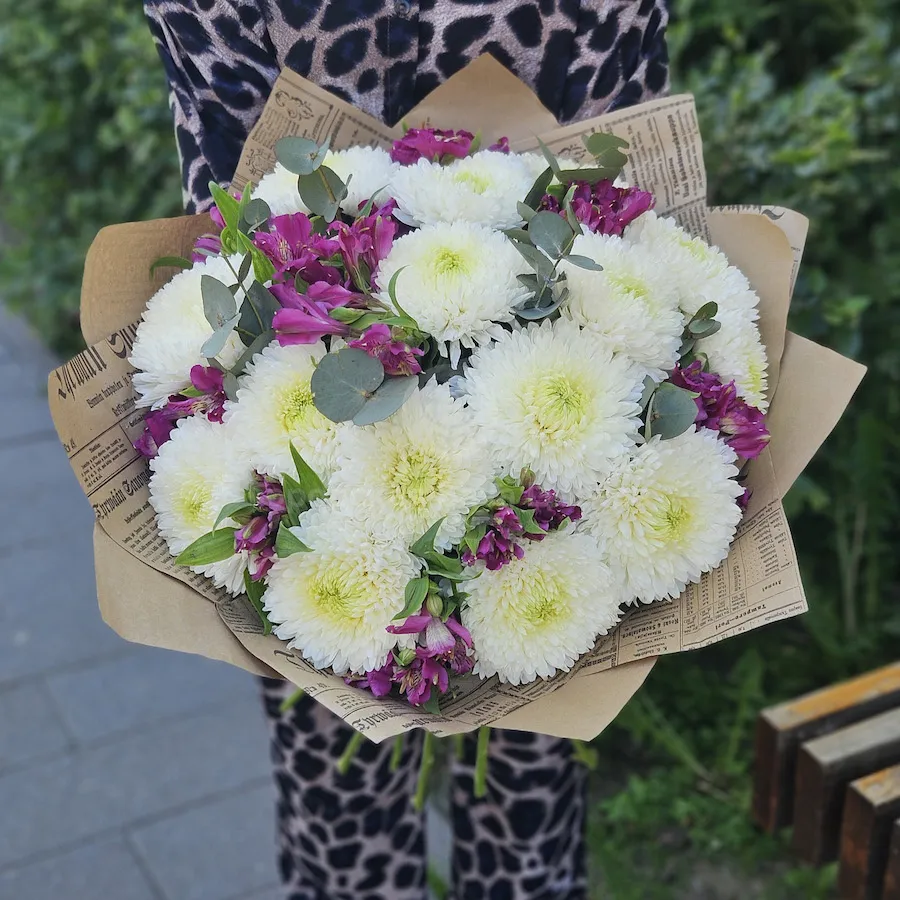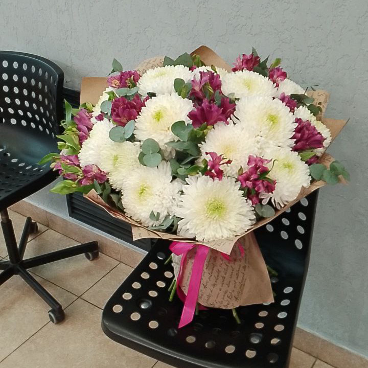 Букет из альстромерий и белых хризантем