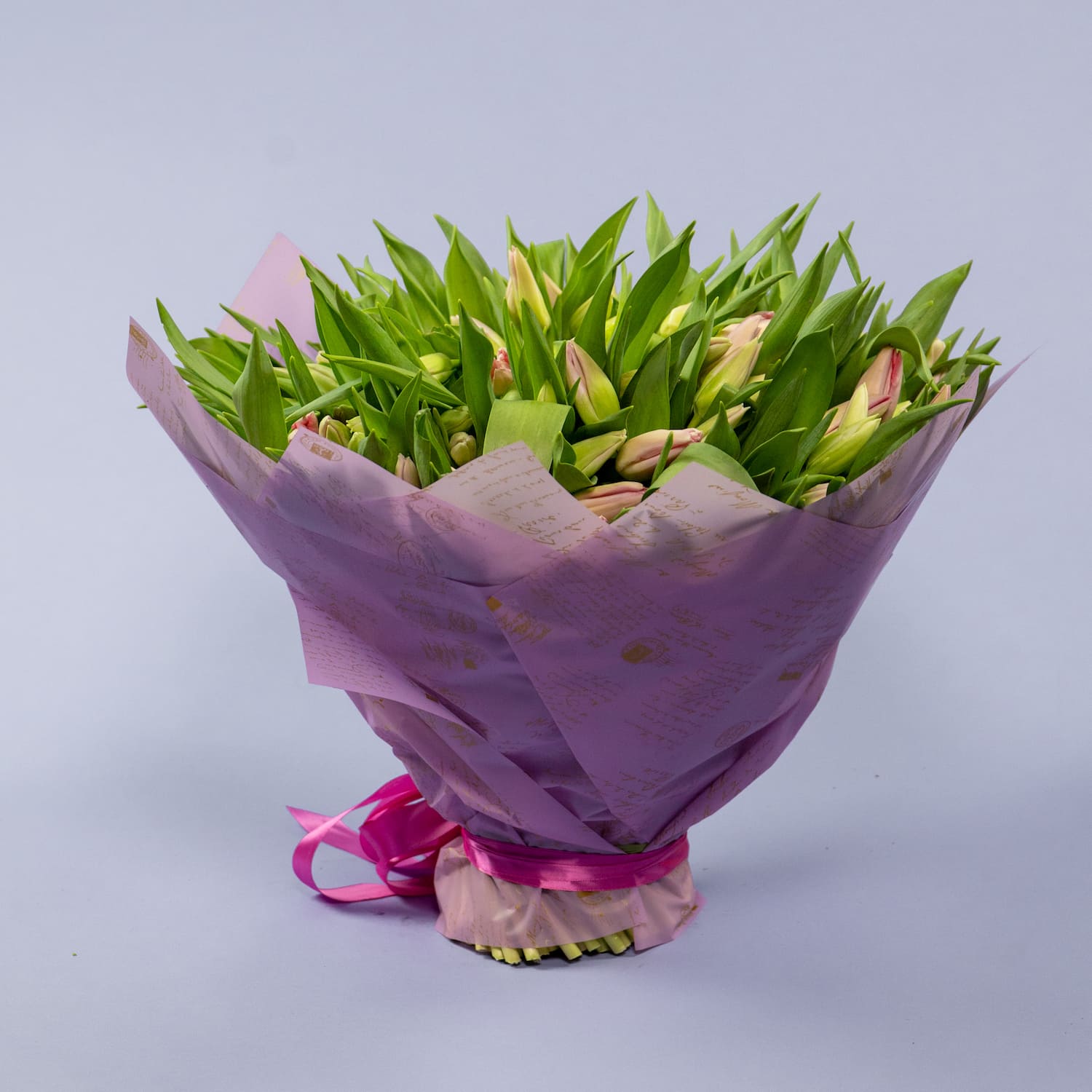 150 нежно-розовых тюльпанов