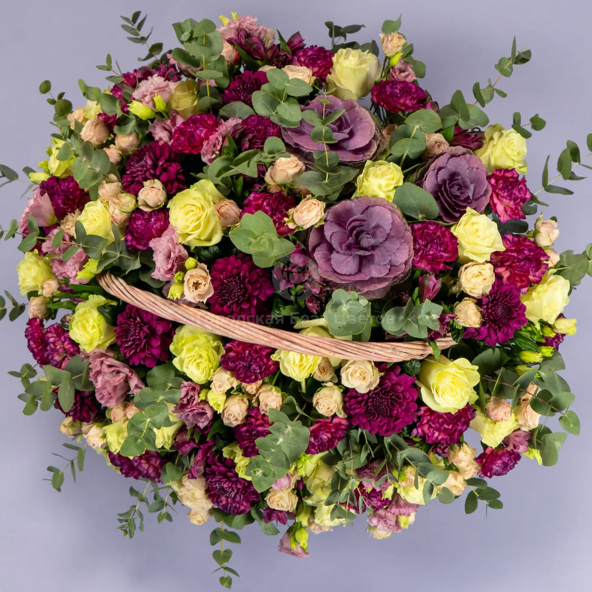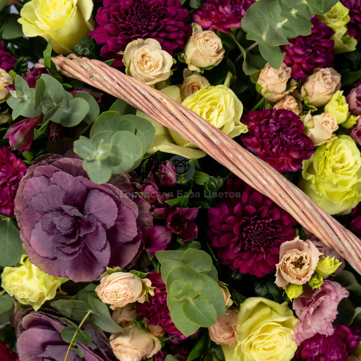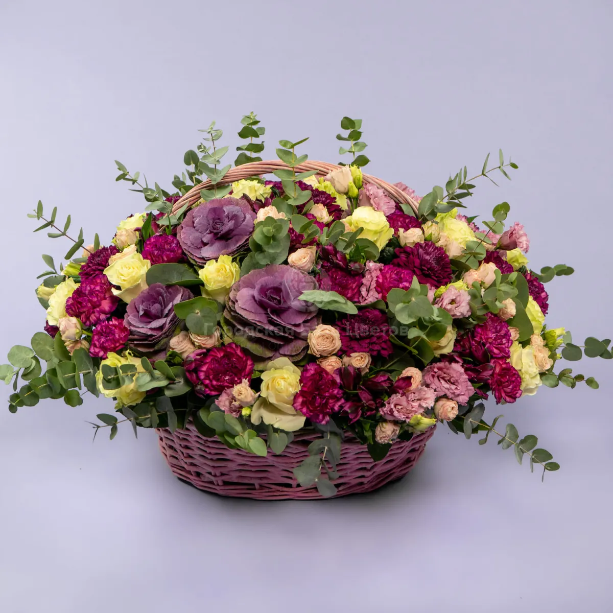 Розы микс и гвоздики в корзине