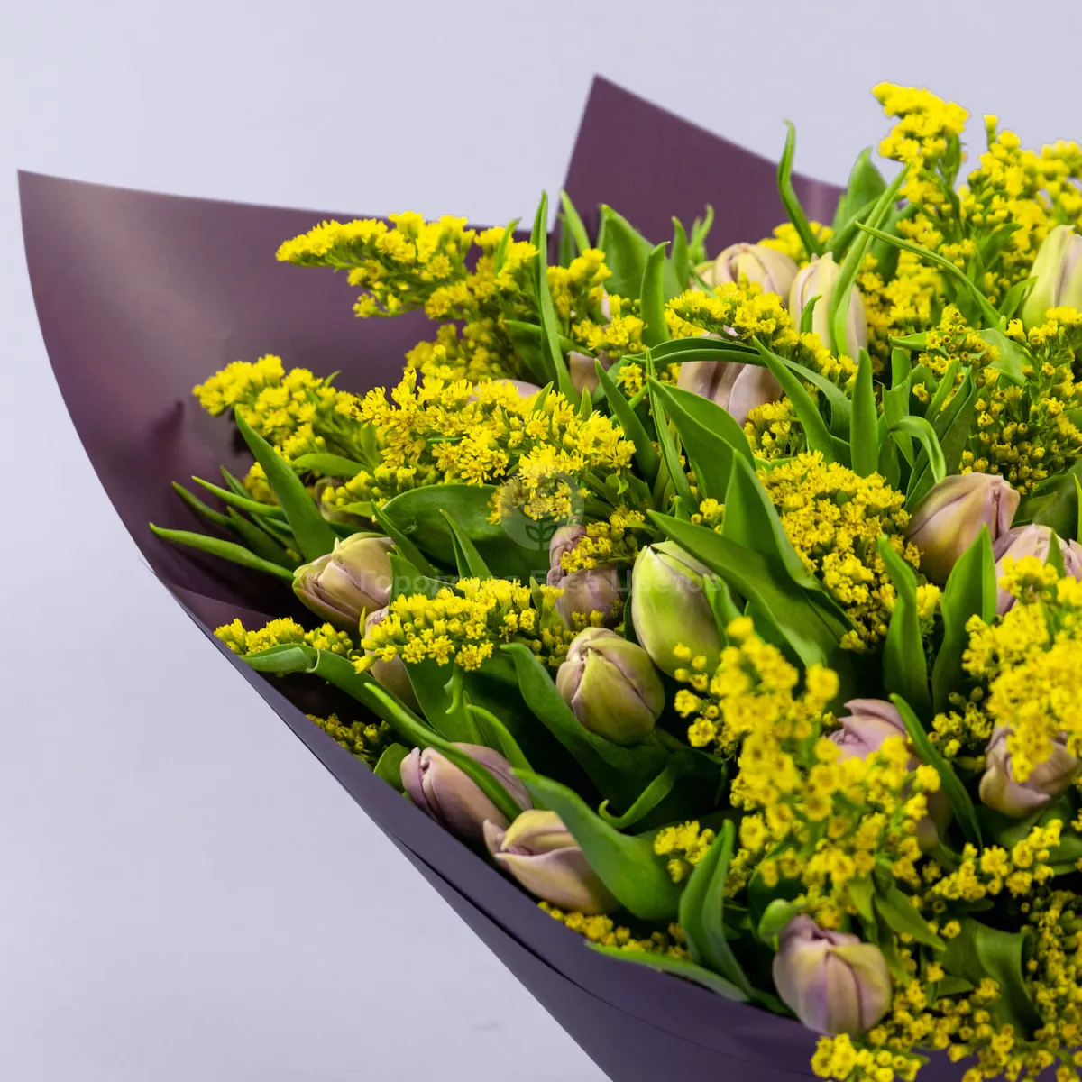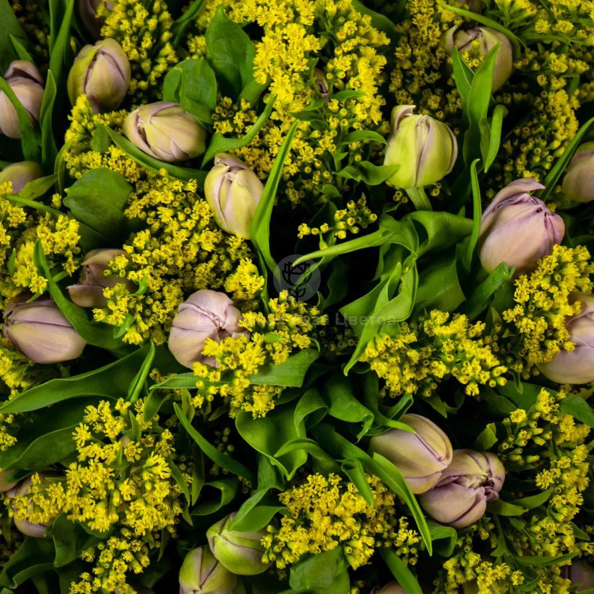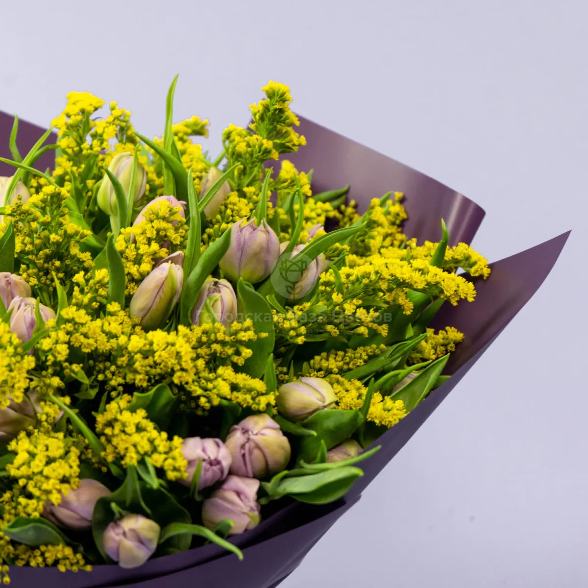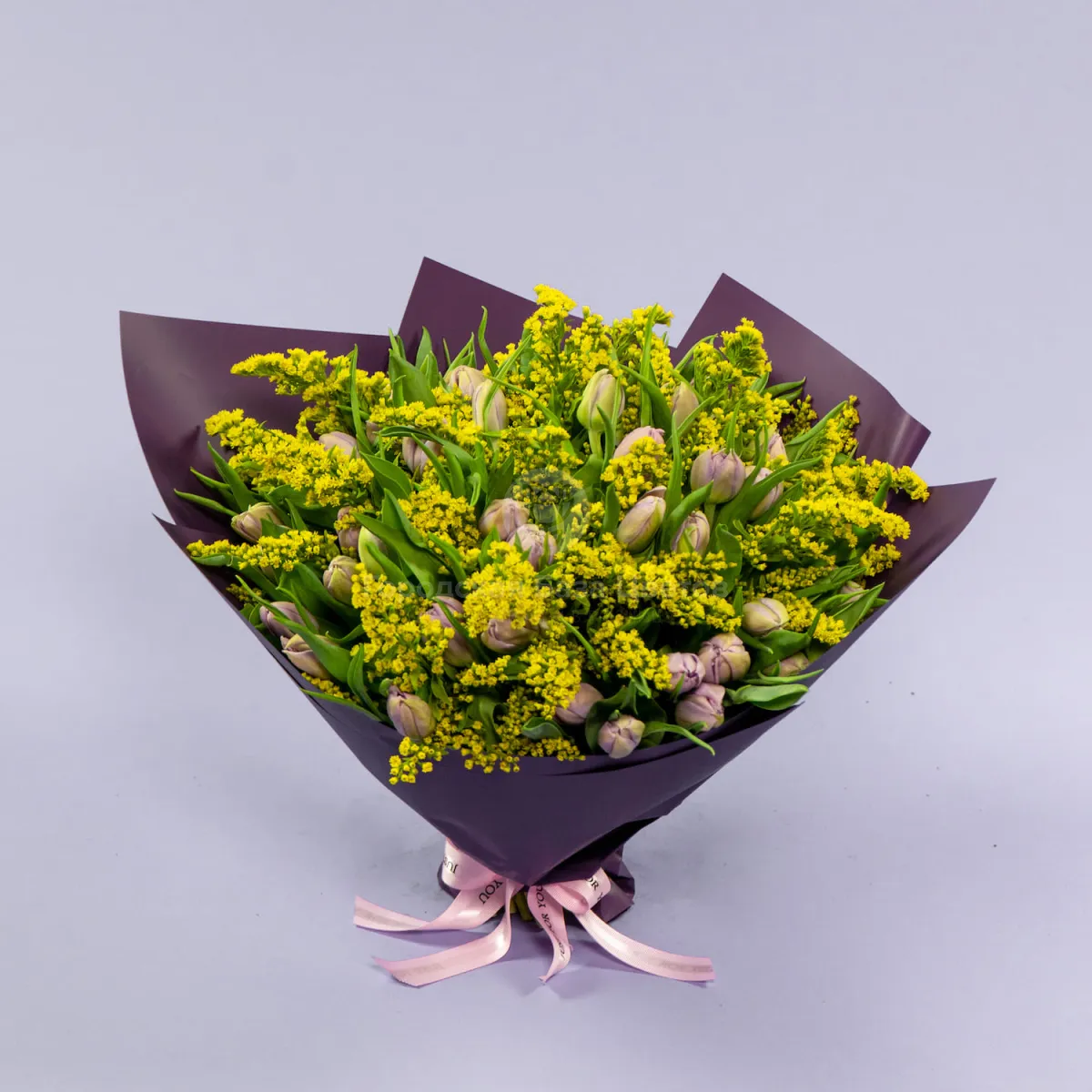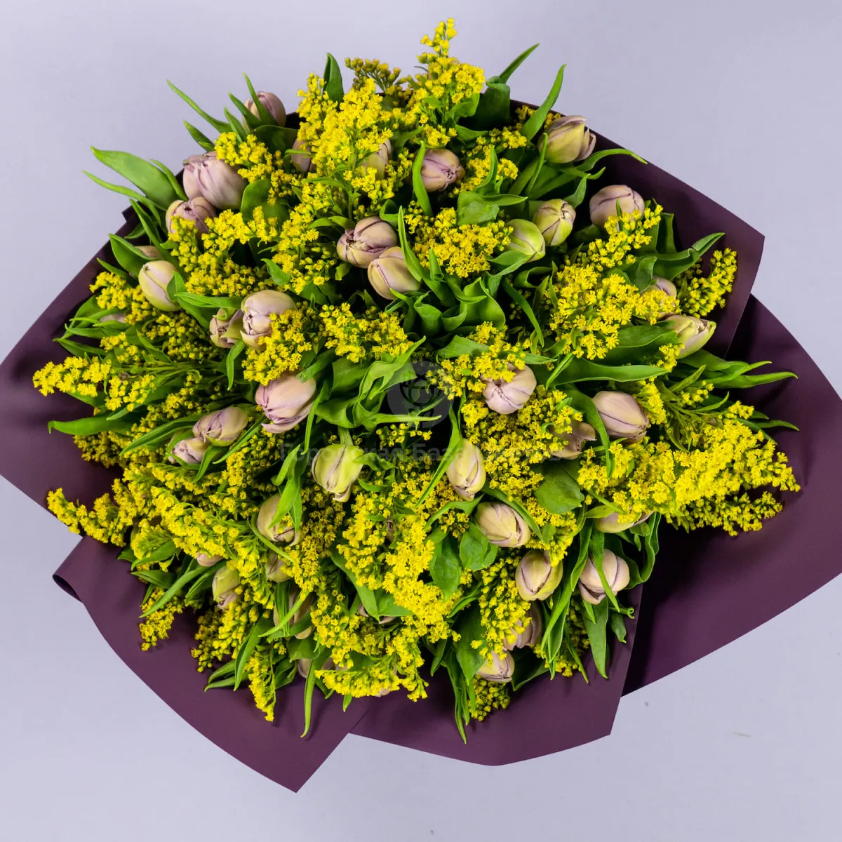 Букет из 49 тюльпанов и солидаго