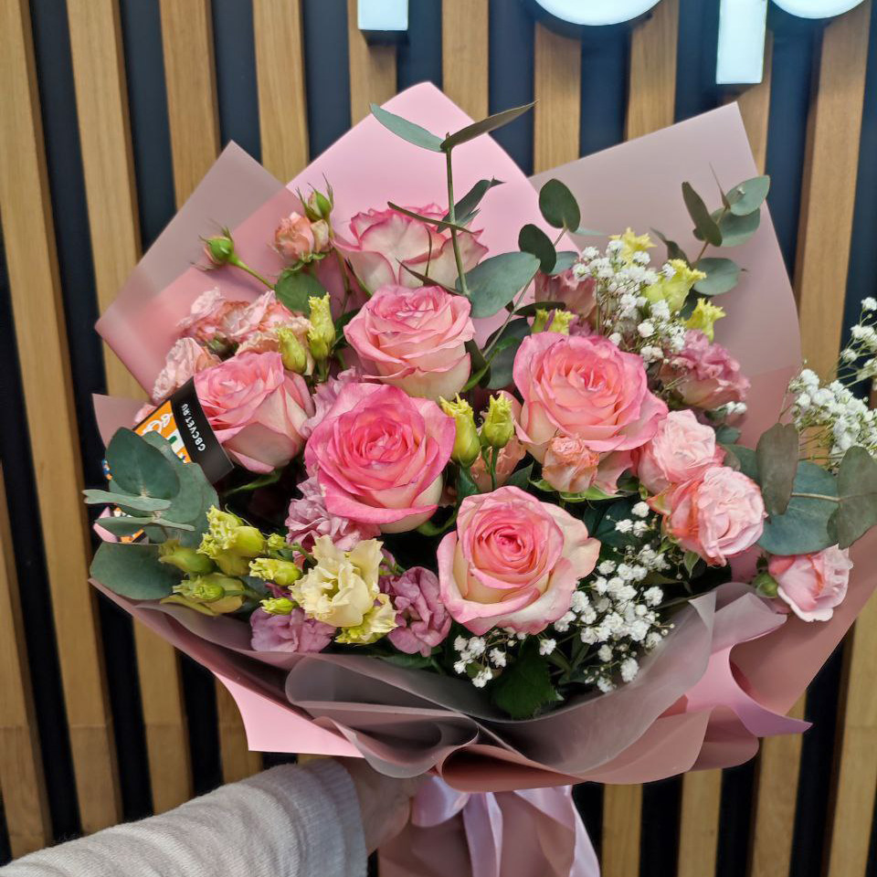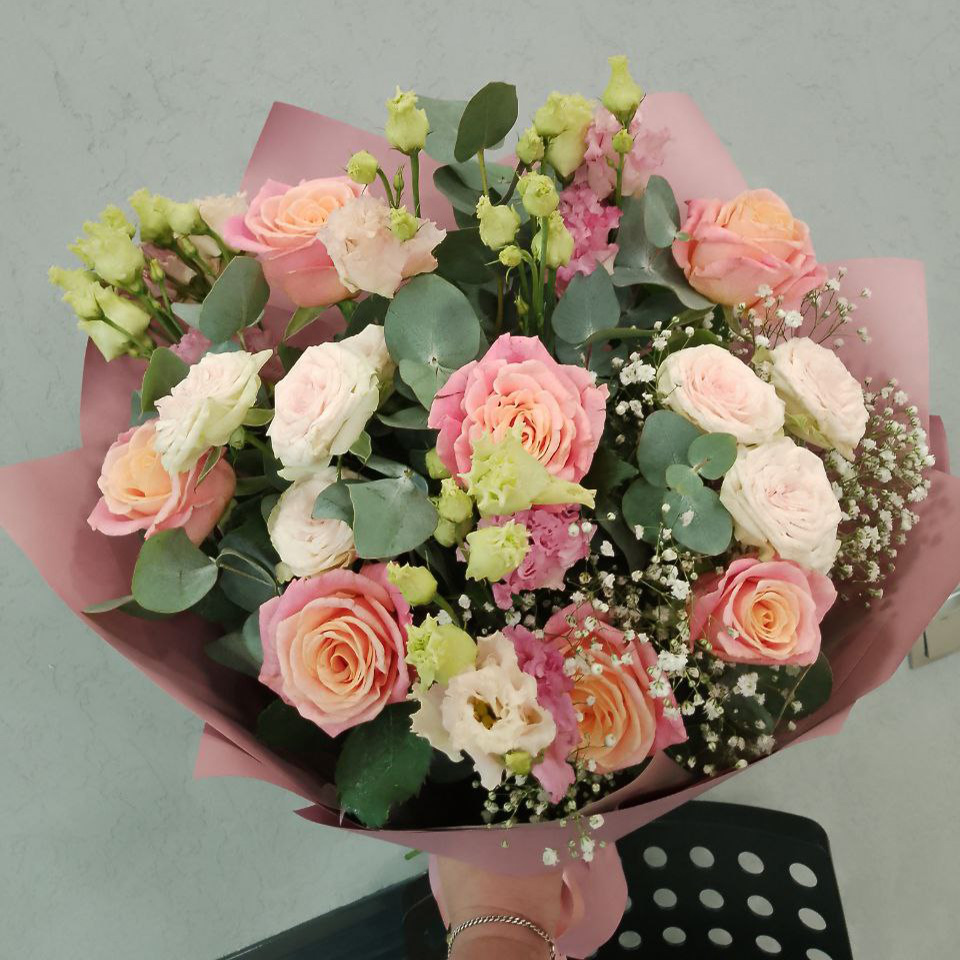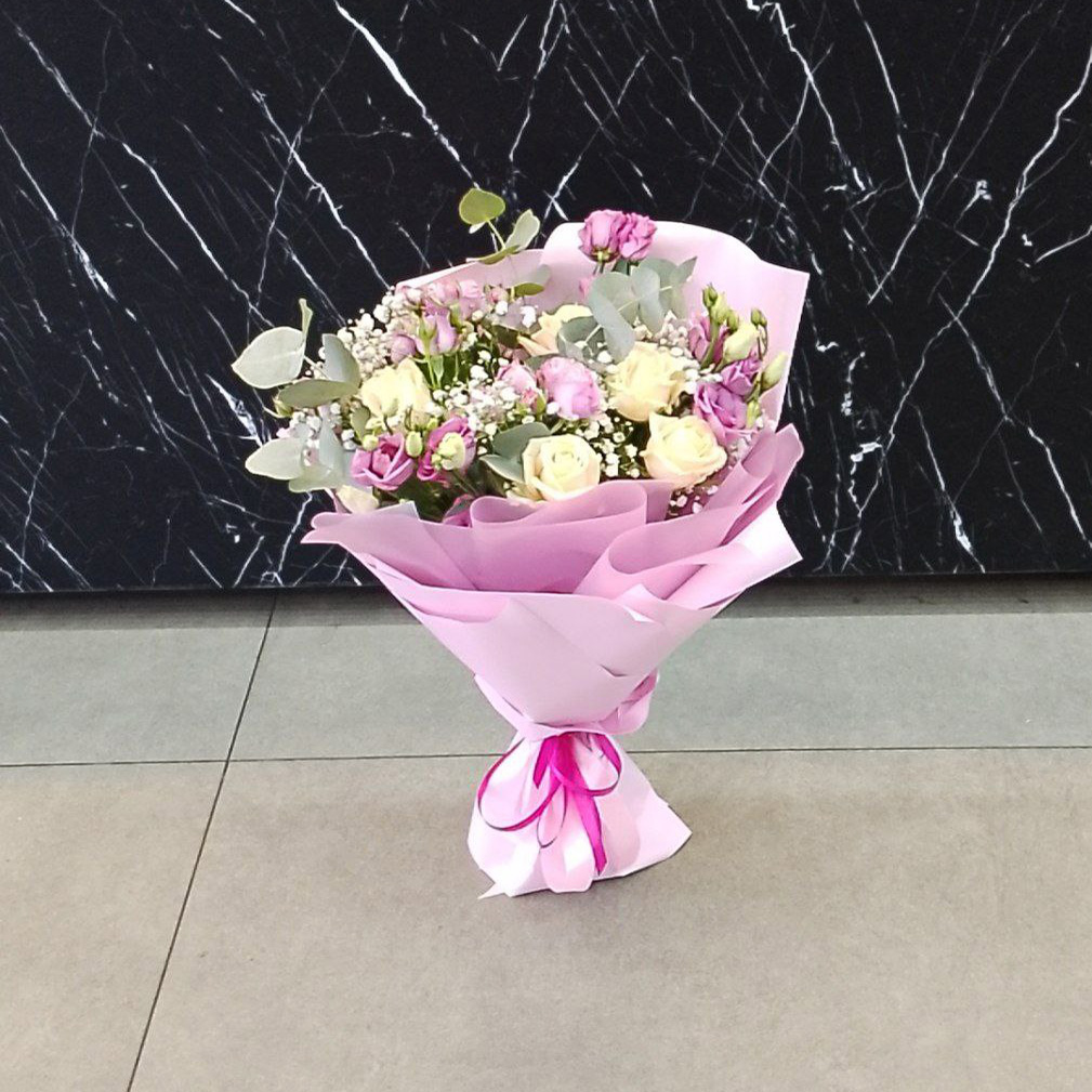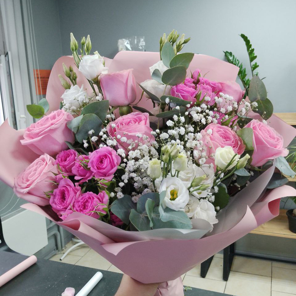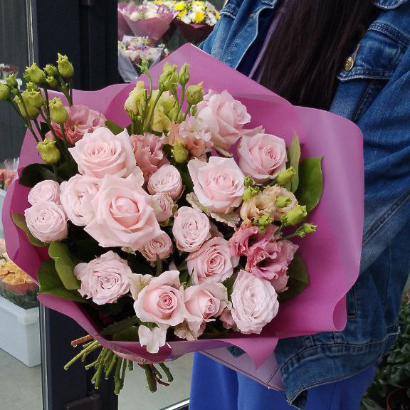 Букет из роз и эустом микс (50 см)