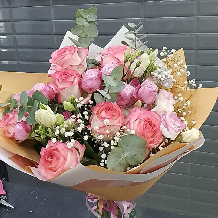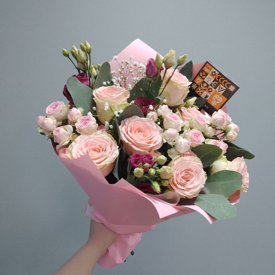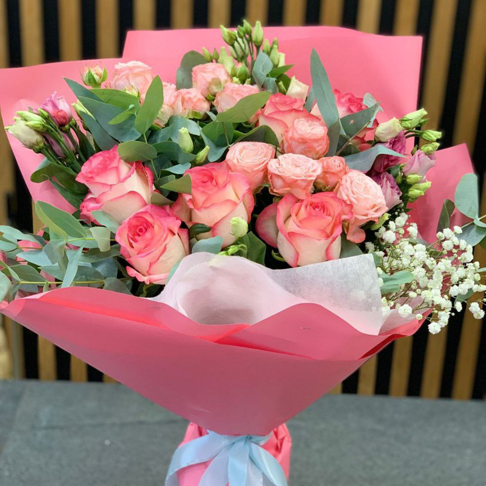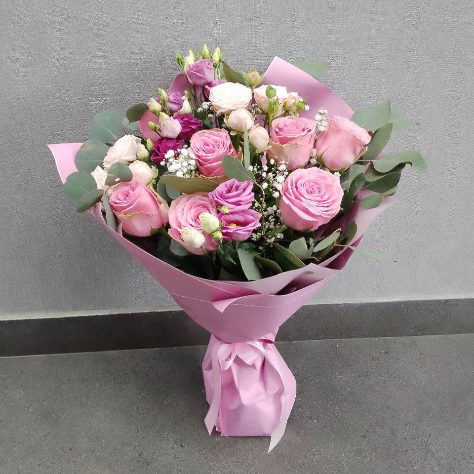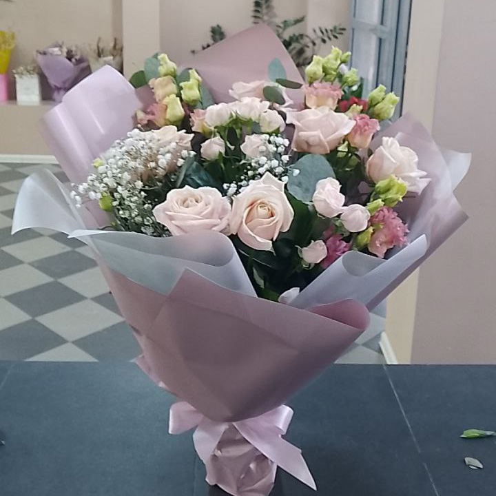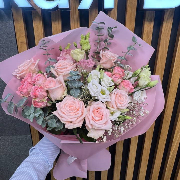 Букет из роз и эустом микс (50 см)