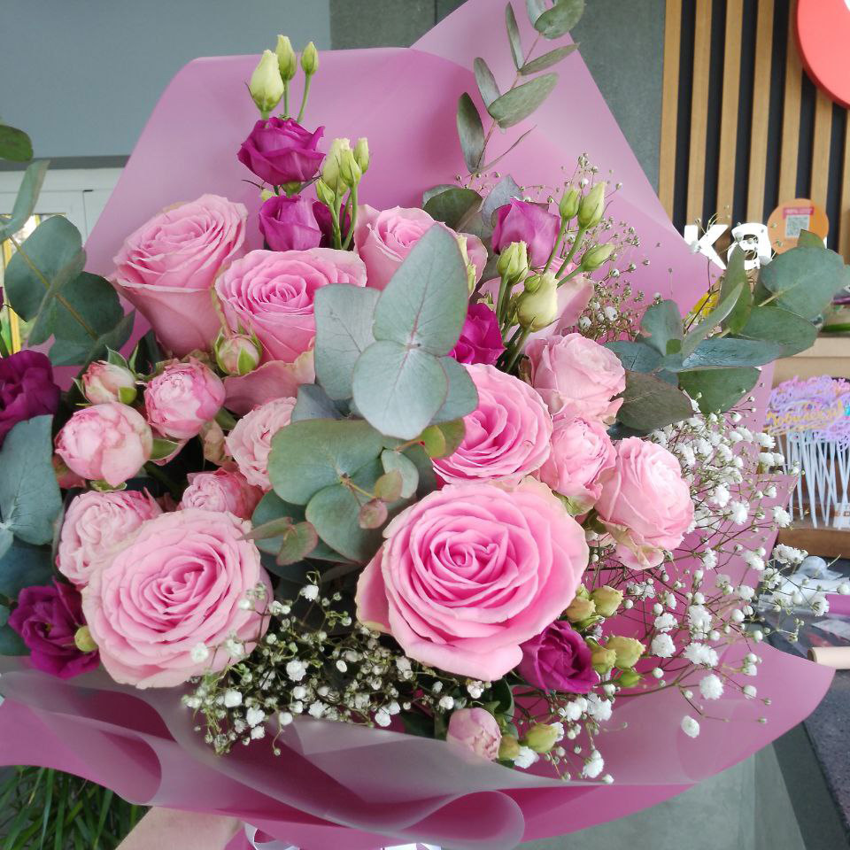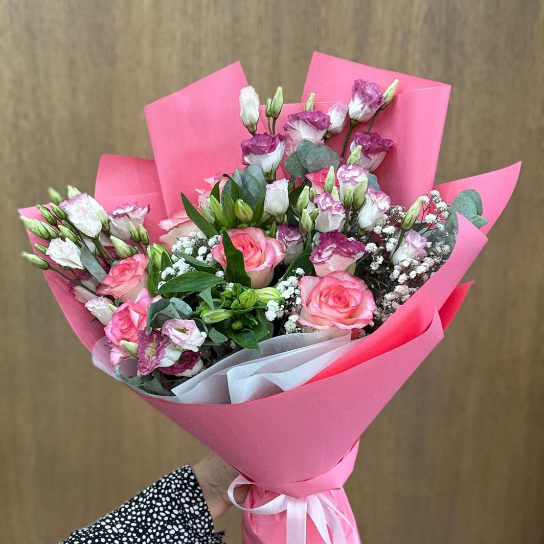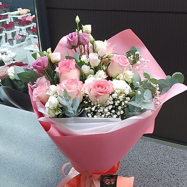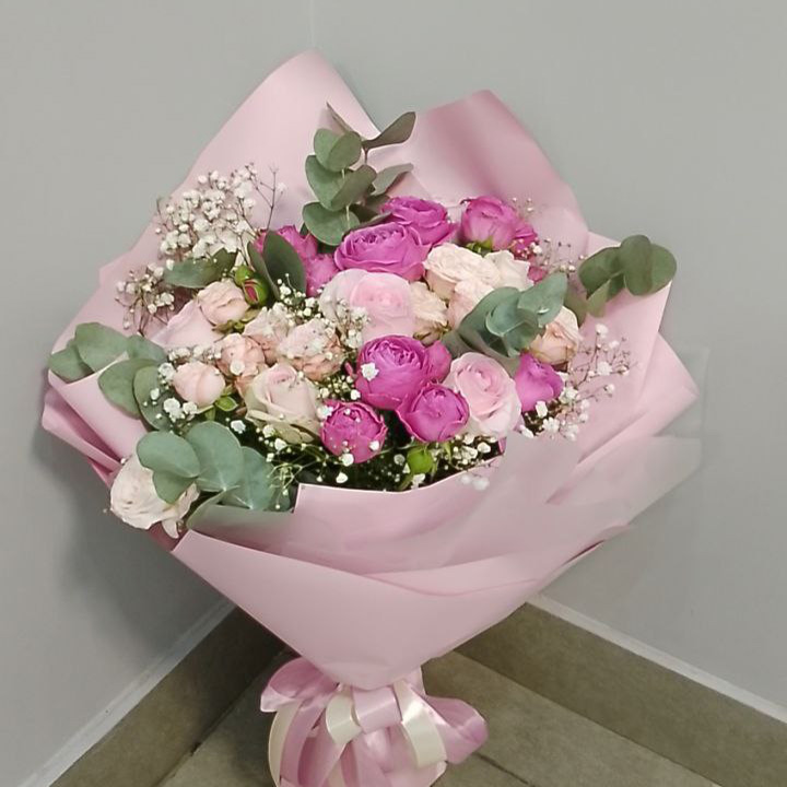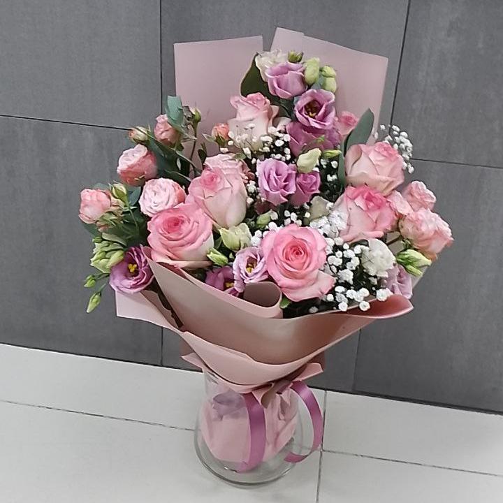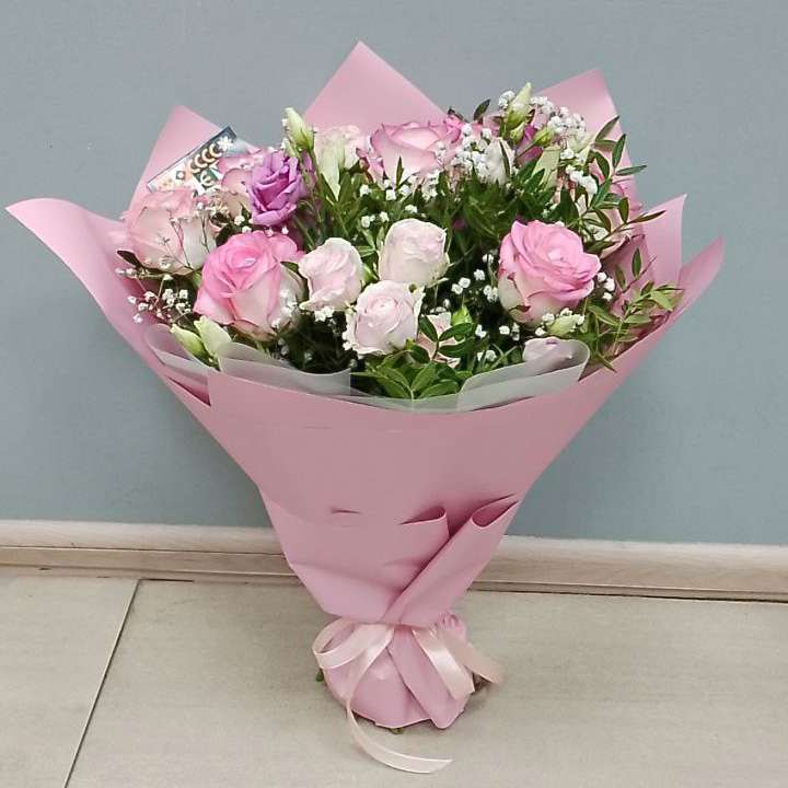 Букет из роз и эустом микс (50 см)