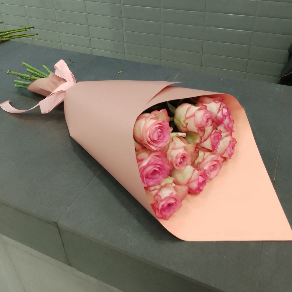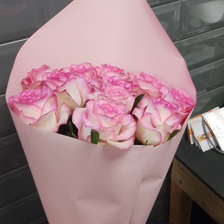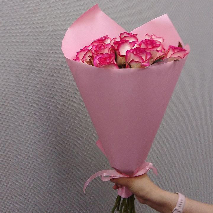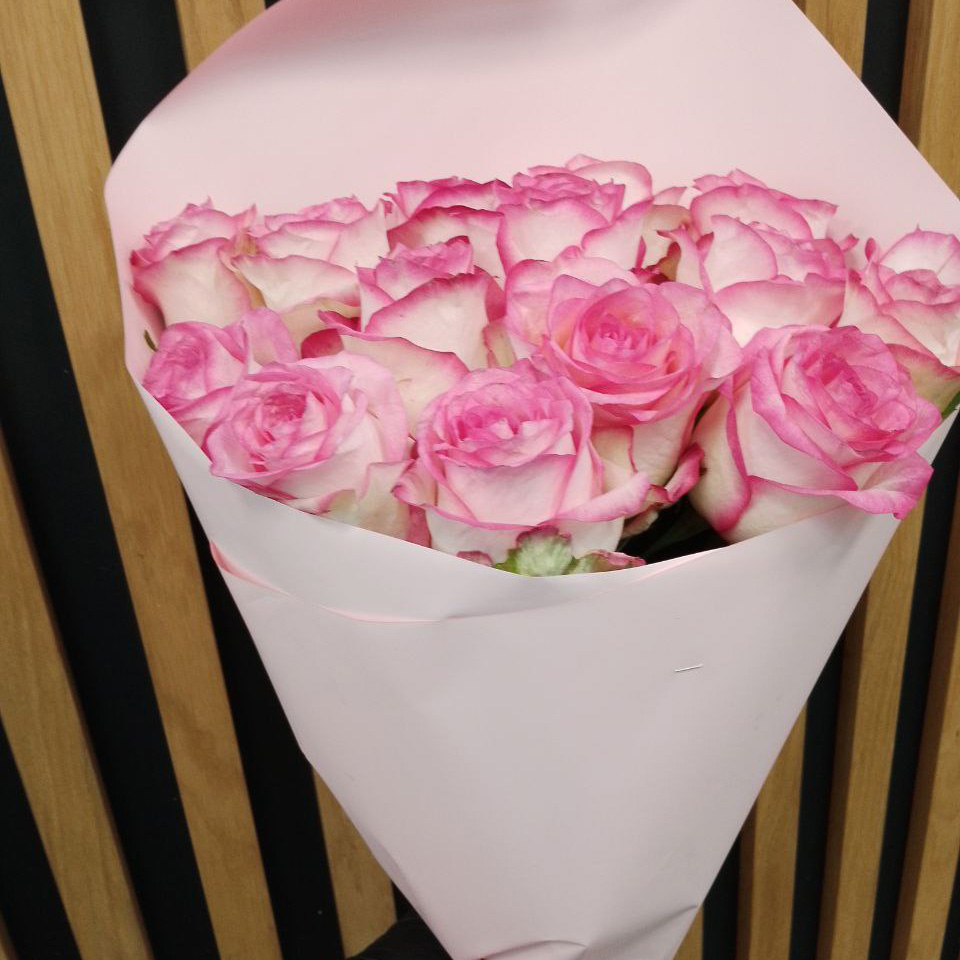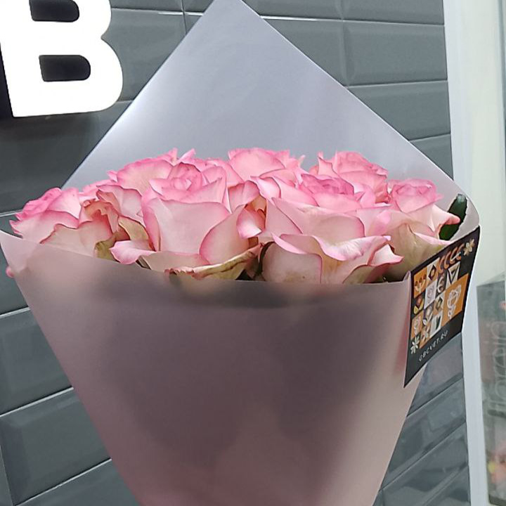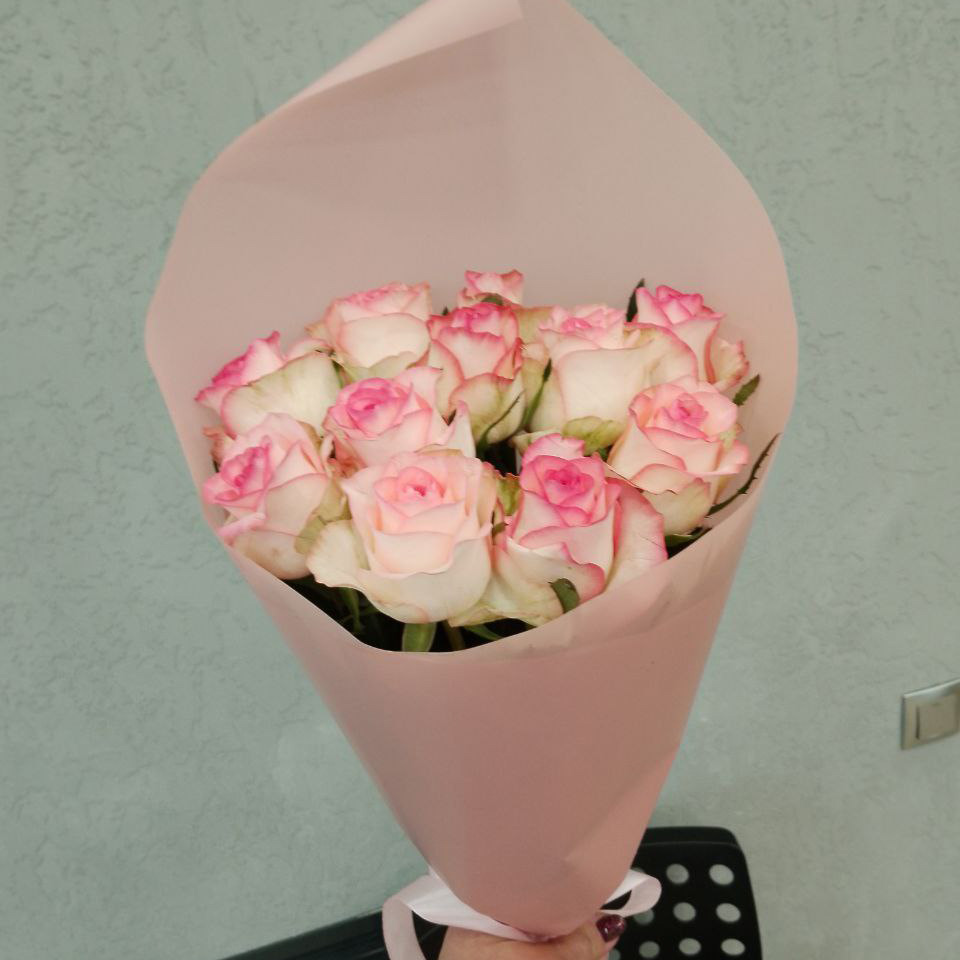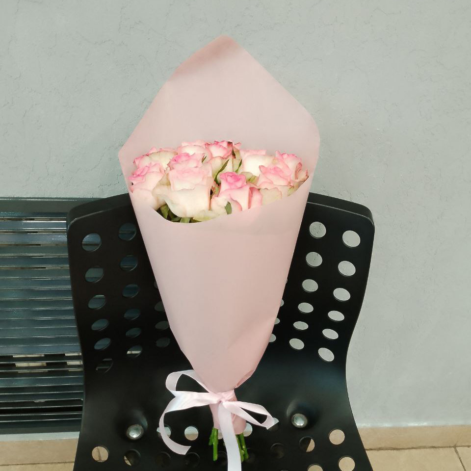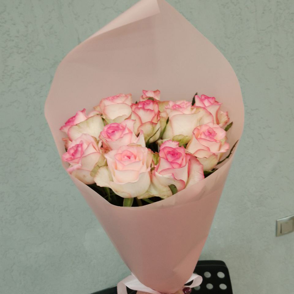 Букет из 11 розово-белых роз (50 см)