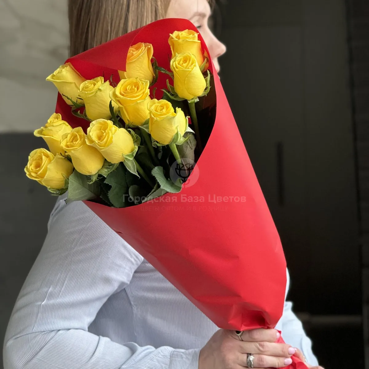 Букет из 11 жёлтых роз (50 см)