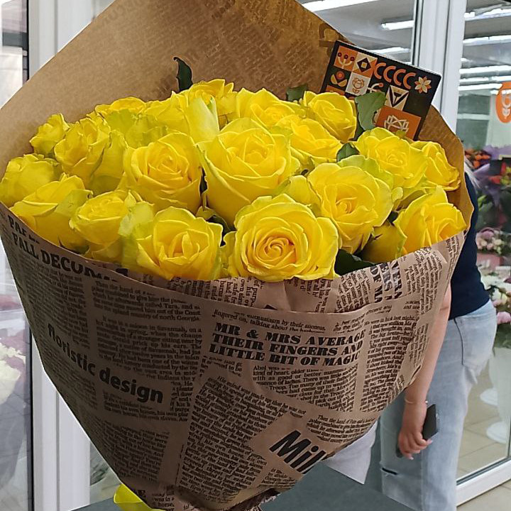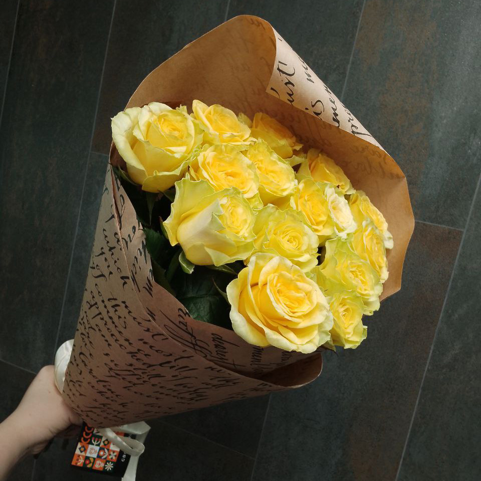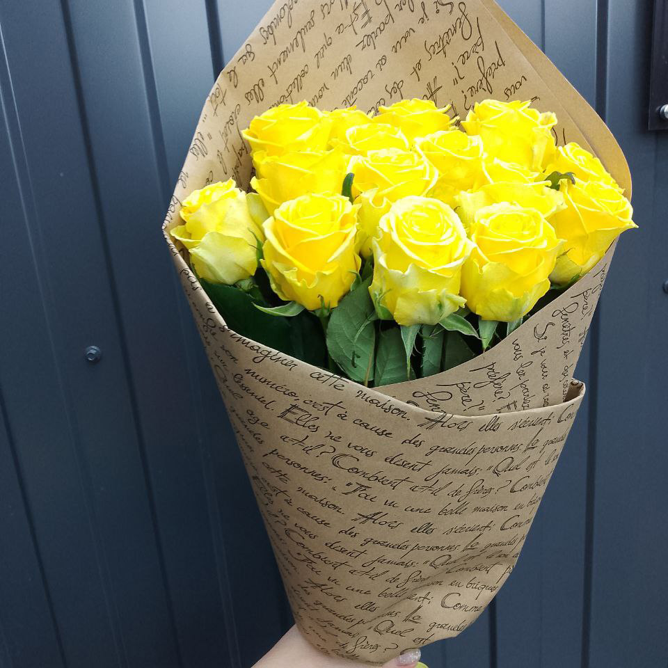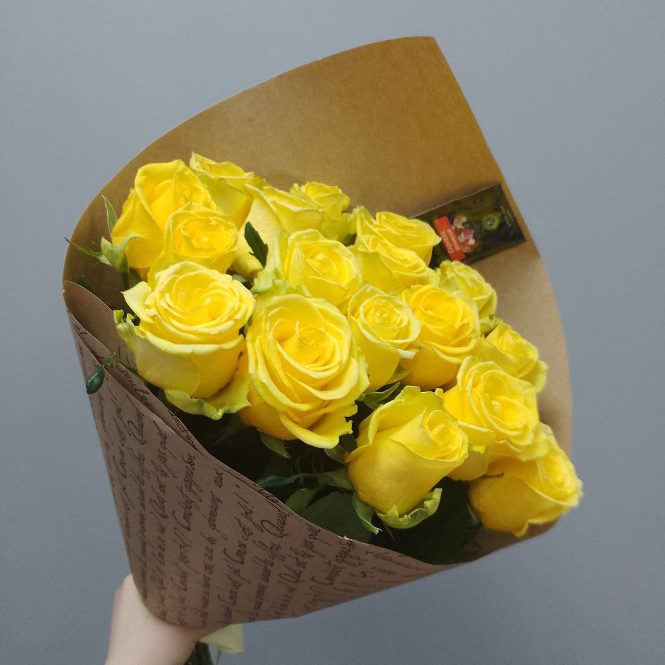 Букет из 15 жёлтых роз (60 см)