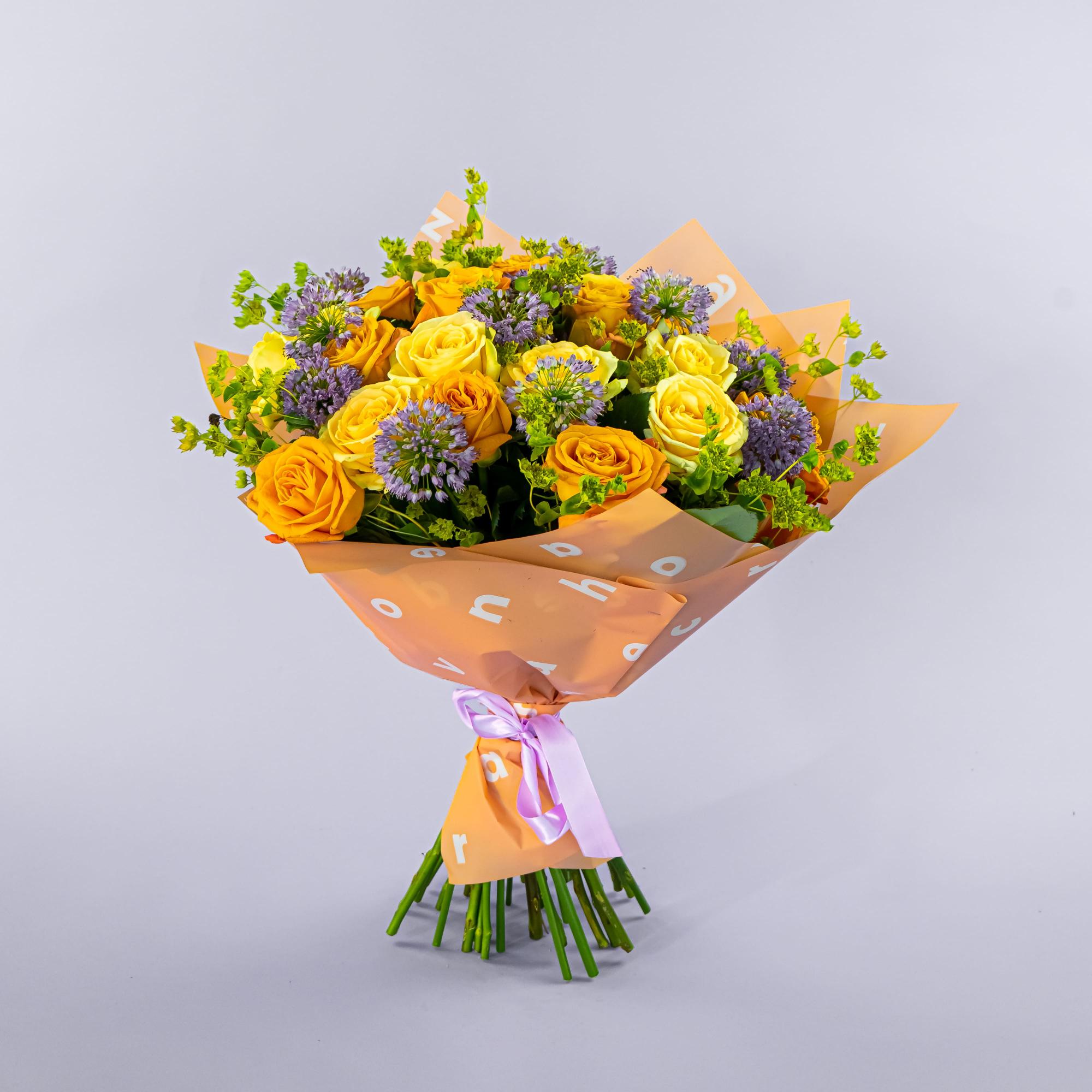 Яркий букет с посылом хорошего настроения для дам любого возраста