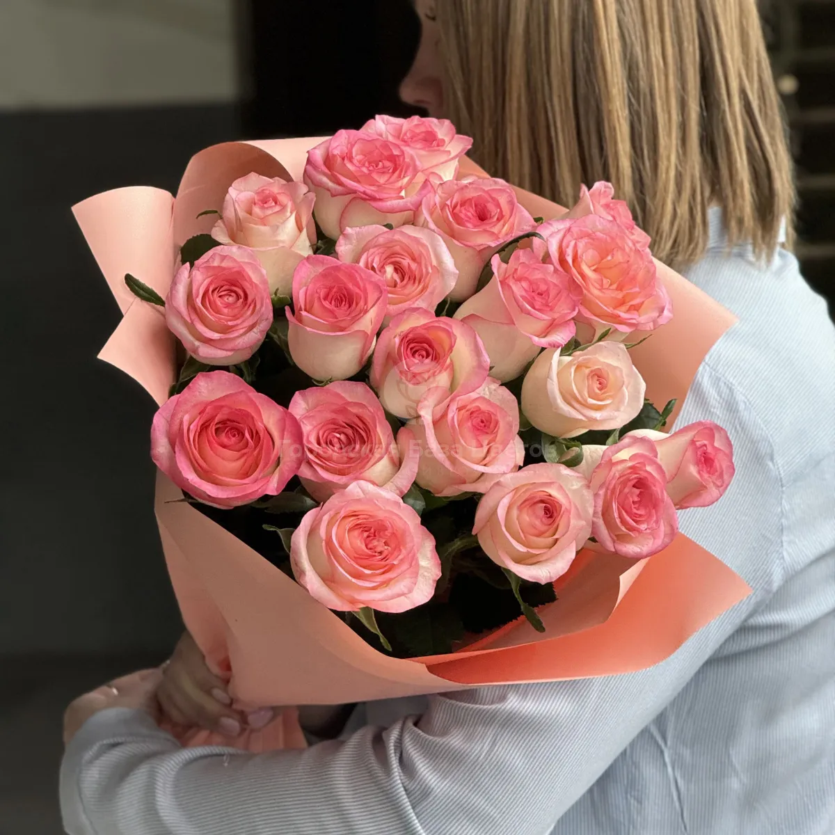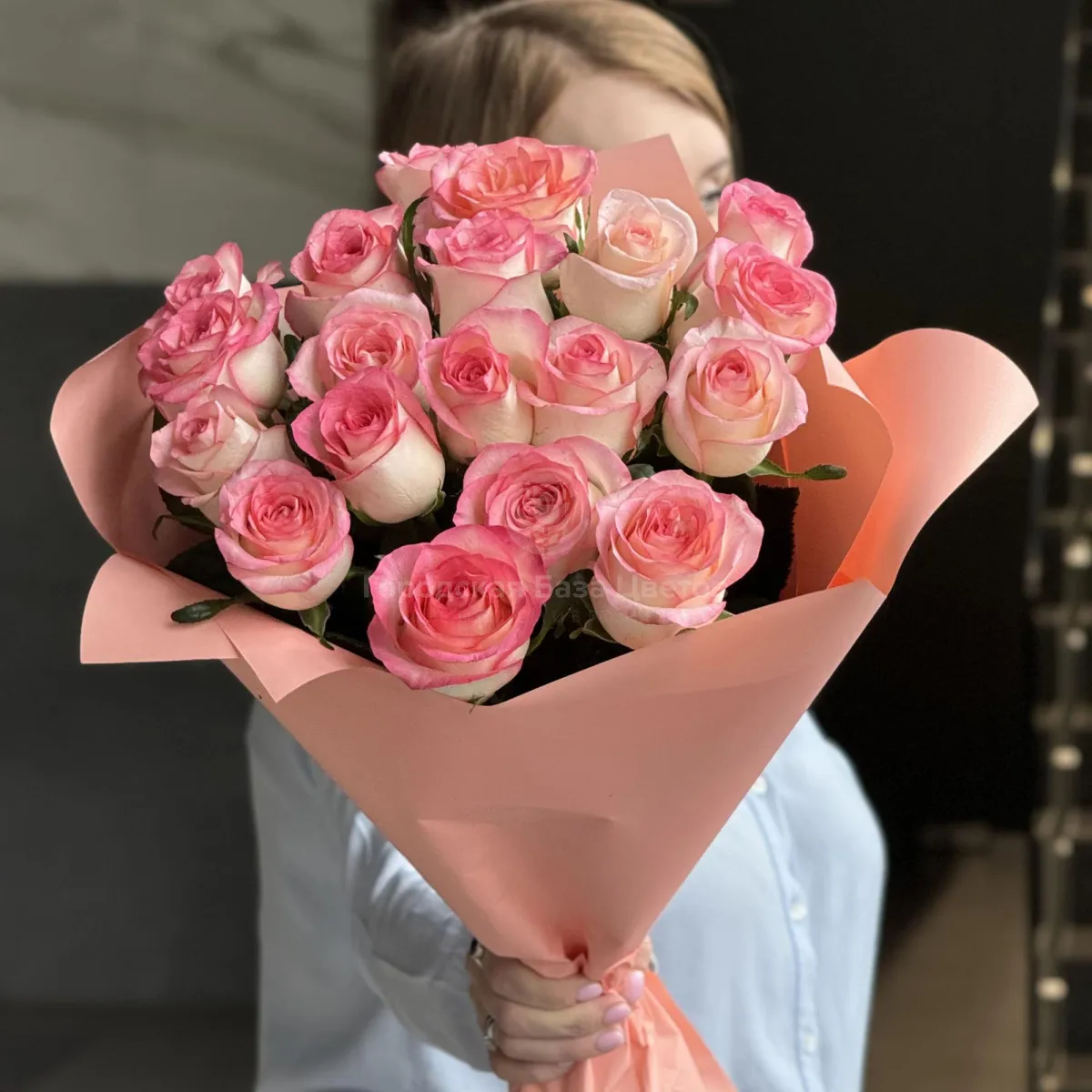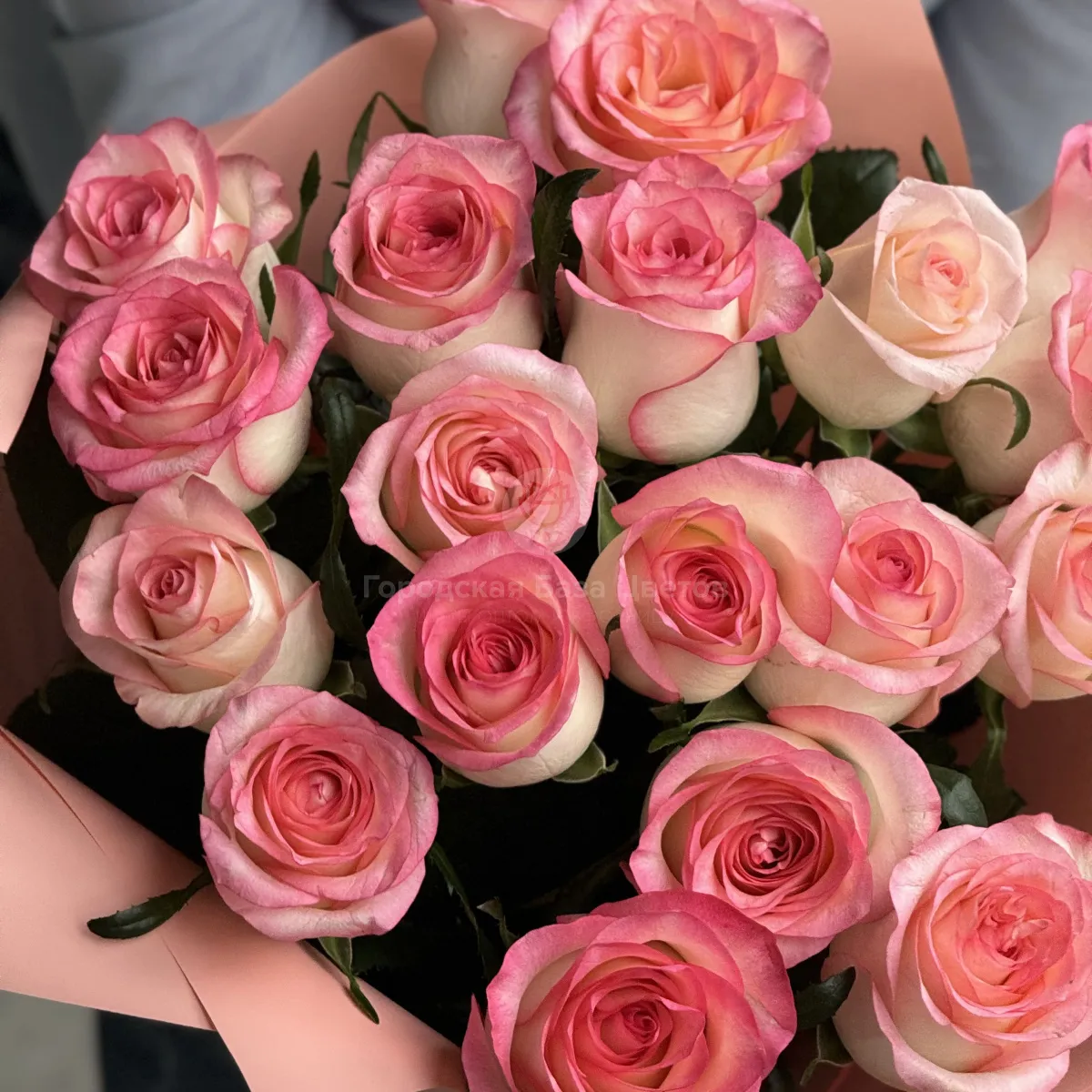 Букет из 19 розово-белых роз (50 см)