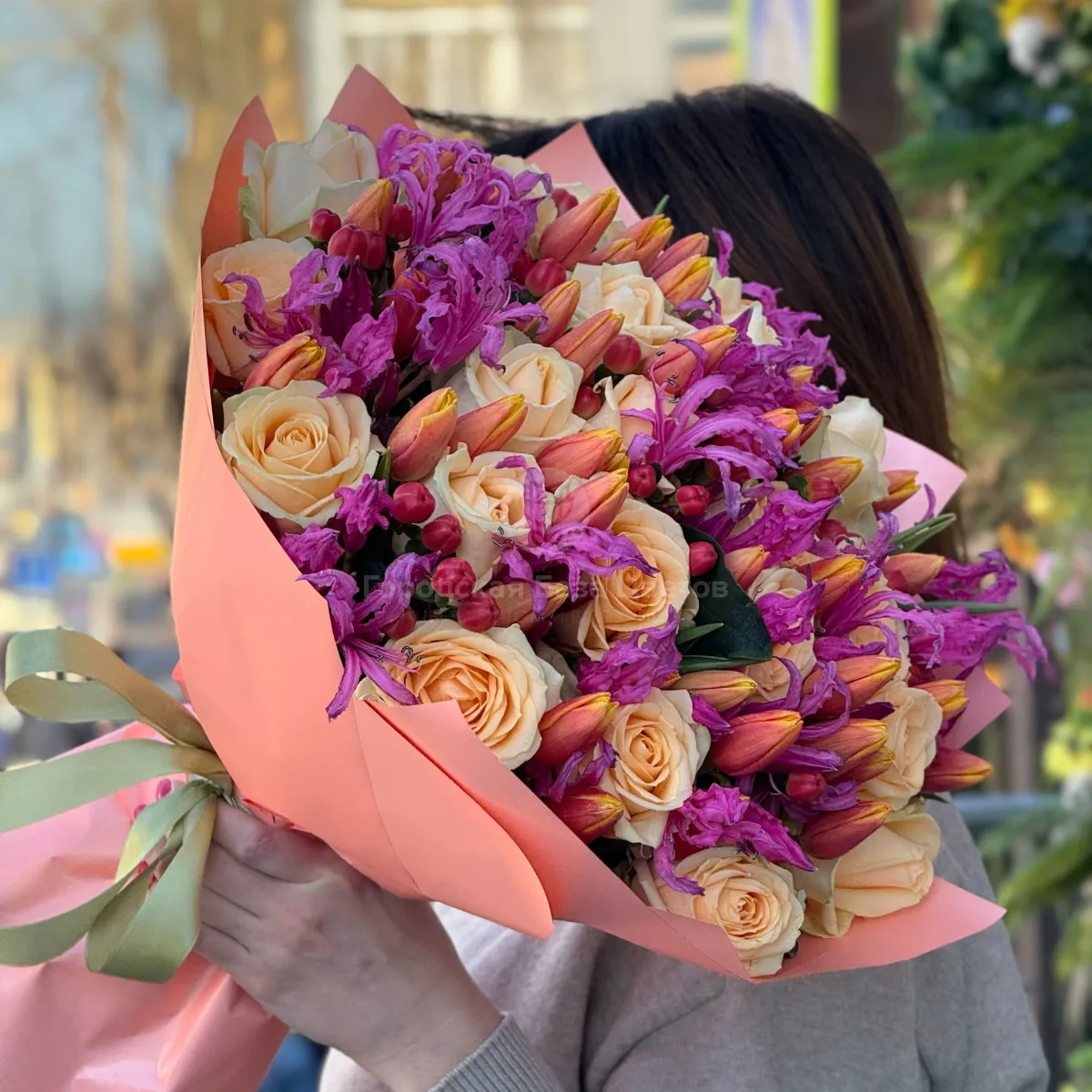 Наша компания заботится о ваших эмоциях и оставляет за собой право незначительно изменить состав и оттенок букета в пользу самого свежего цветка в нашем холодильнике