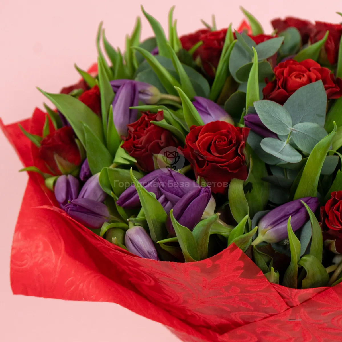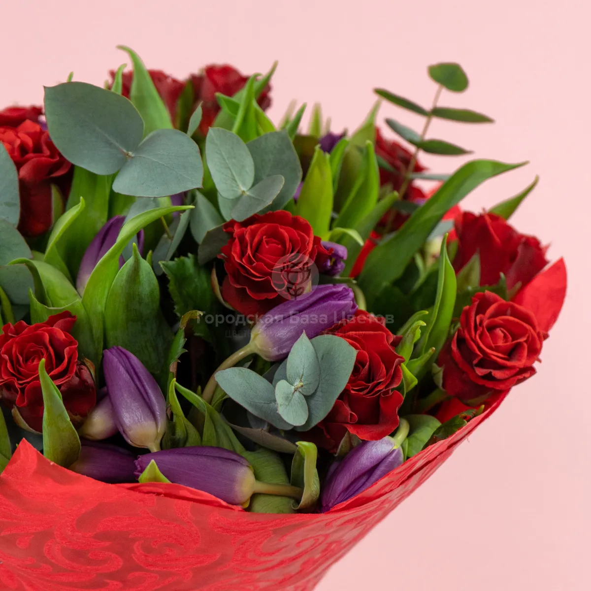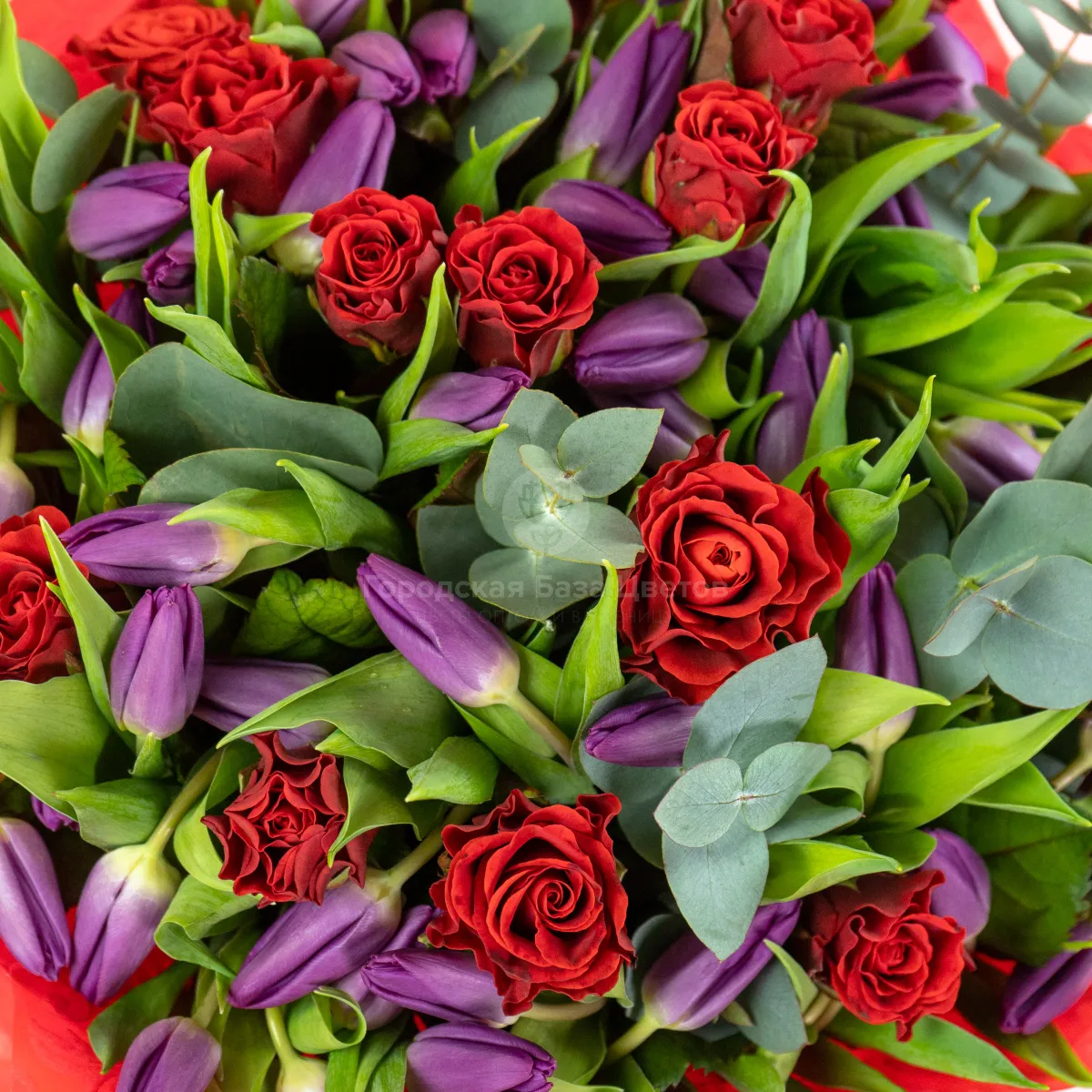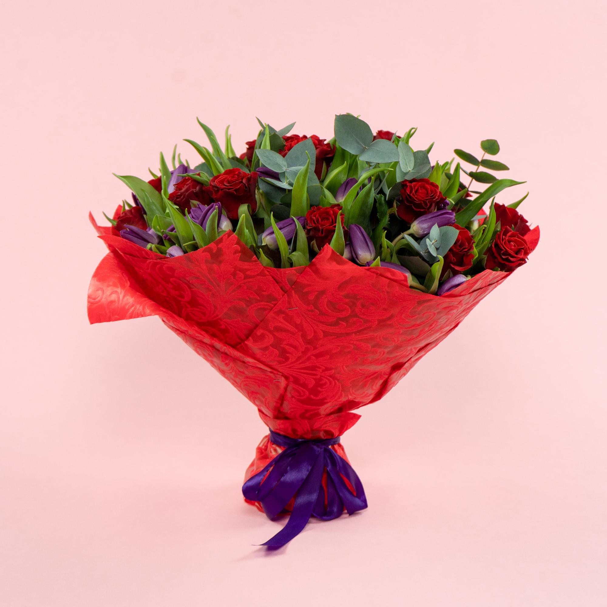 Букет из 20 роз и тюльпанов