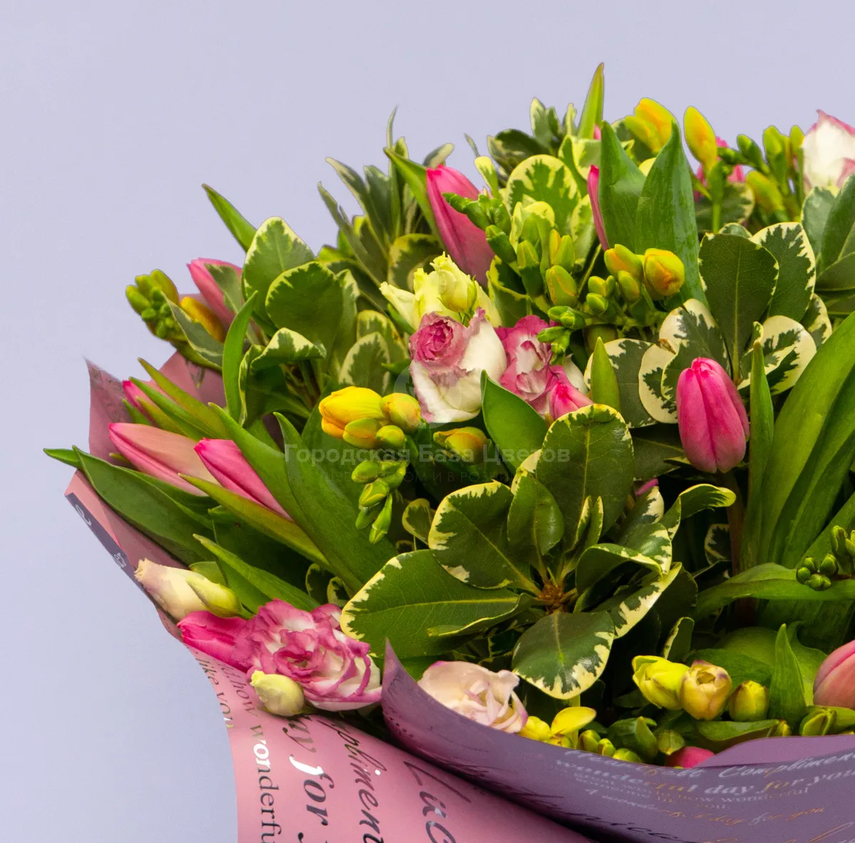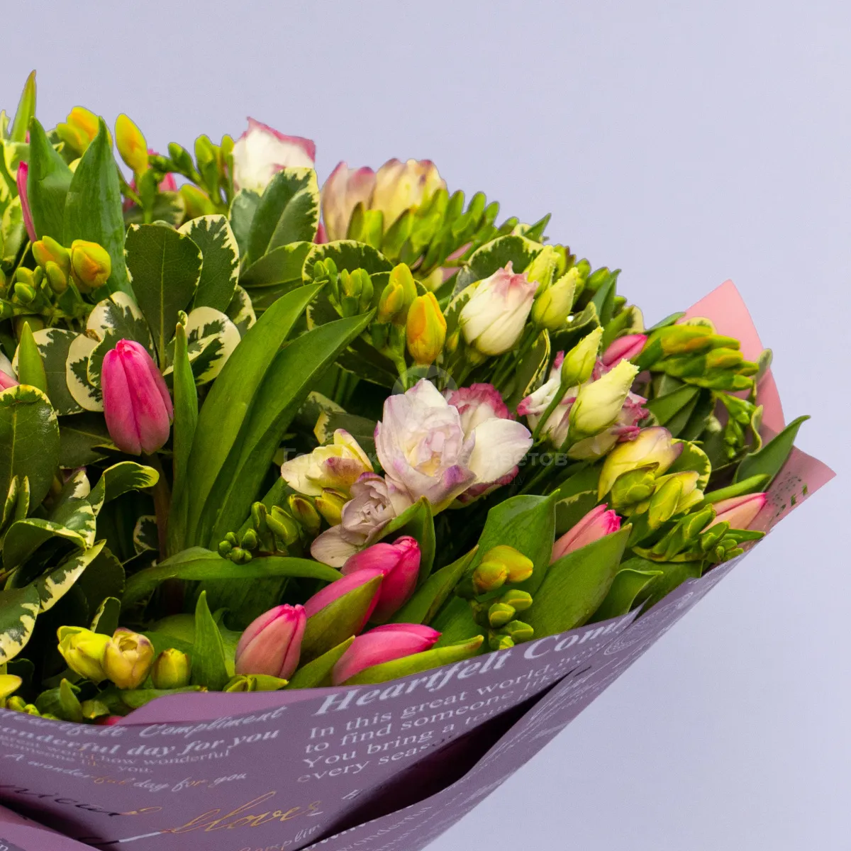 Букет из 25 тюльпанов и фрезий