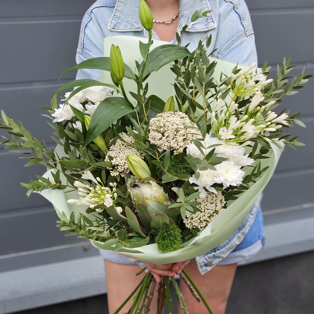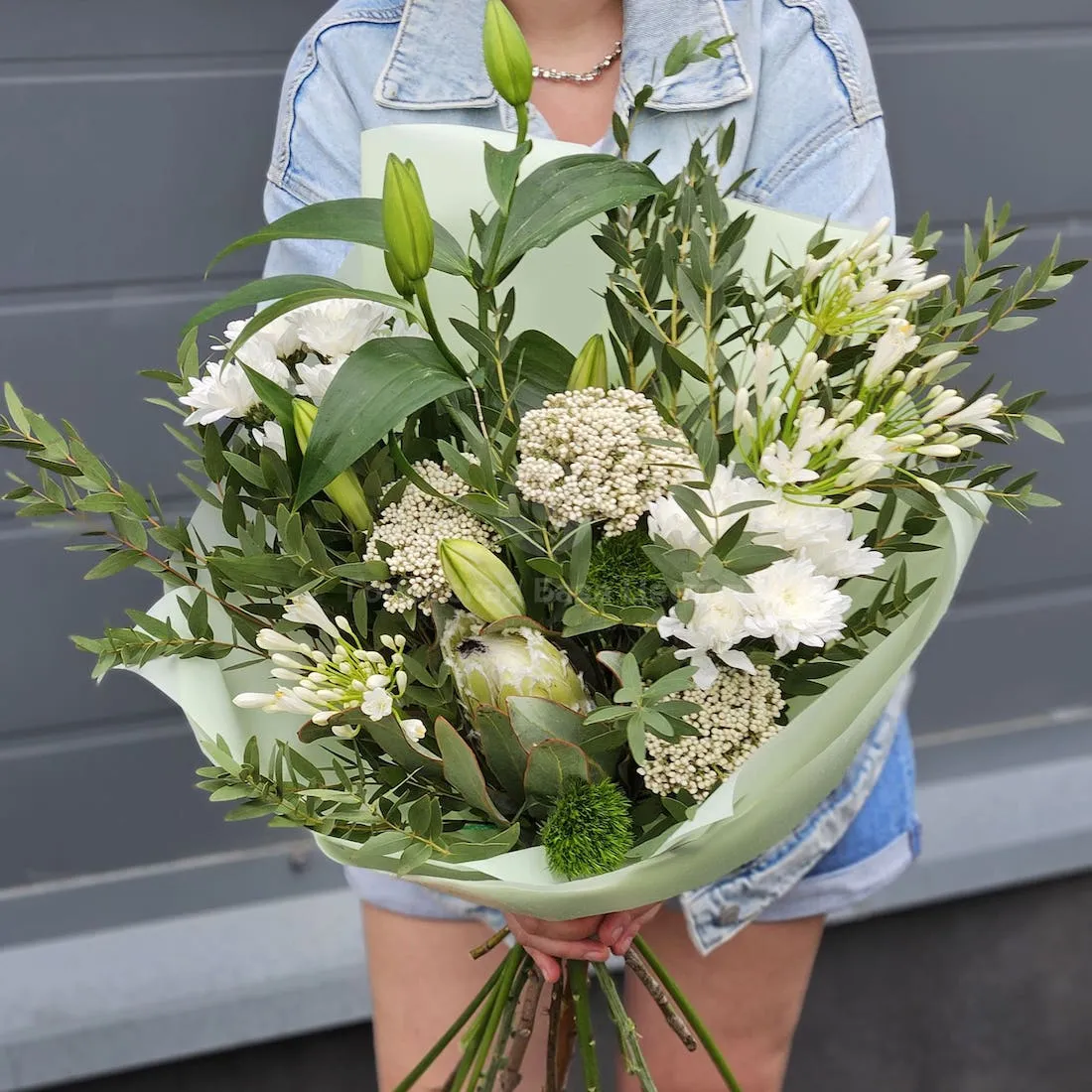 Букет из агапантус, хризантем и озотамнус