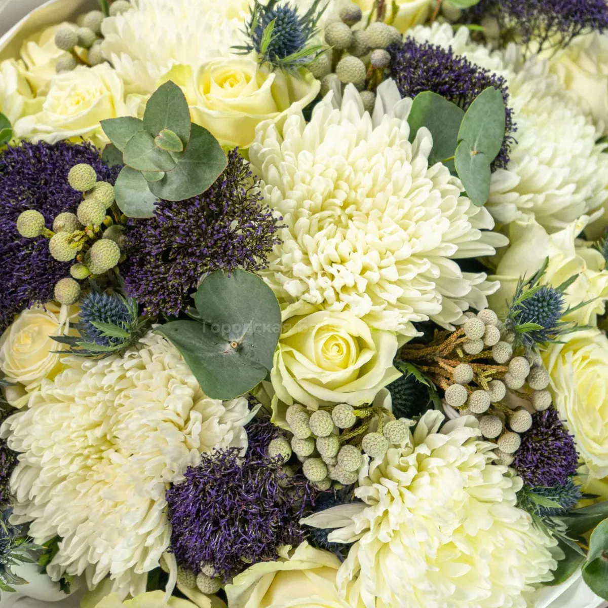 Букет из белых хризантем и роз