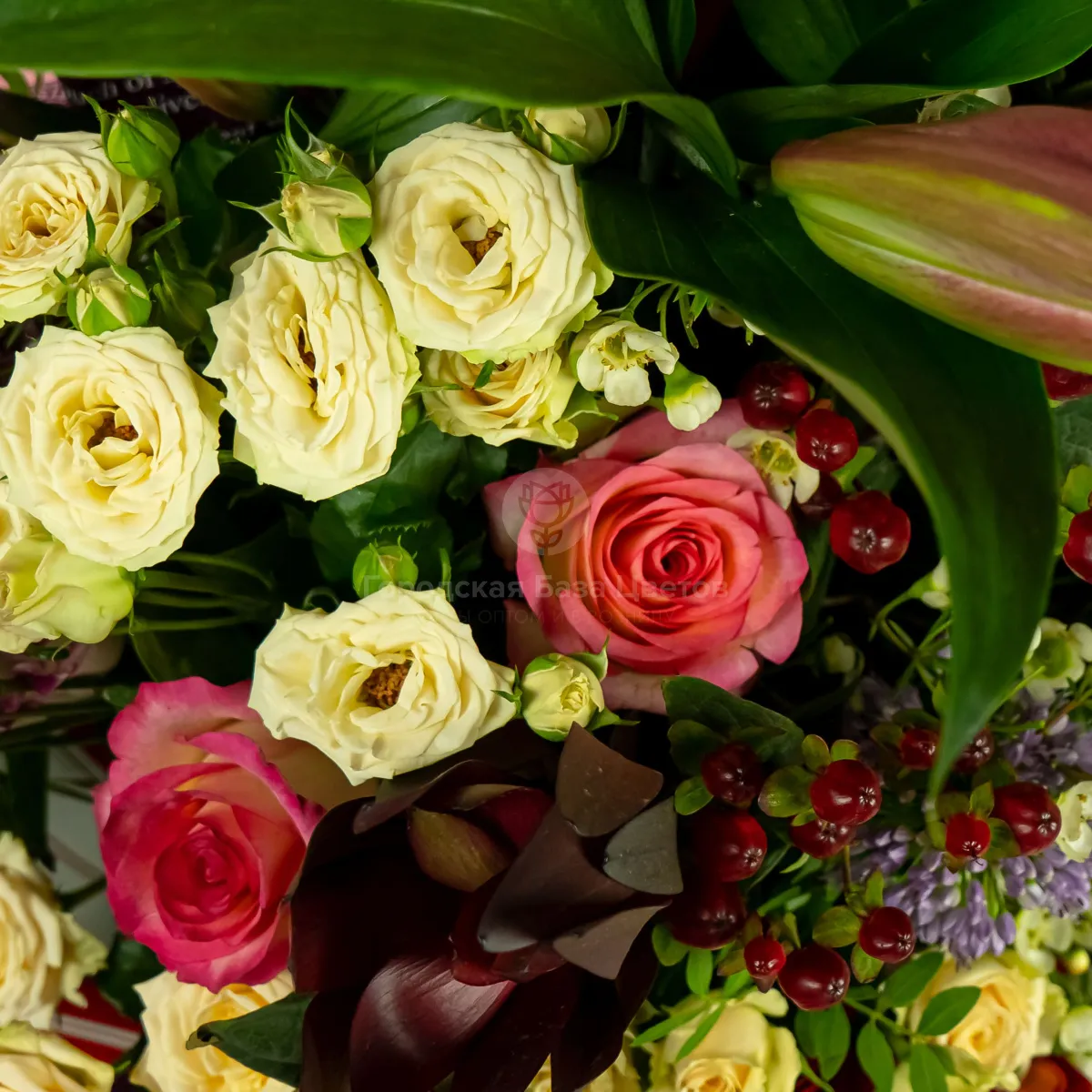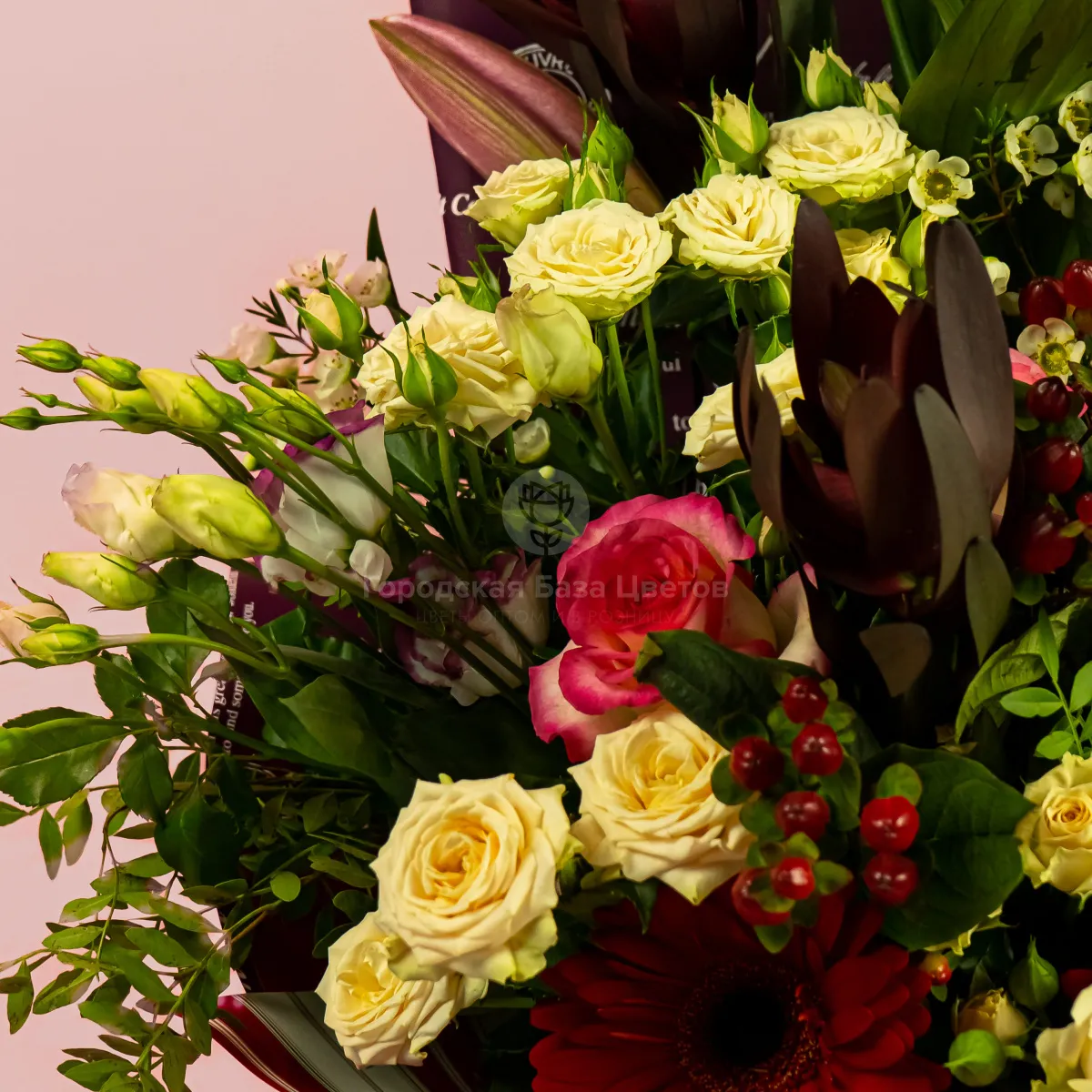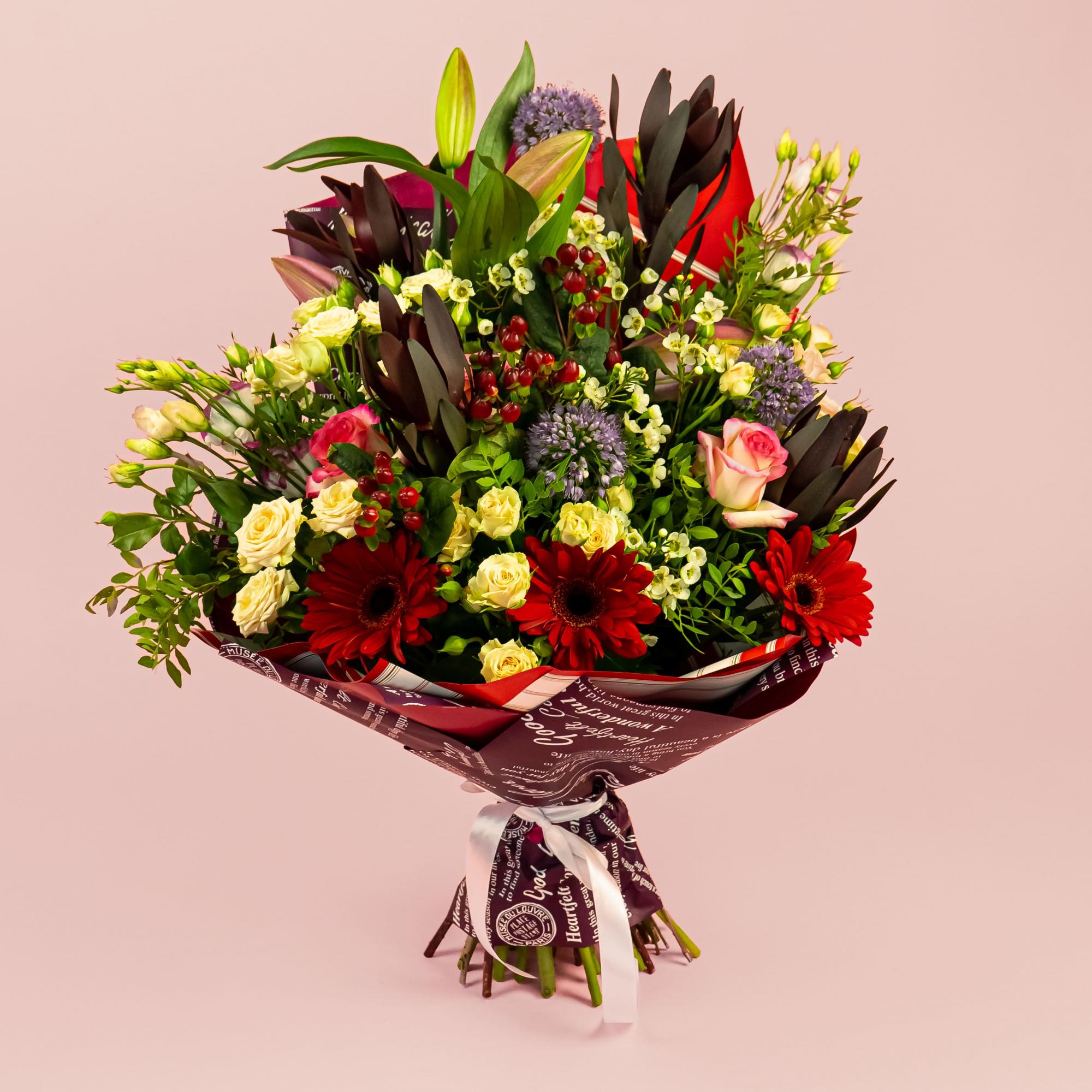 Букет из эустом, гербер и роз микс