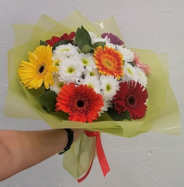 Букет из гербер и хризантем
