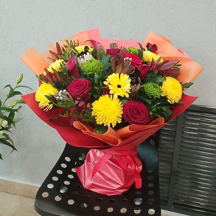 Букет из гербер, хризантем и роз