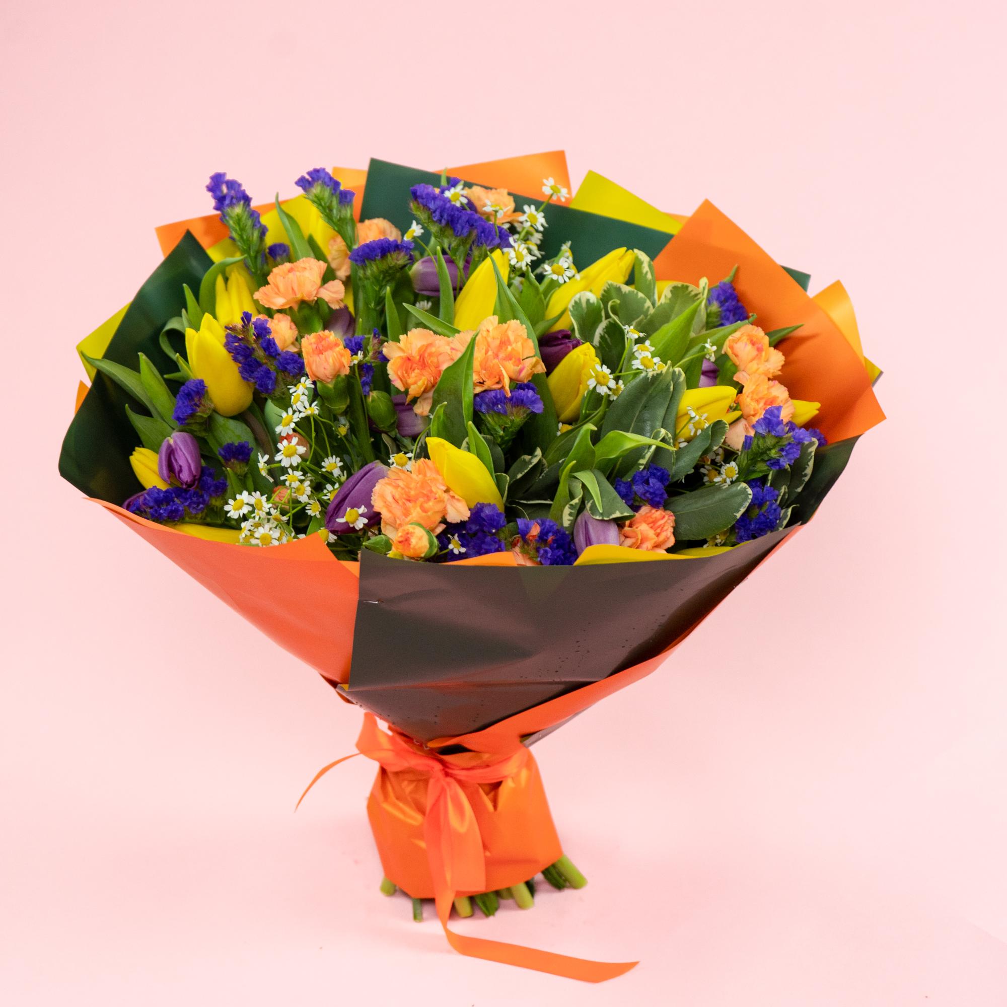 Букет из гвоздик и тюльпанов