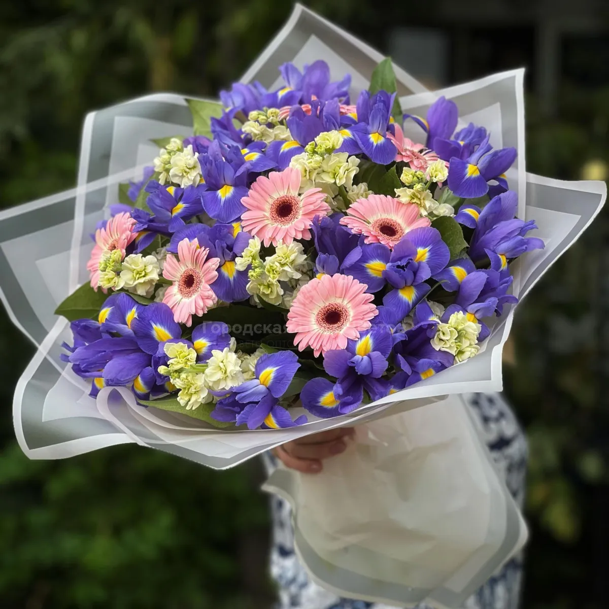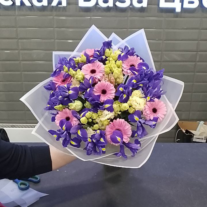 Букет из ирисов, матиолла и гермини
