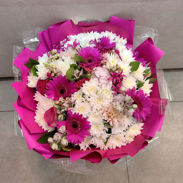 Букет из хризантем, гербер и брасики