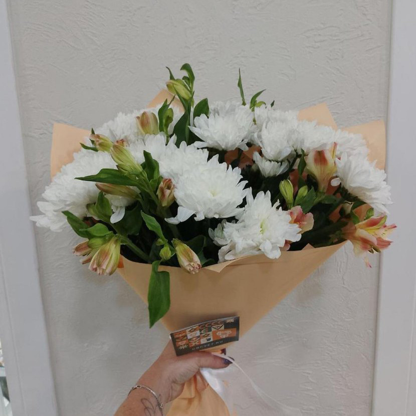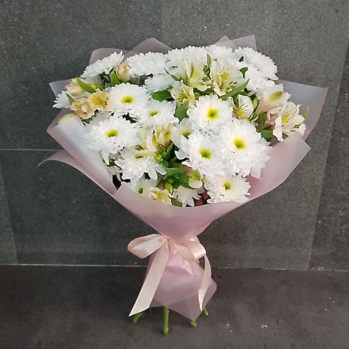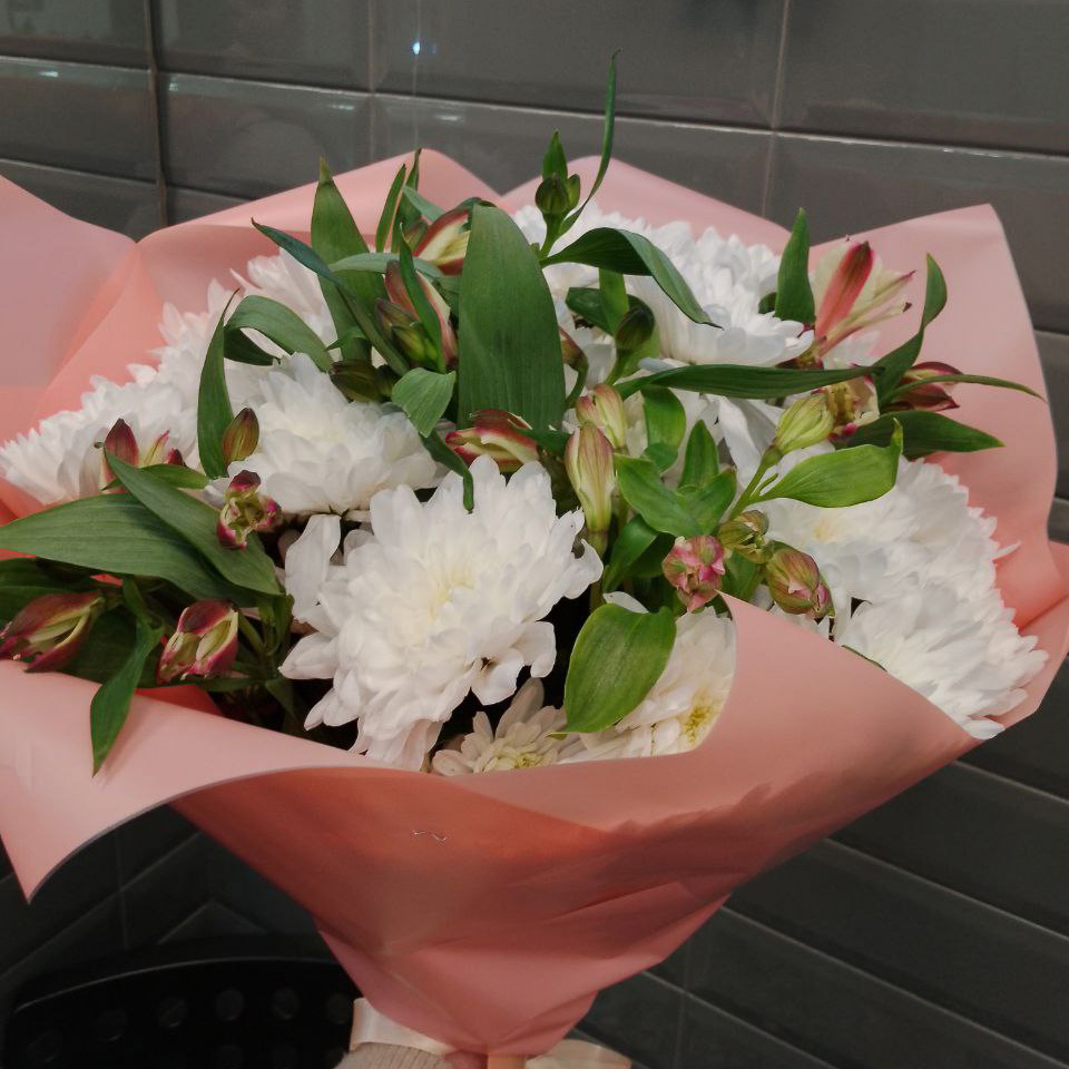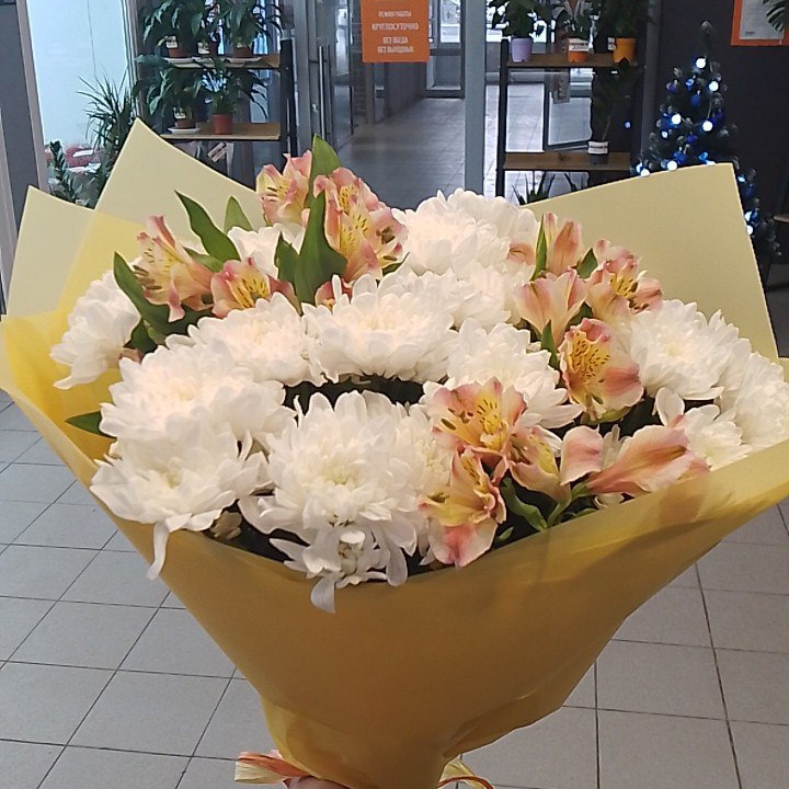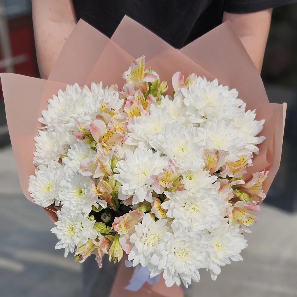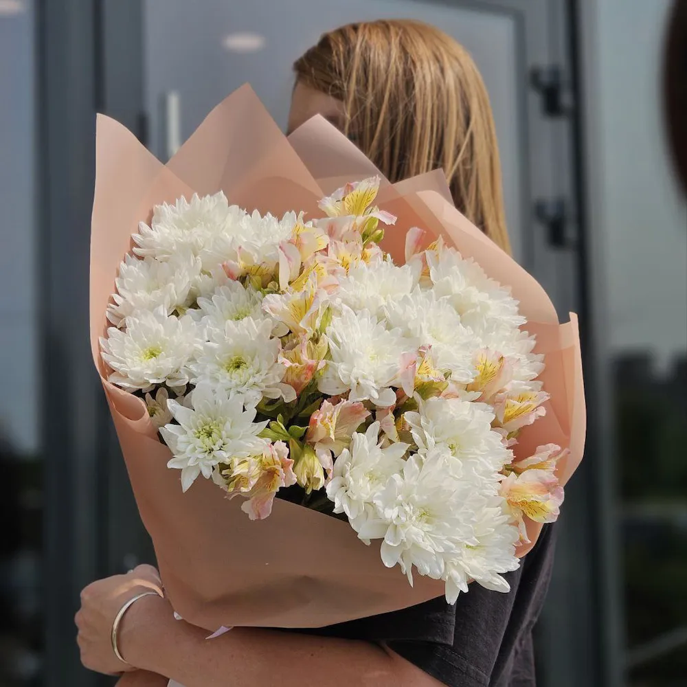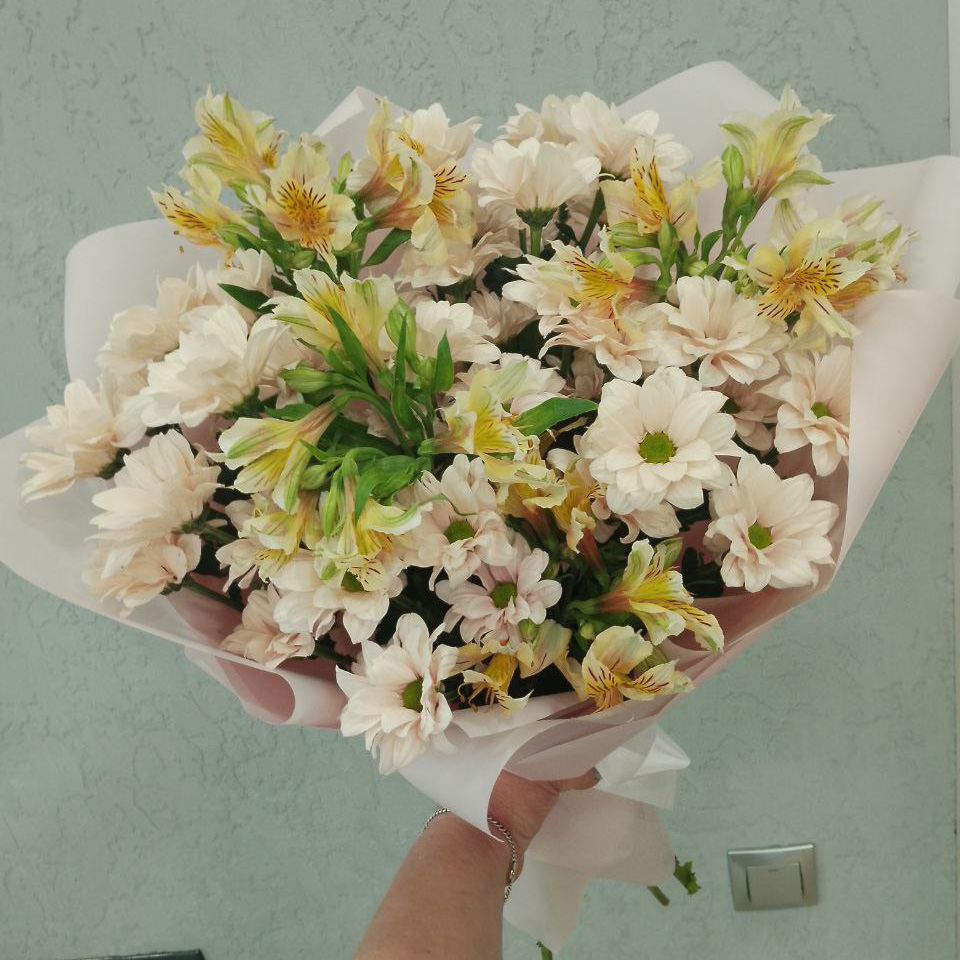 Букет из хризантем и альстромерий