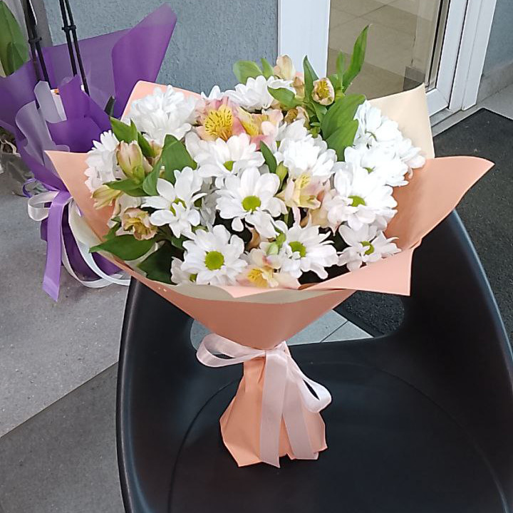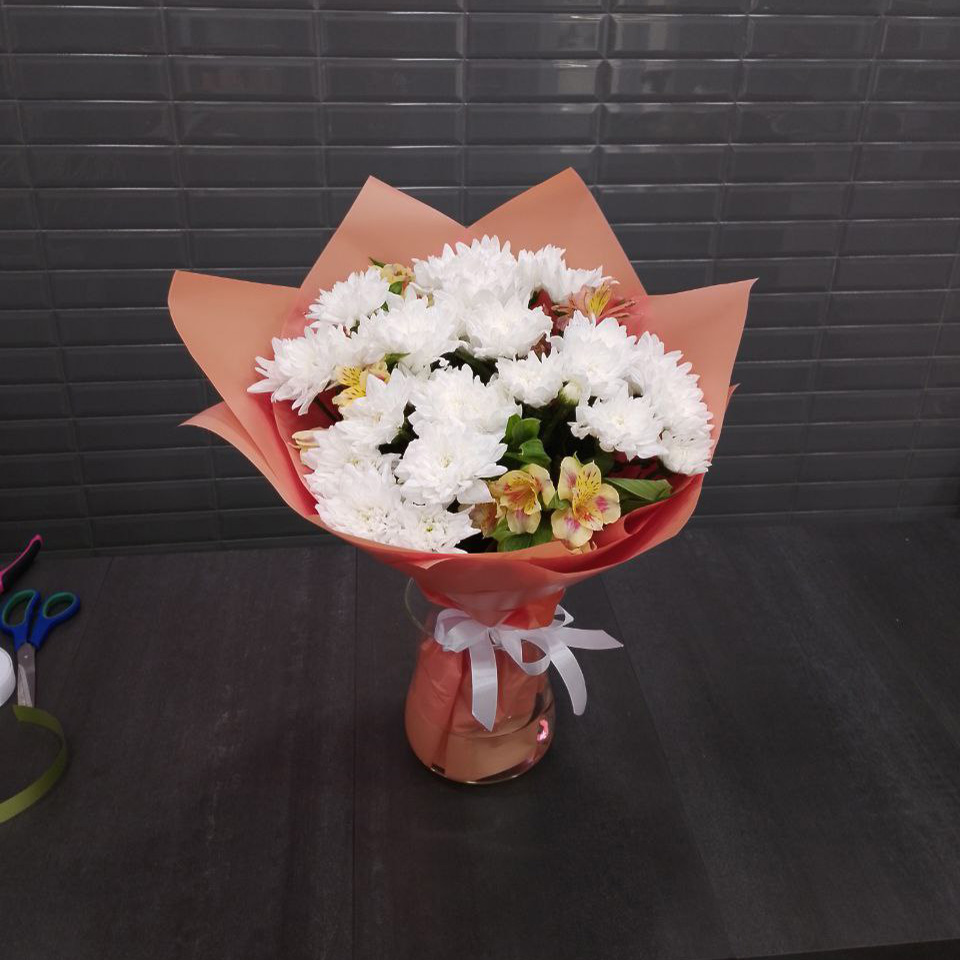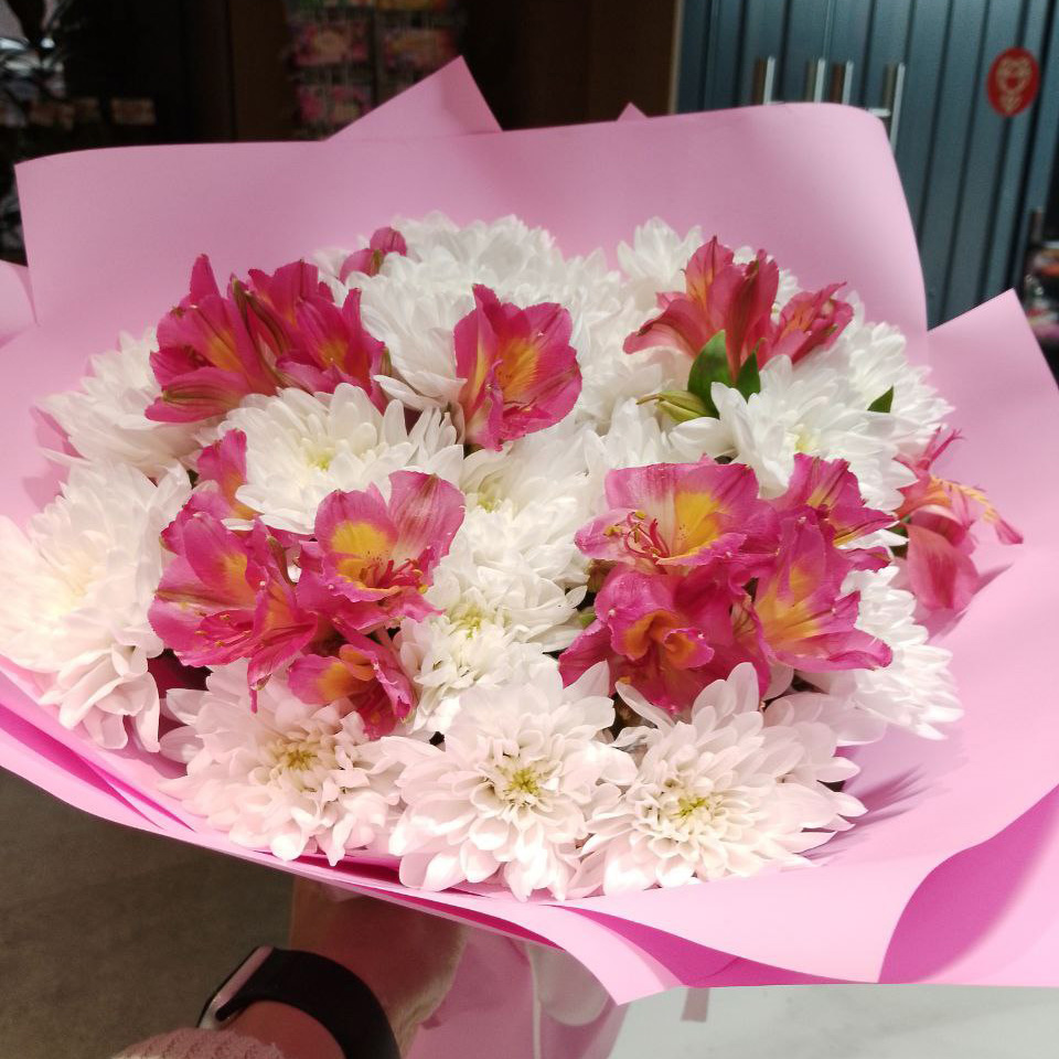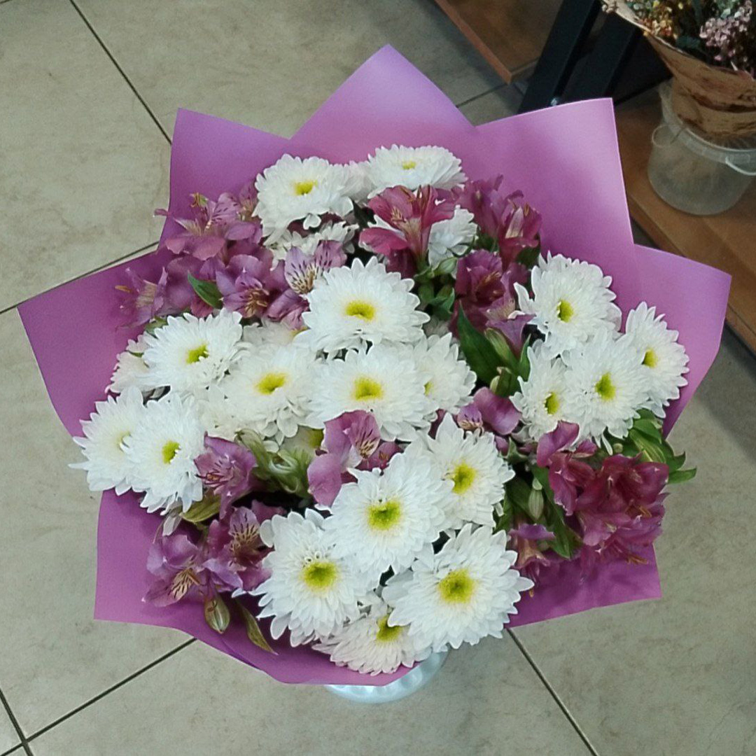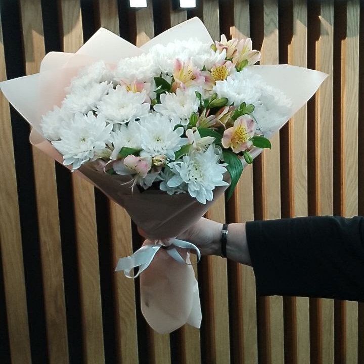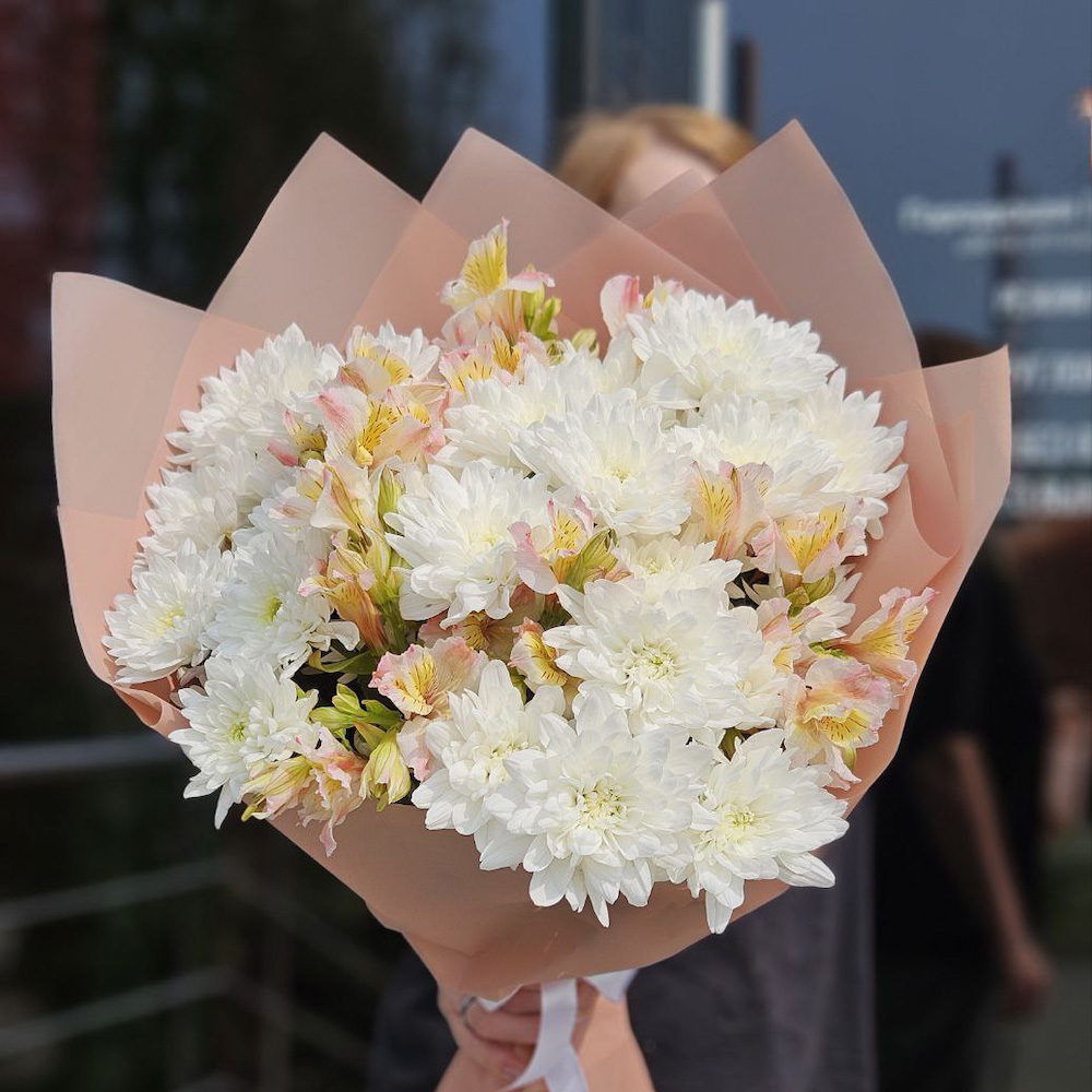 Букет из хризантем и альстромерий