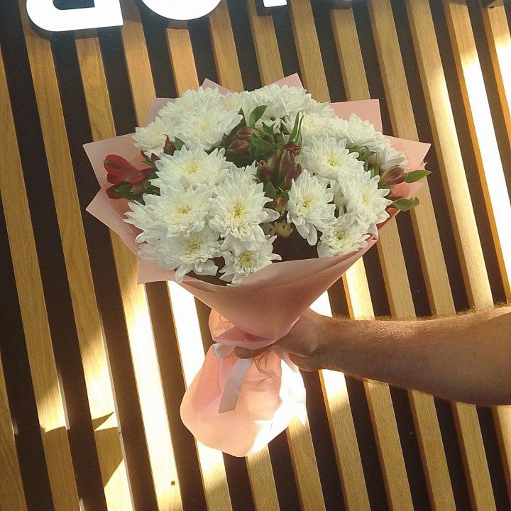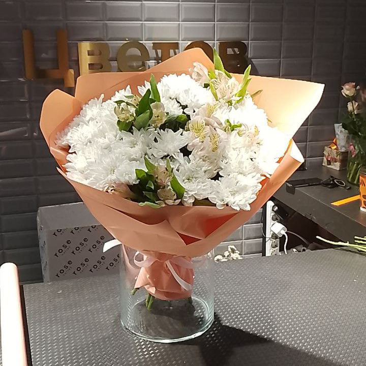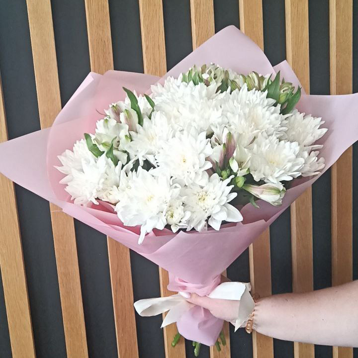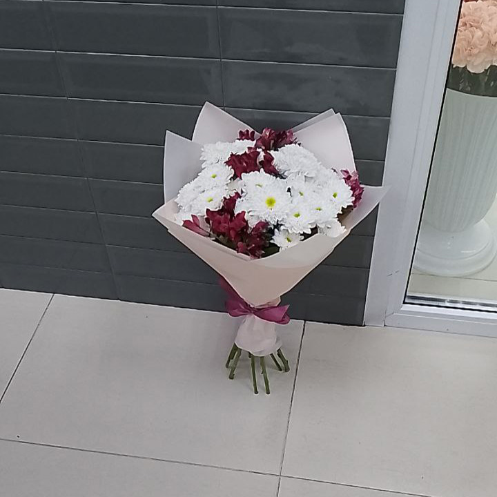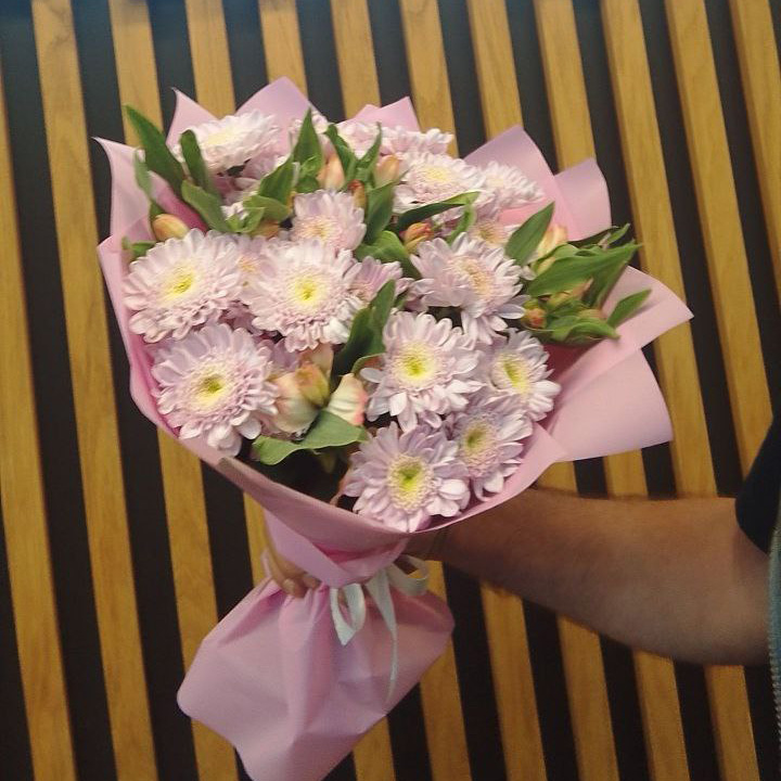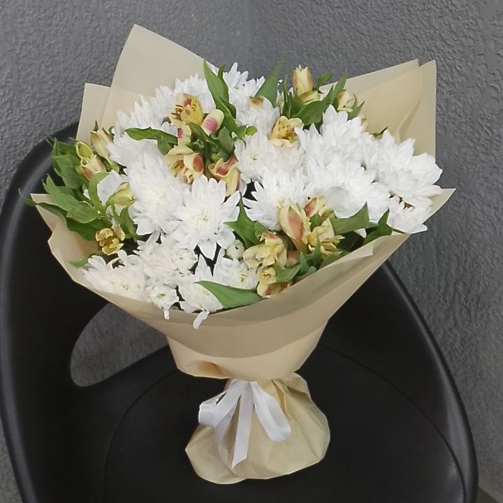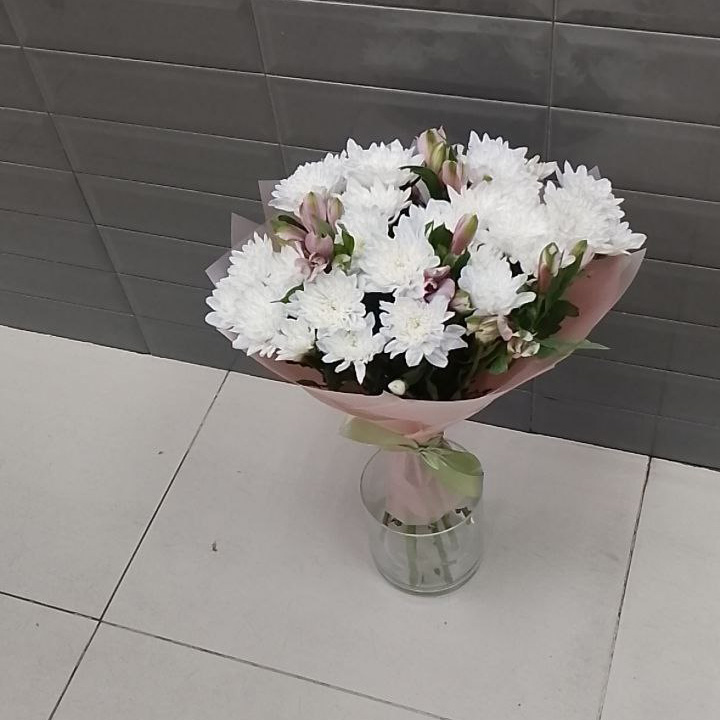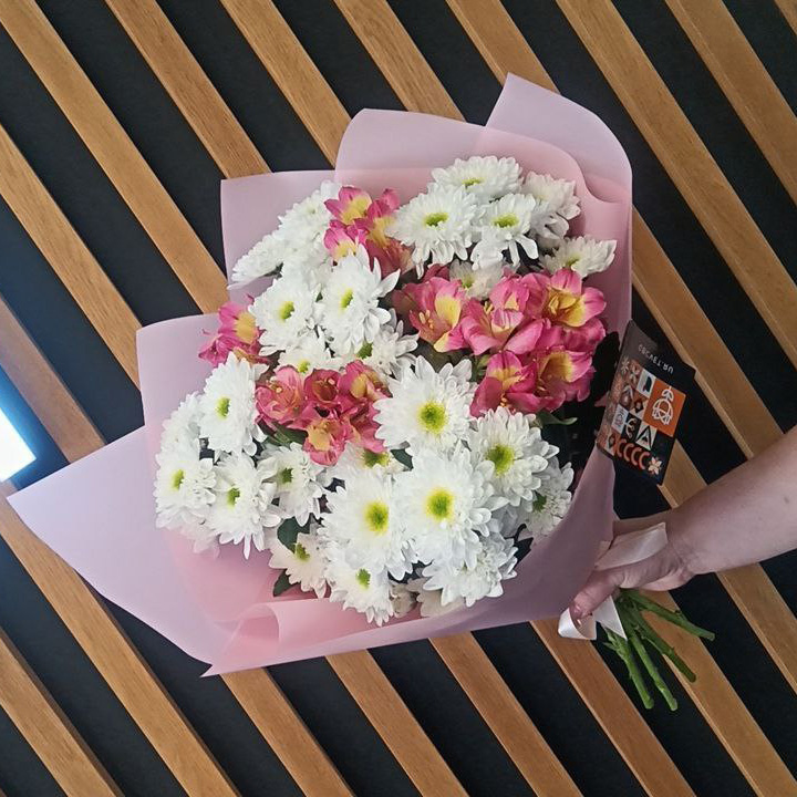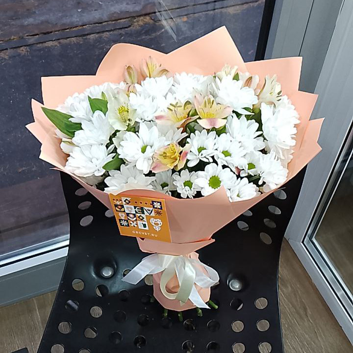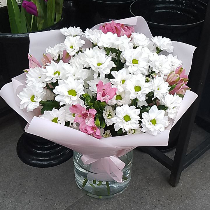Букет из хризантем и альстромерий