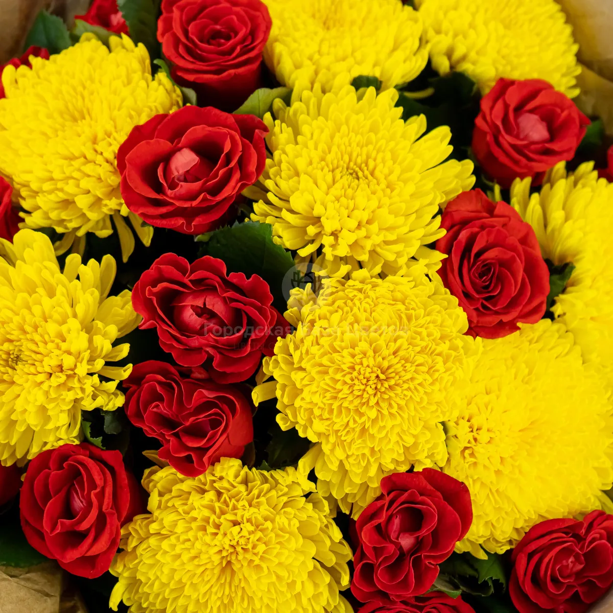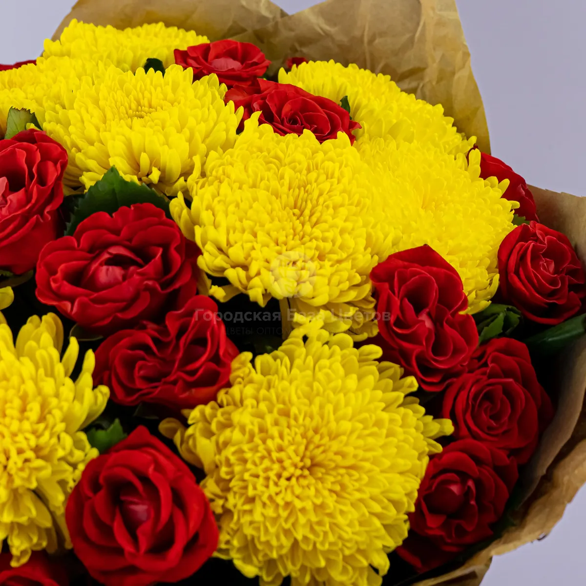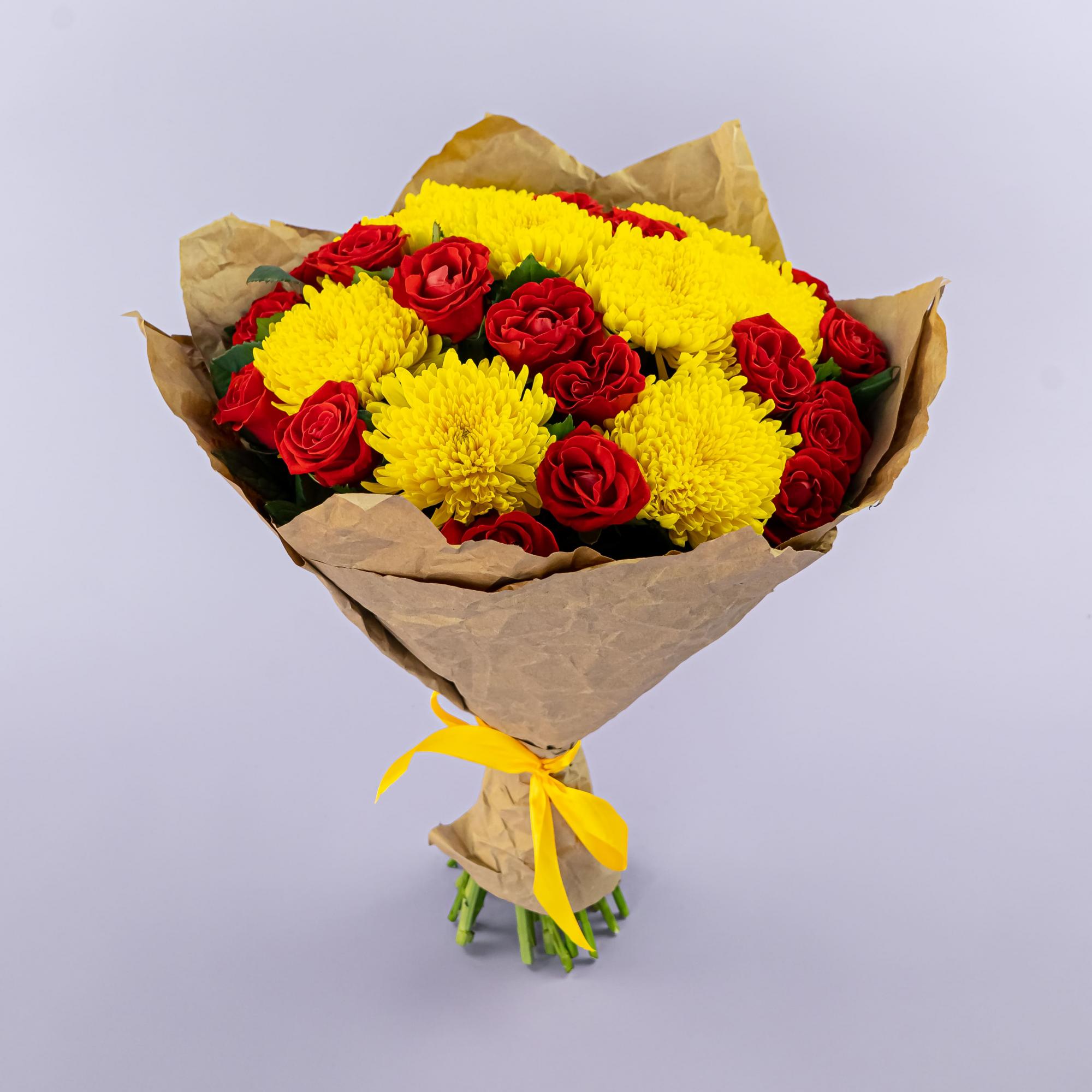 Букет из хризантем и красных роз