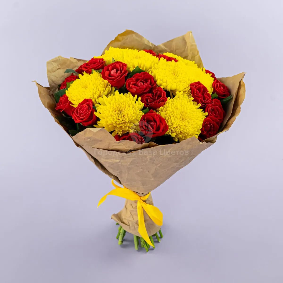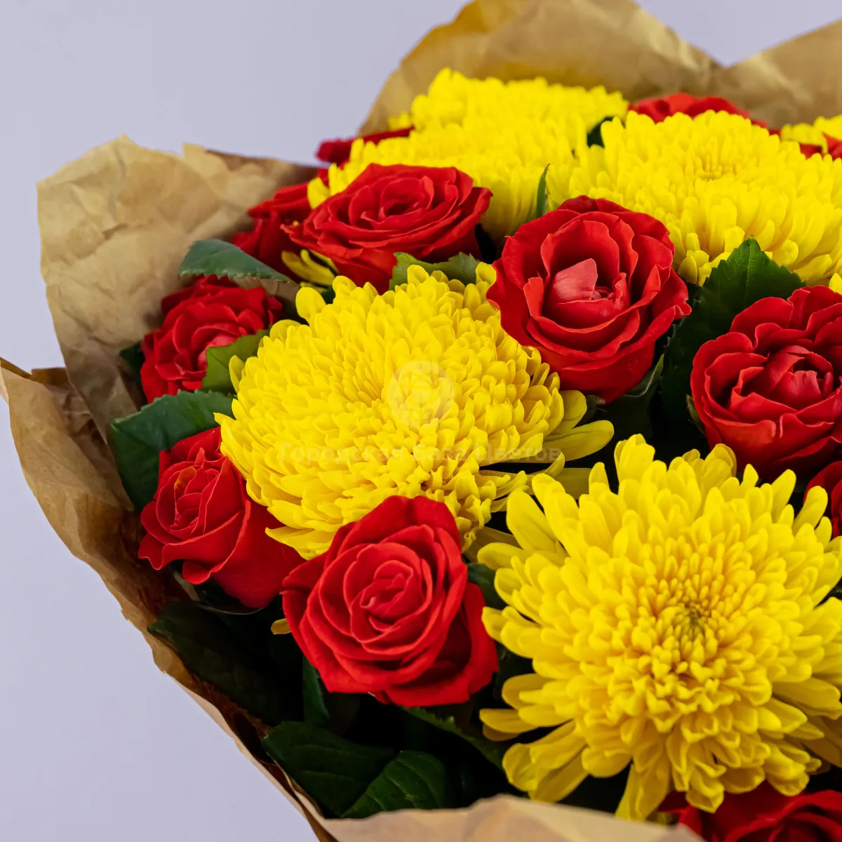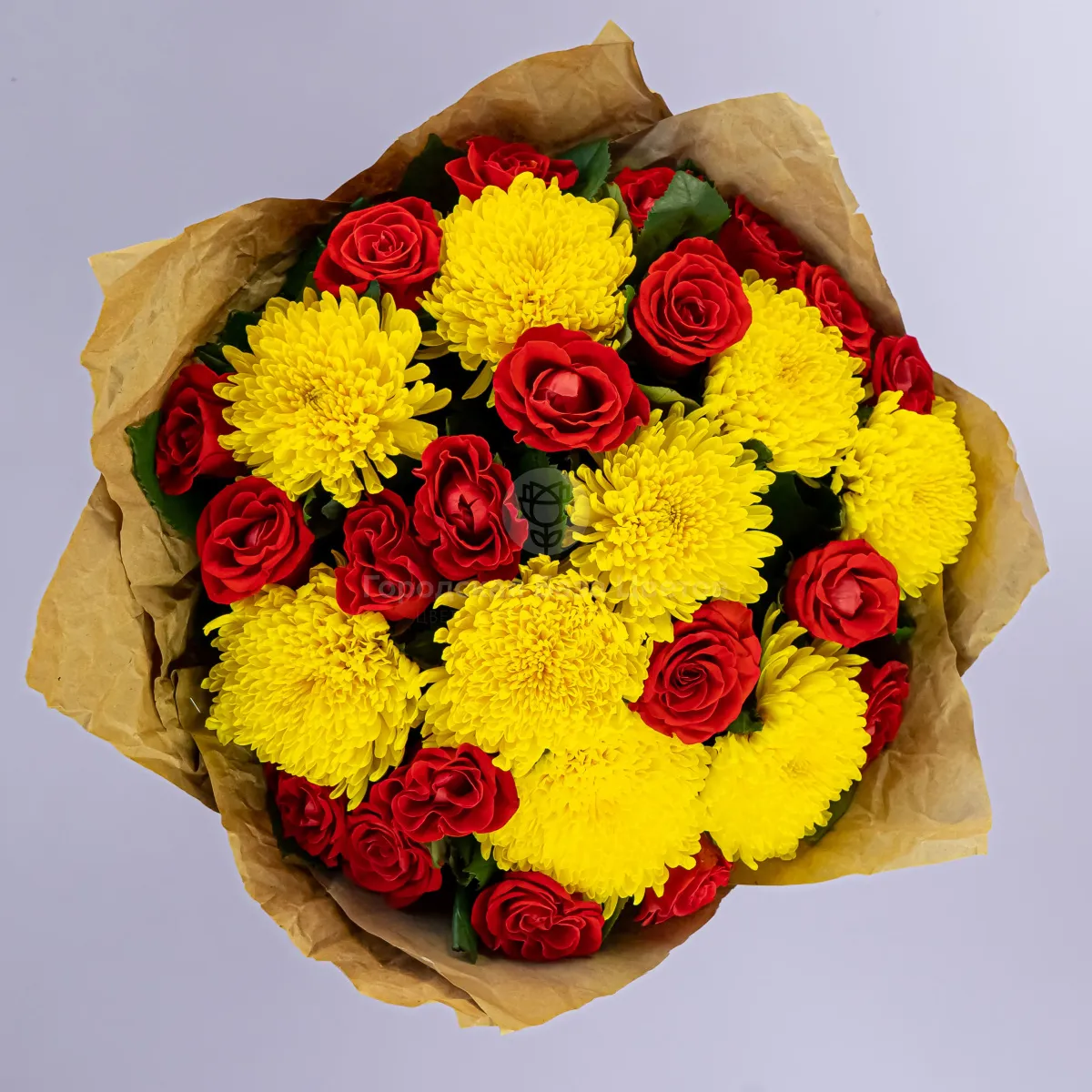 Букет из хризантем и красных роз