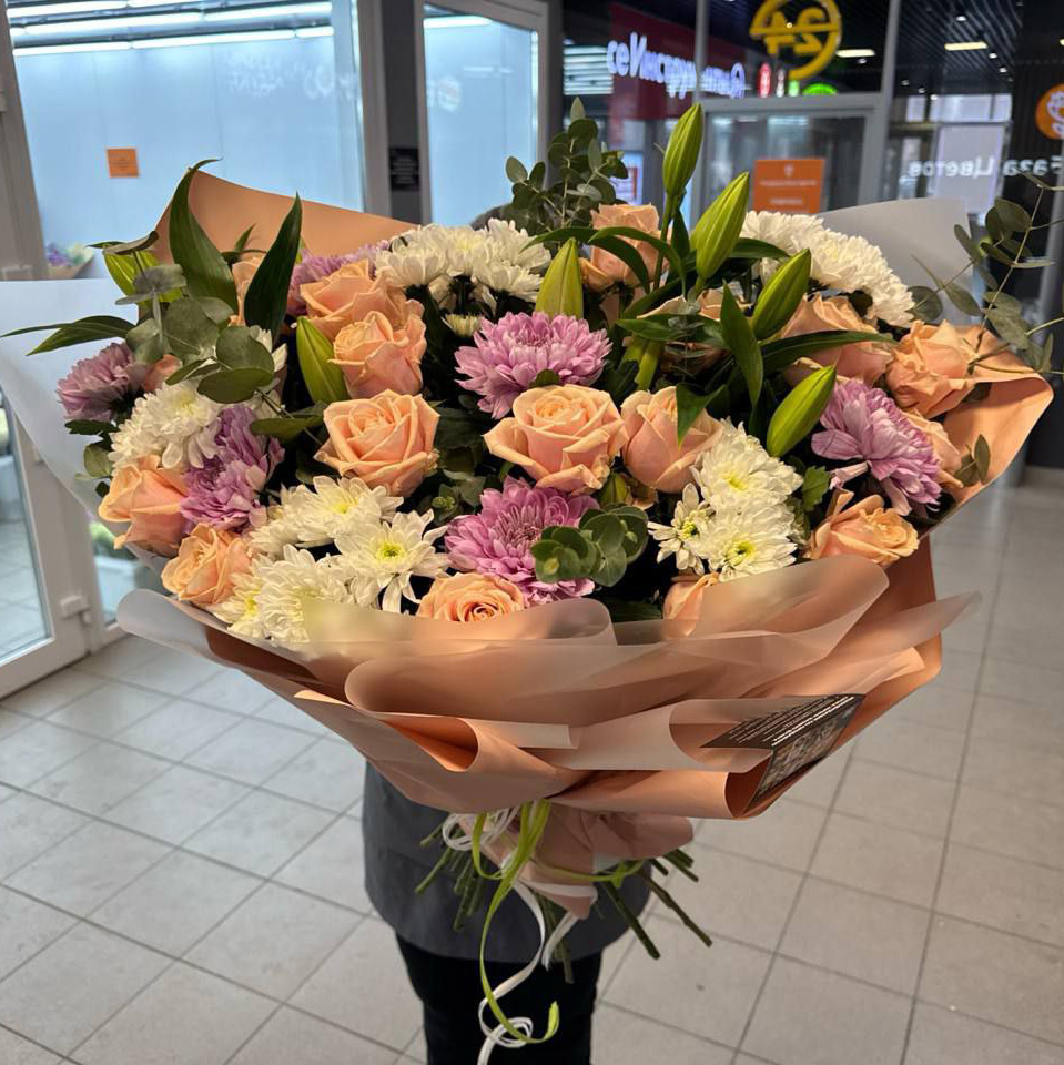 Букет из хризантем и роз