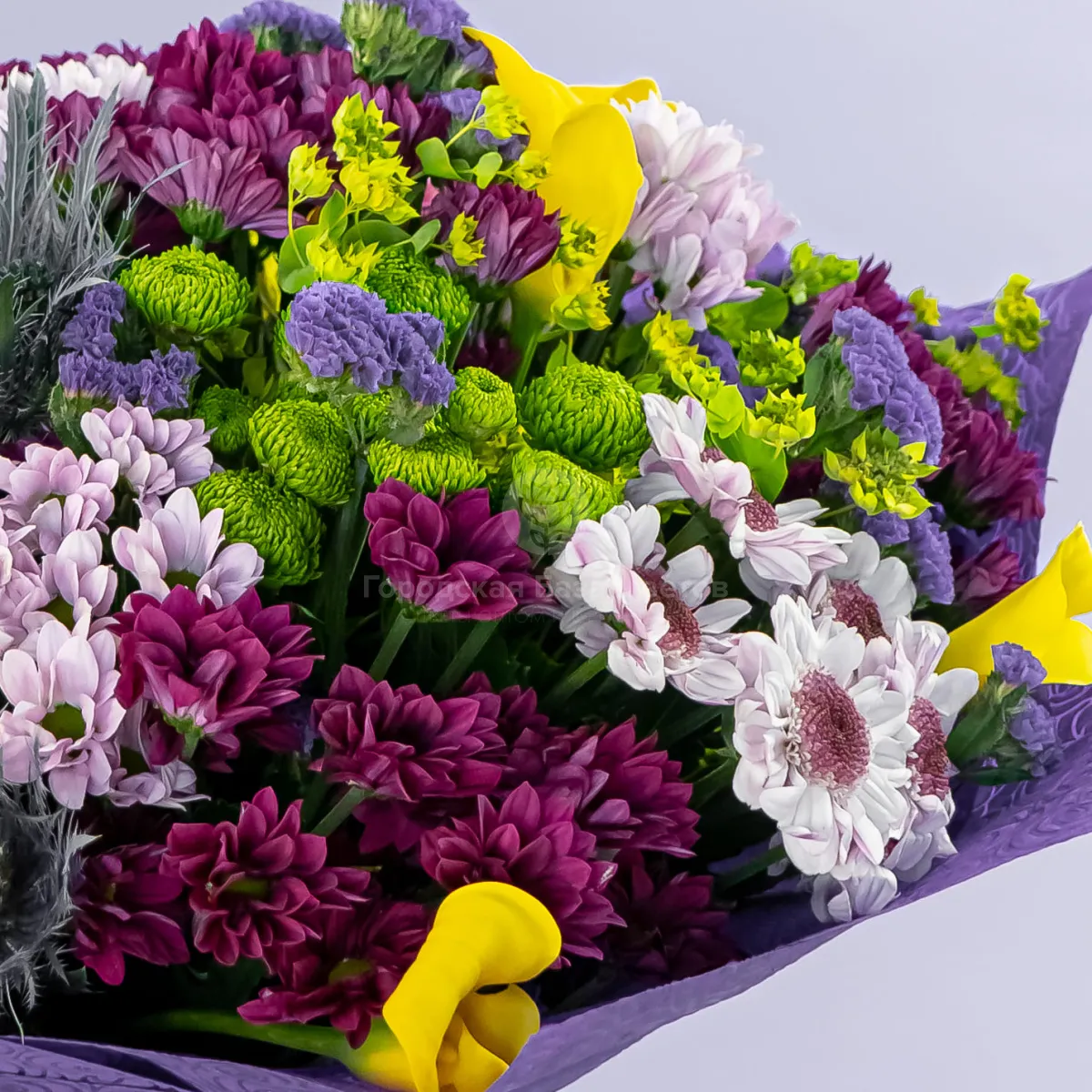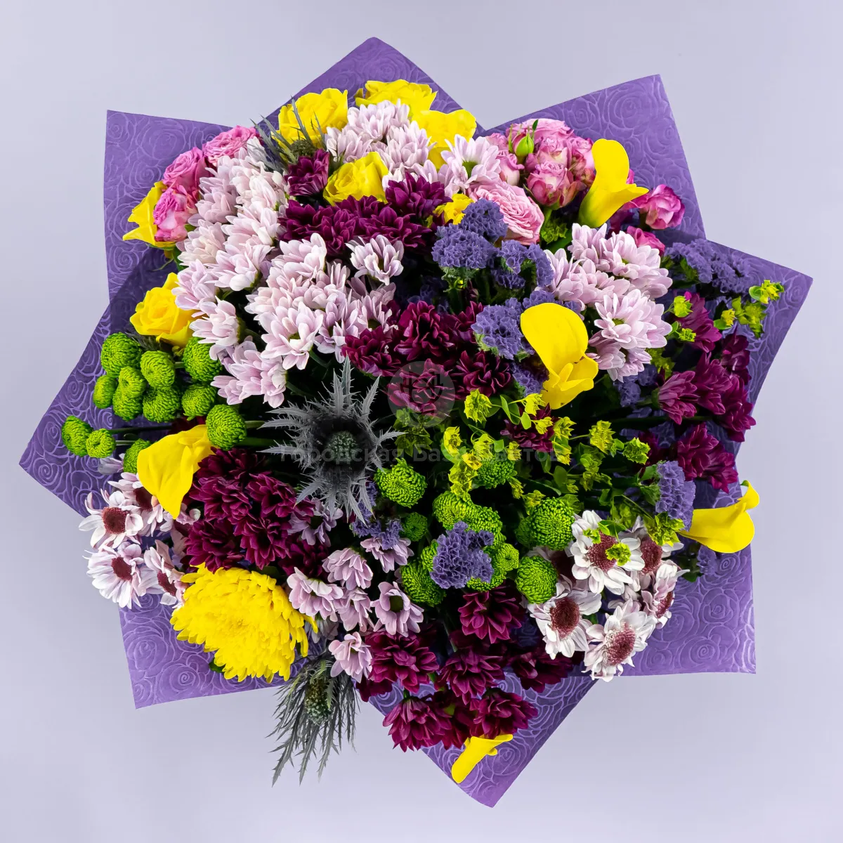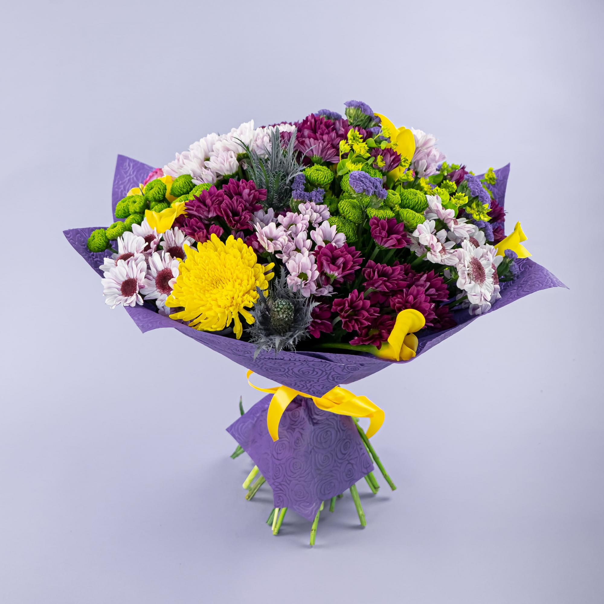 Букет из хризантем микс и роз микс