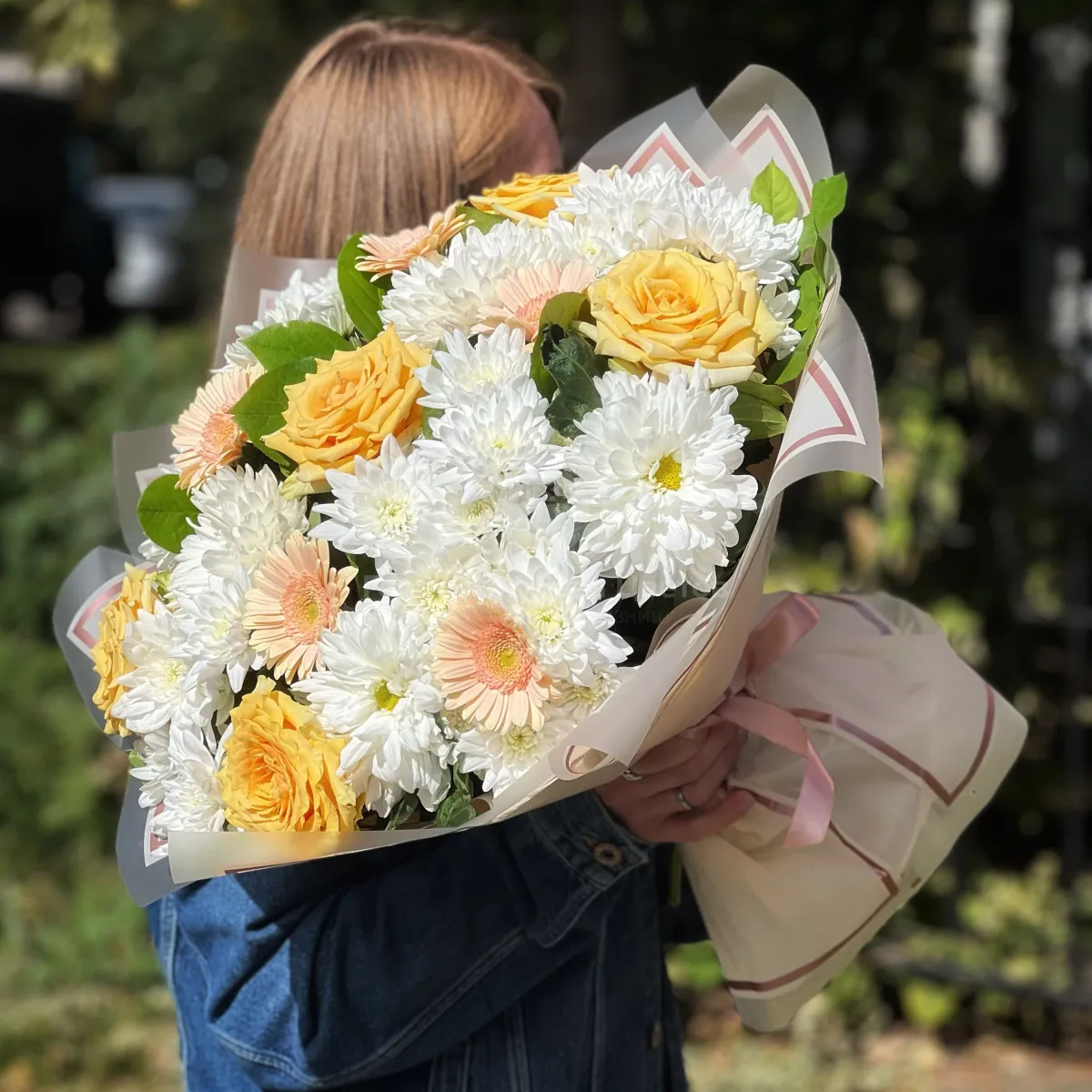 Букет из хризантем, роз и гербер