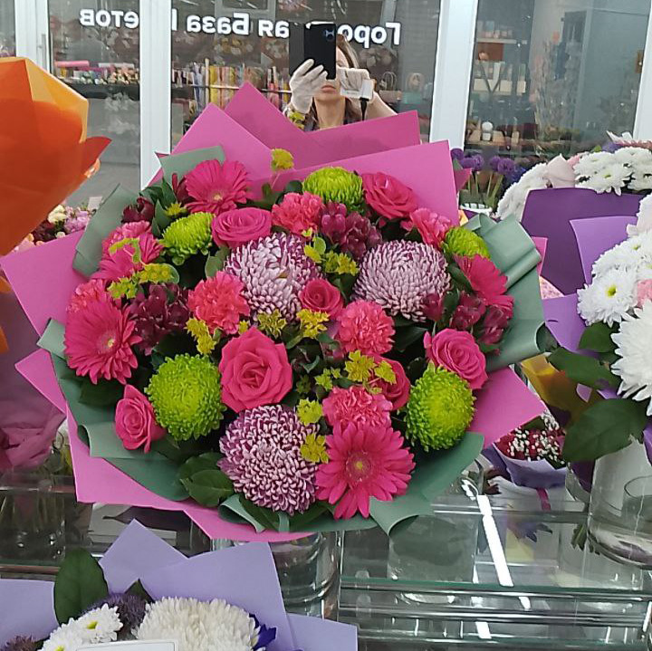 Букет из хризантем, роз и гербер