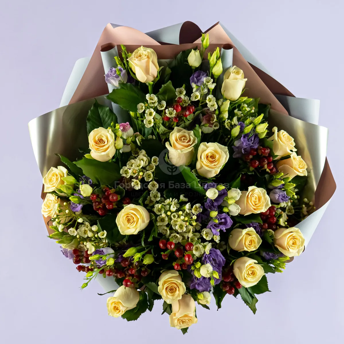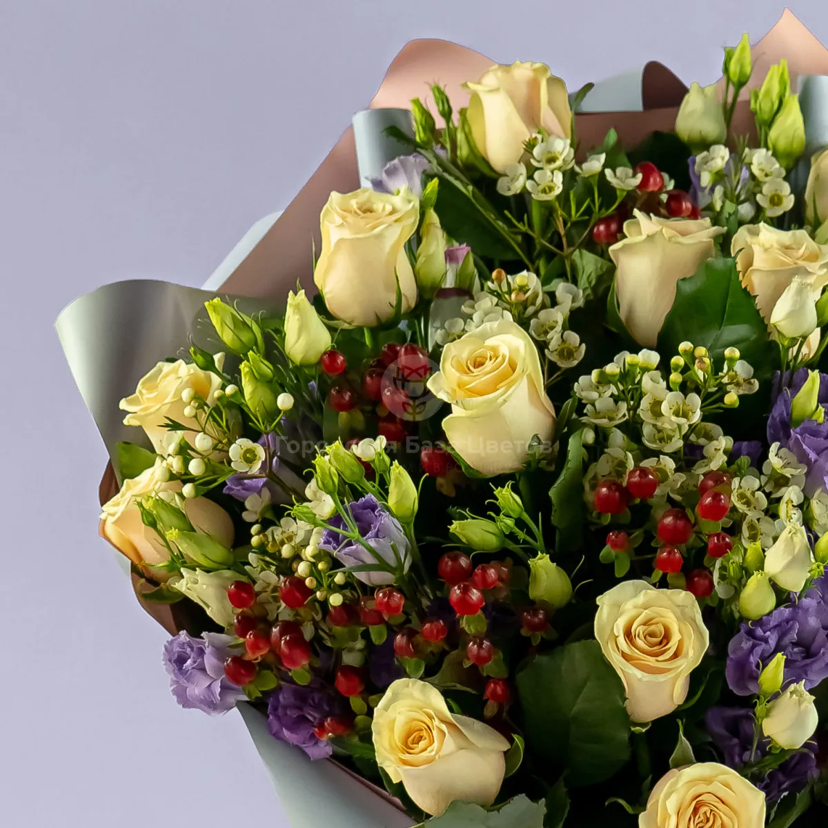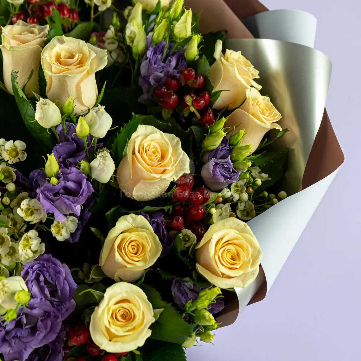 Букет из кремовых роз и эустом