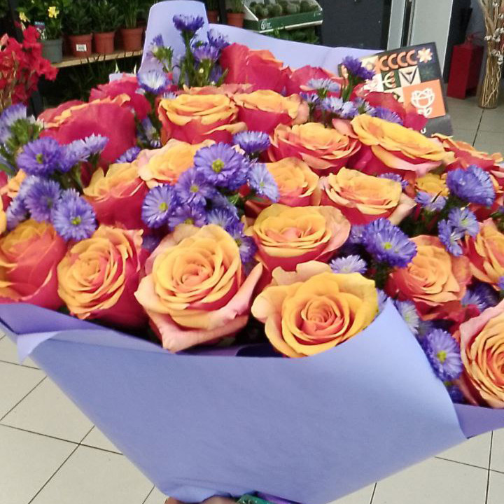 Букет из роз (70 см) и астер